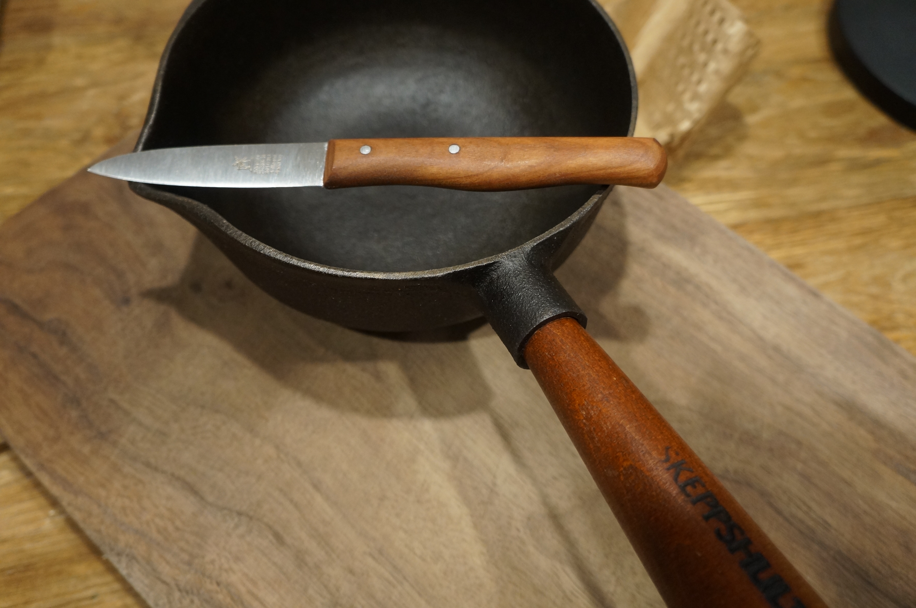 스켑슐트 너도밤나무 핸들과 로버트허더 체리나무 핸들 비교 스켑슐트 소스팬 손잡이가 너도밤나무 인데