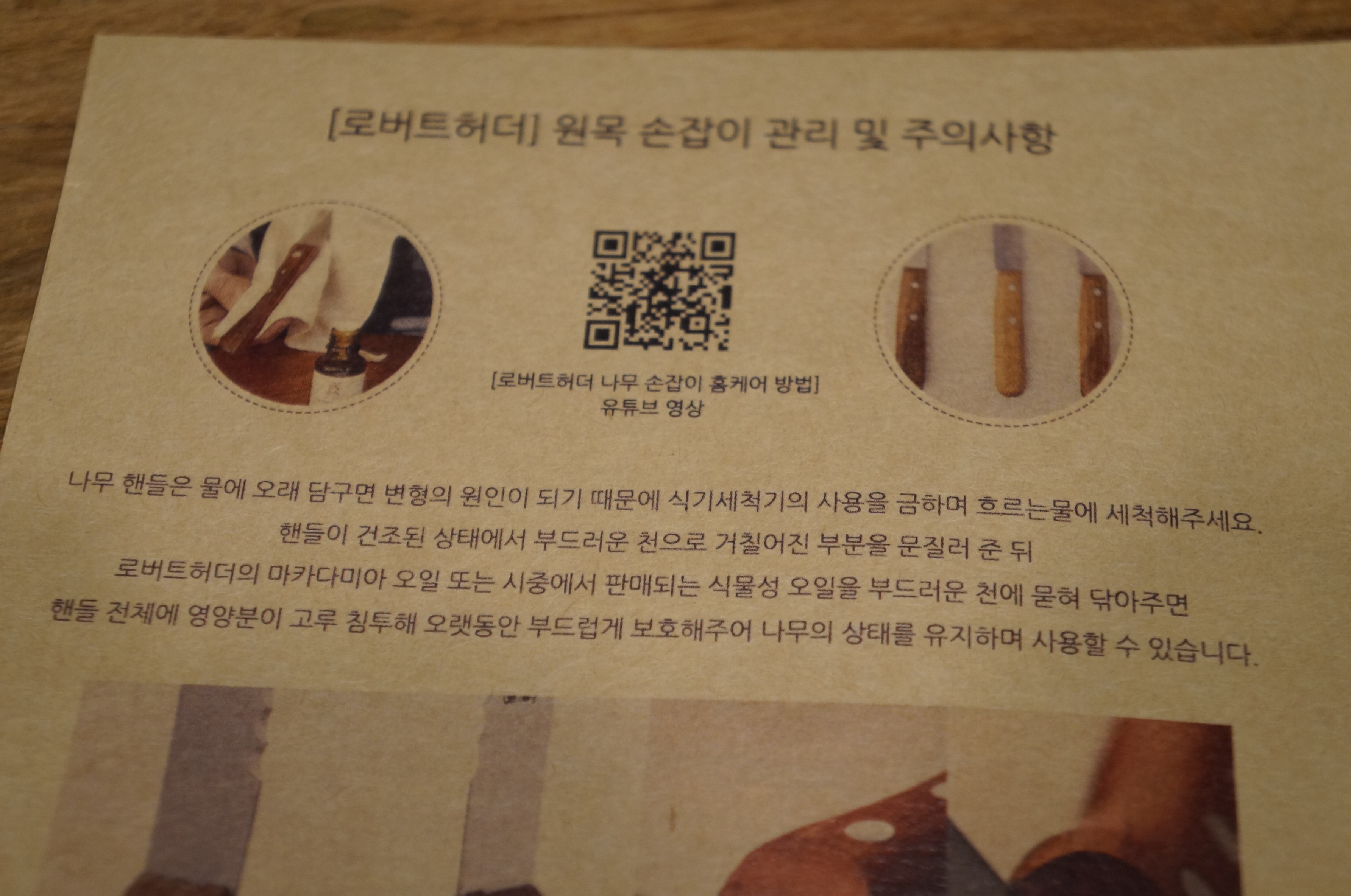 로버트허더 나무손잡이 나무손잡이 관리를 중점적으로 설명해주셨다
