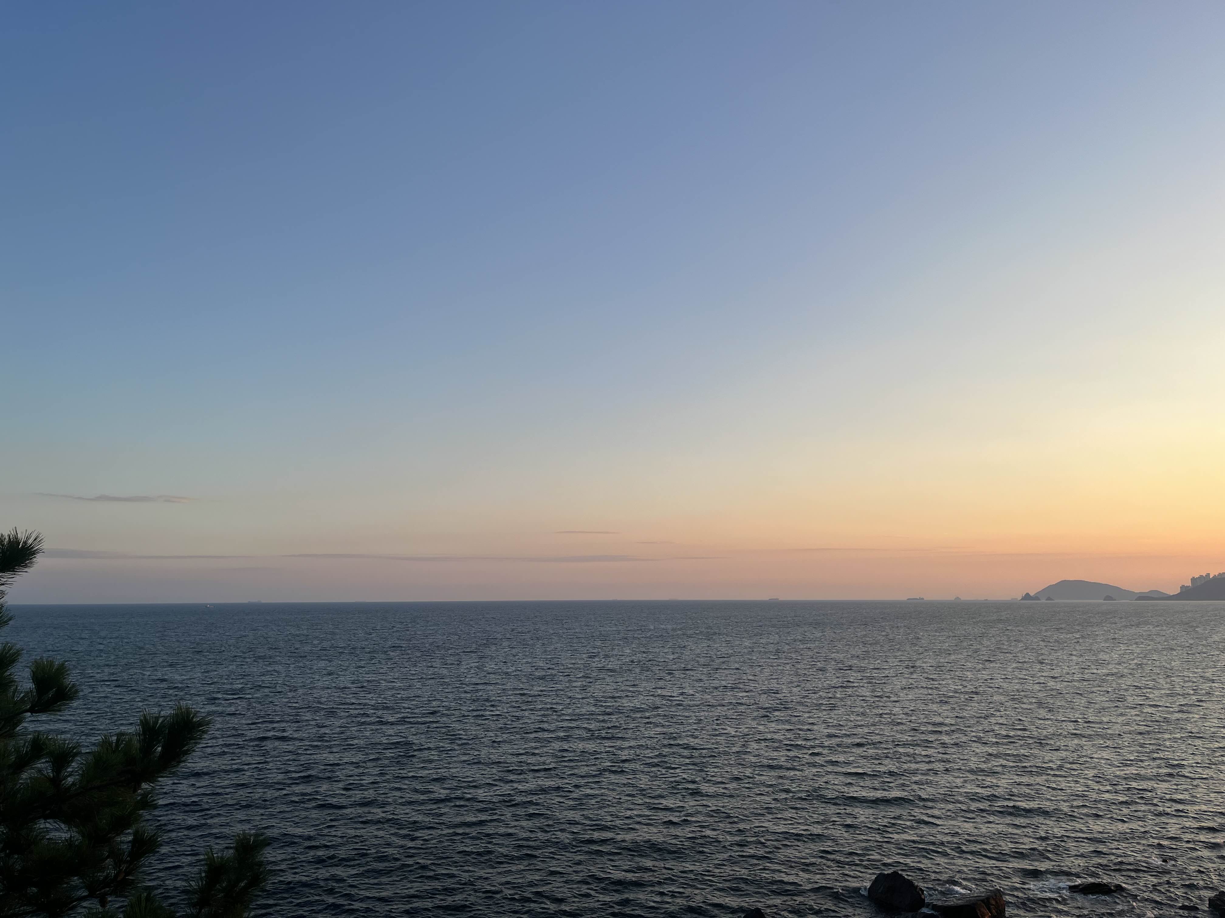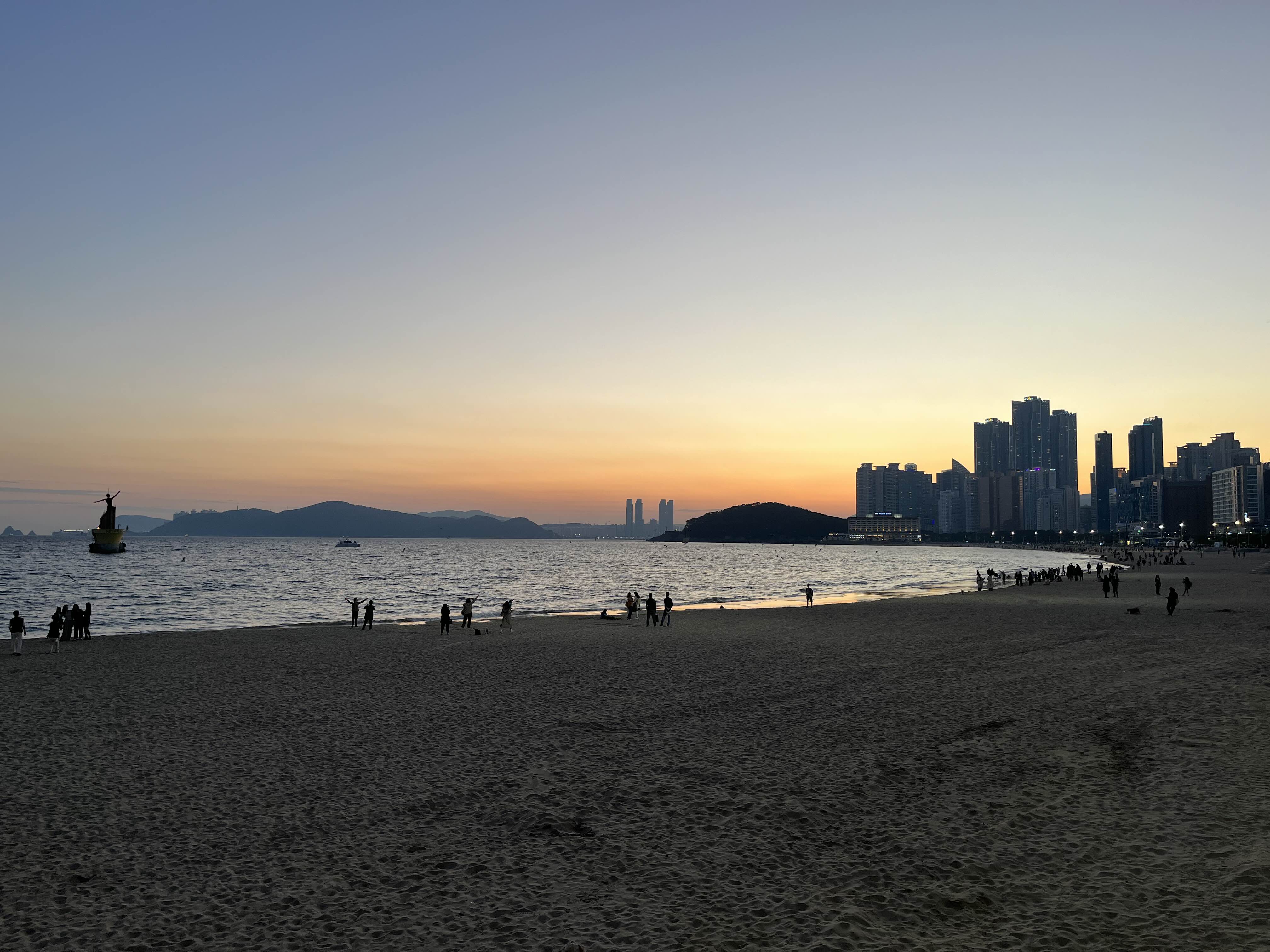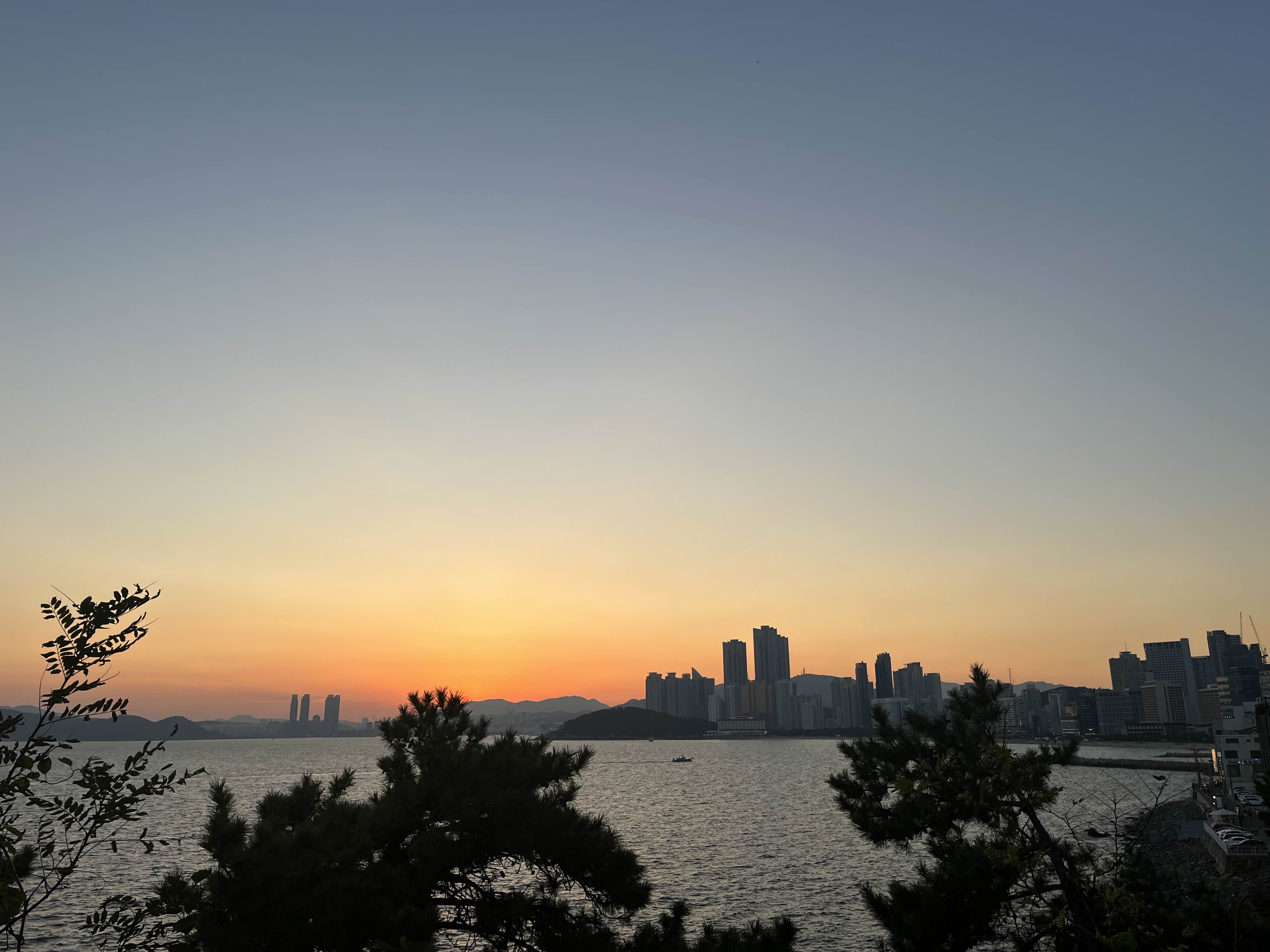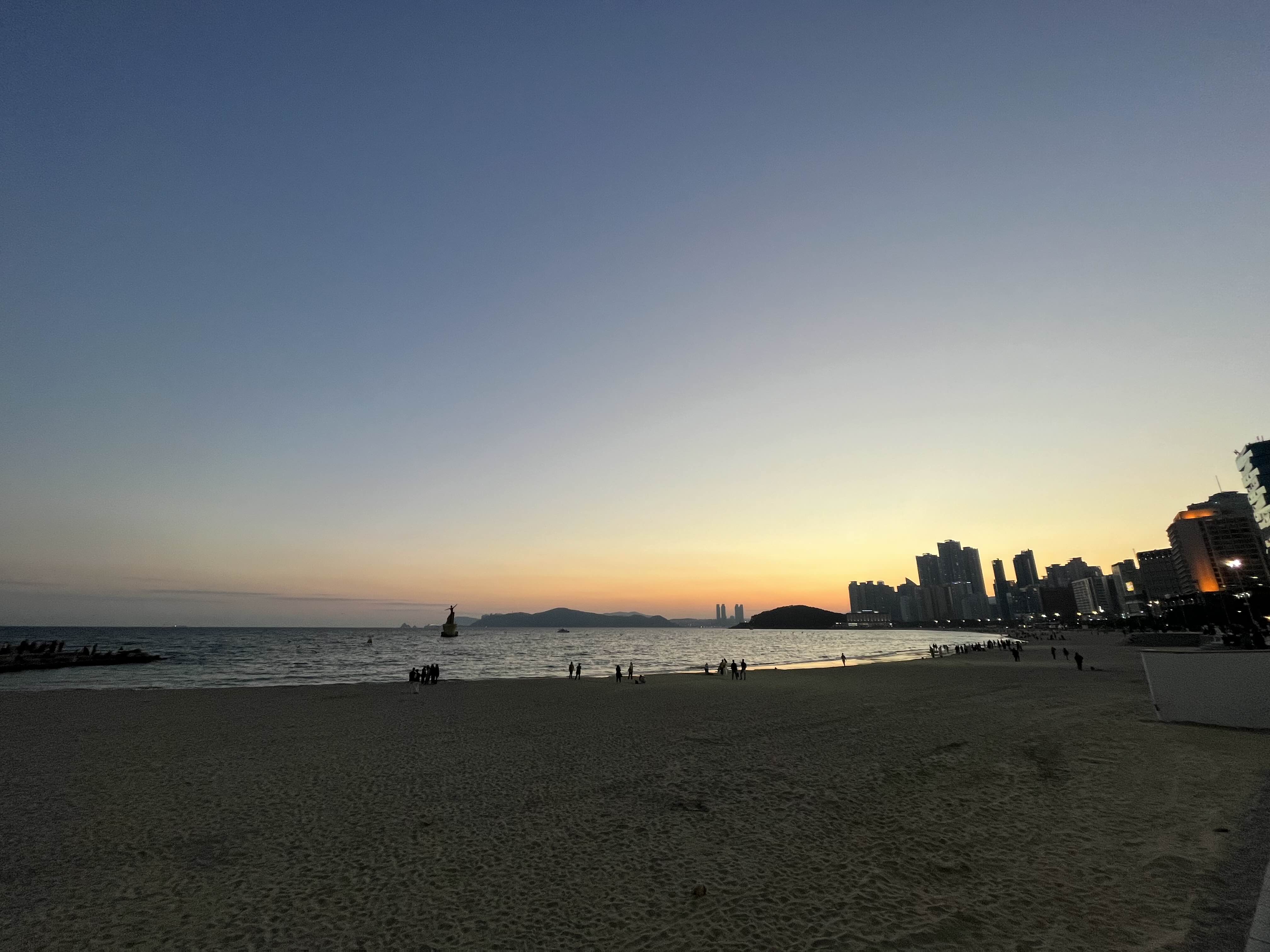 해운대 황혼의 시간 해가 거의 넘어가기 직전이다