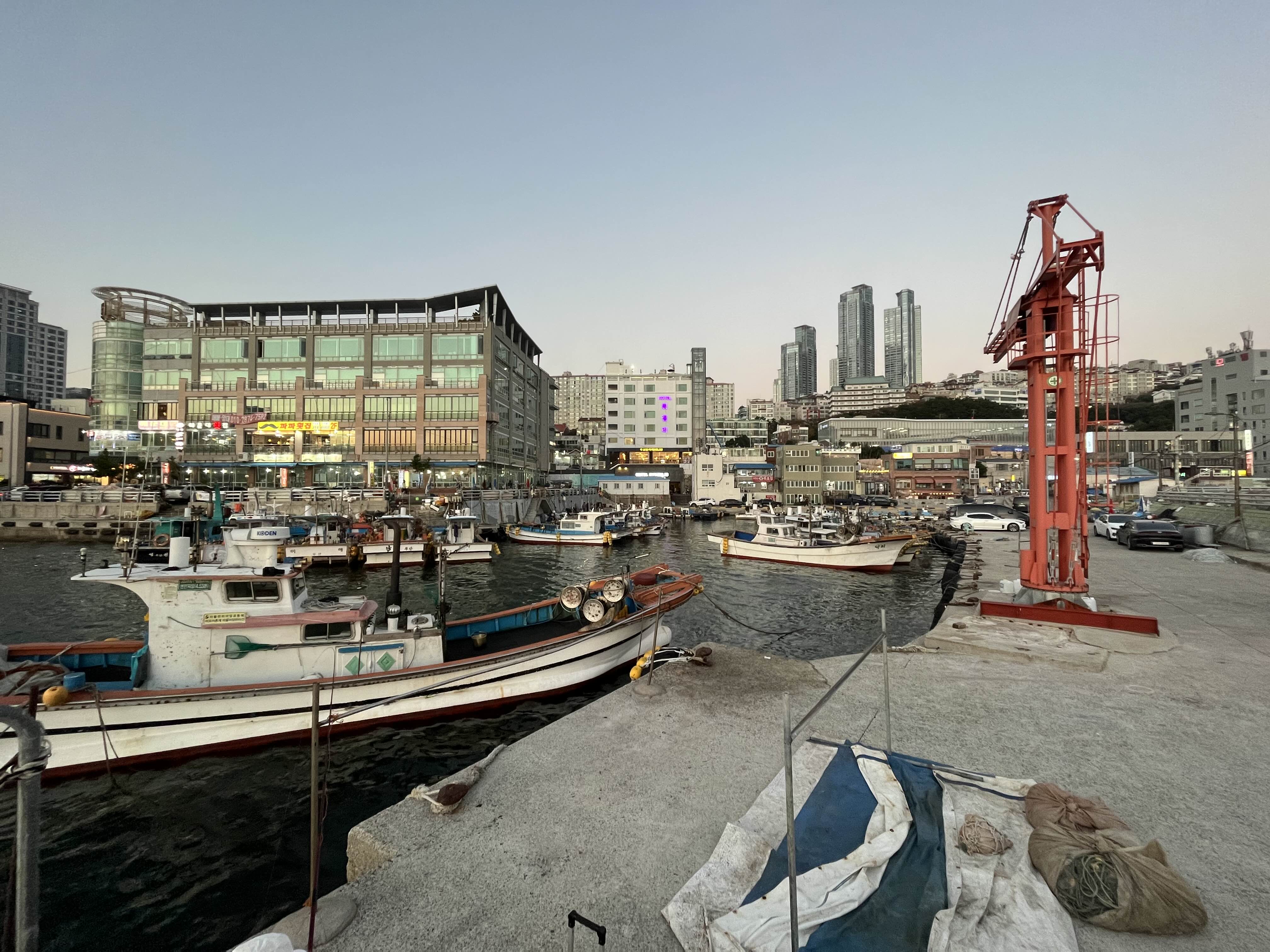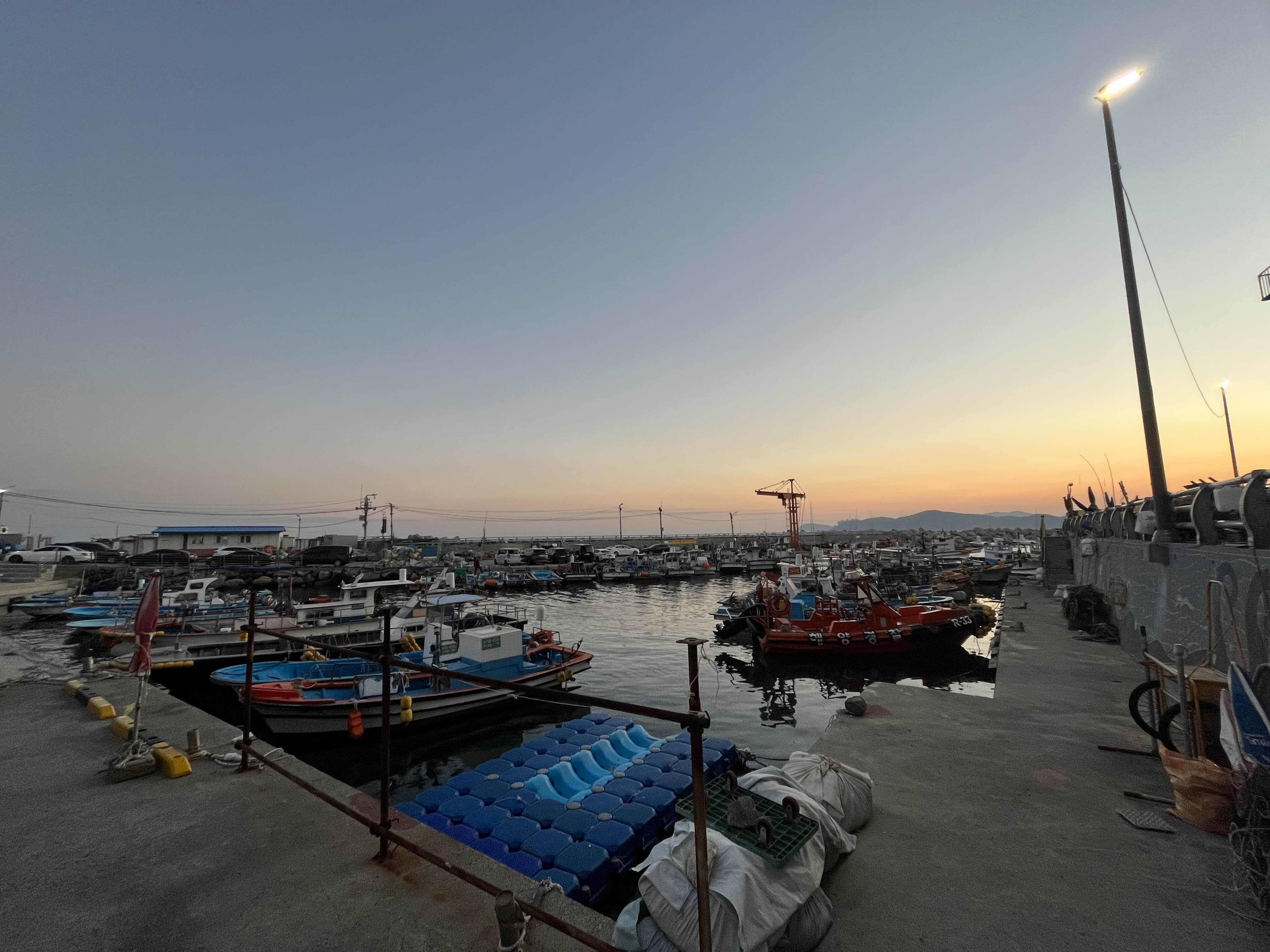 황혼의시간이 거의깥나간다 미포항이 낚시 포인트 인지는 모르겠지만
