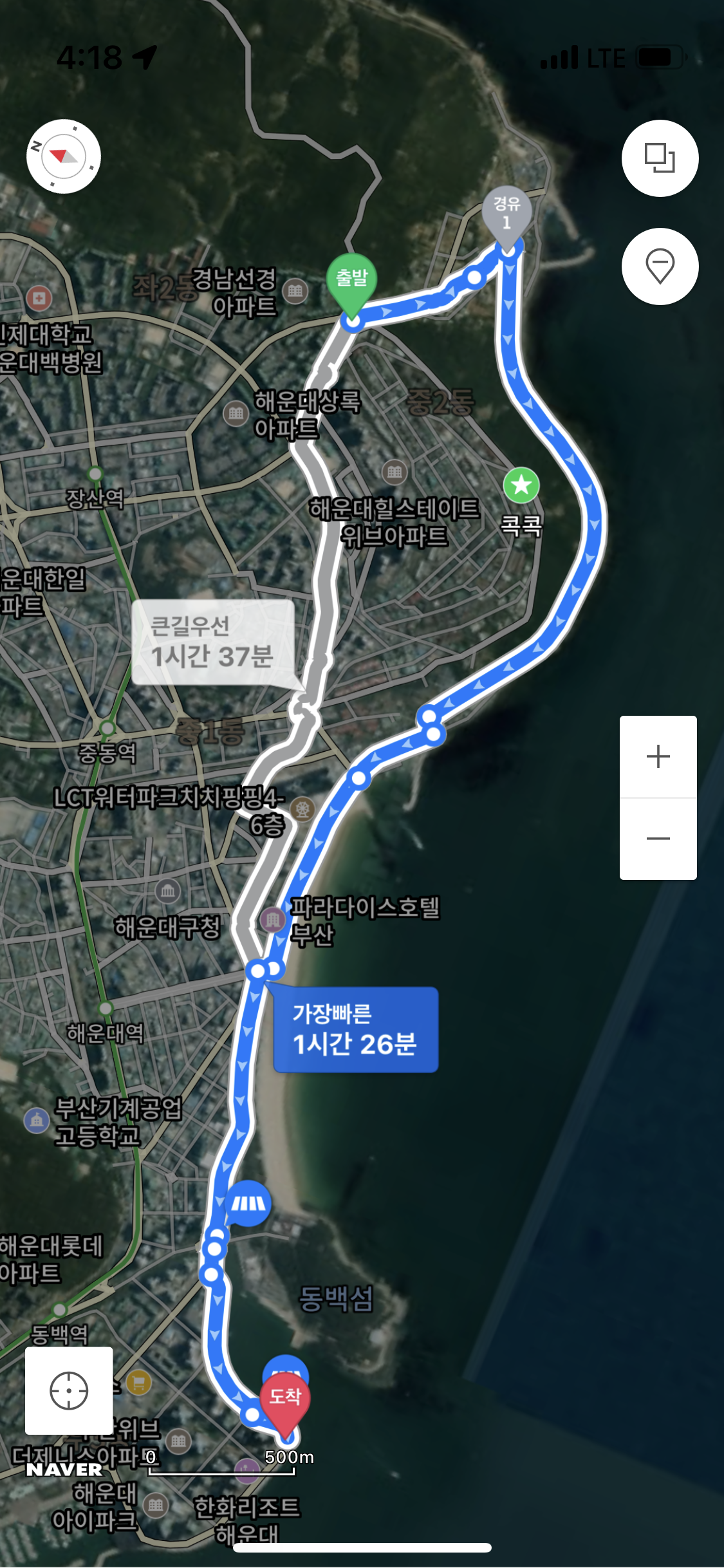 저멀리 목적지가 보인다 해운대 황혼의 시간이 끝이나고..