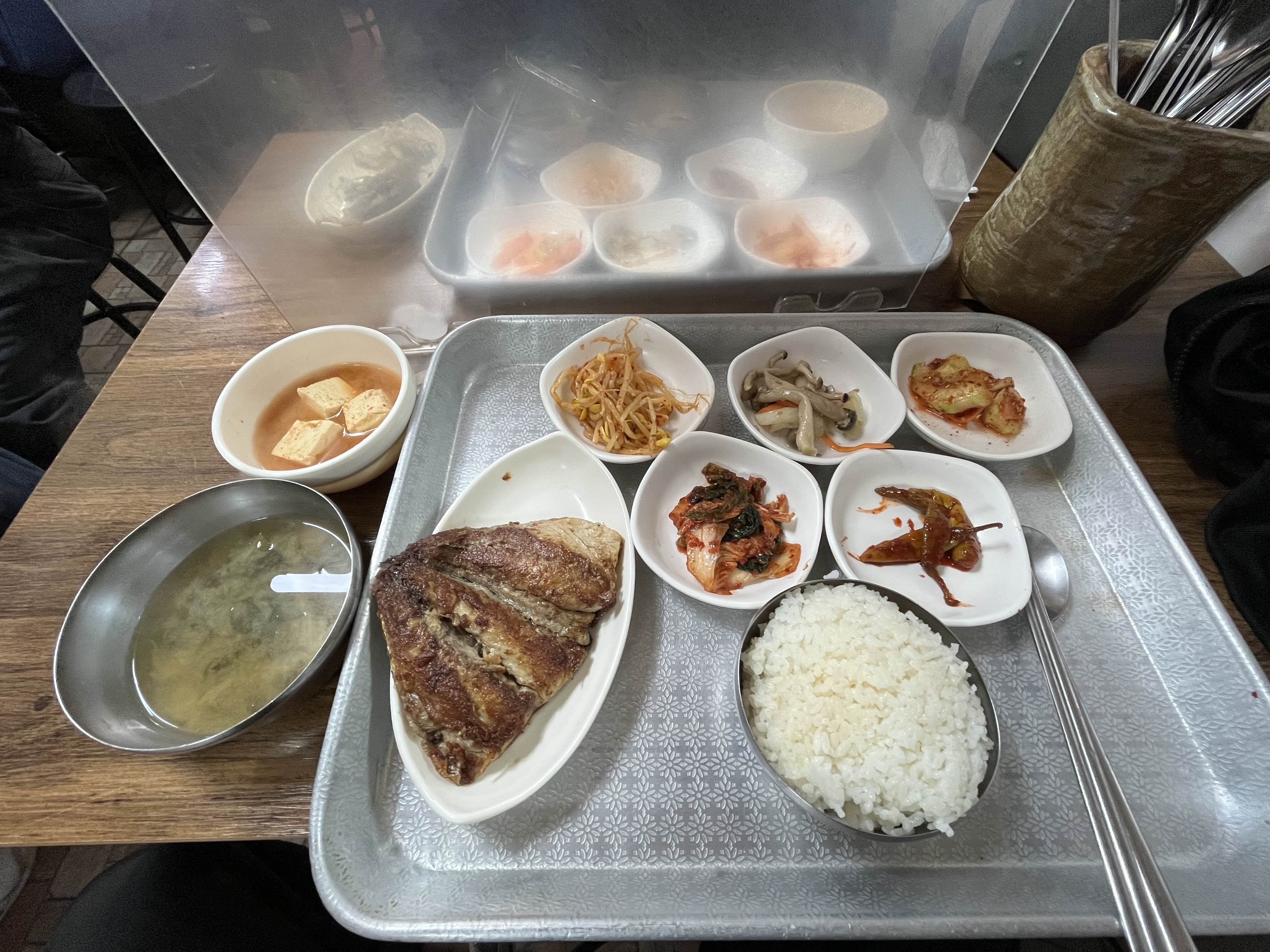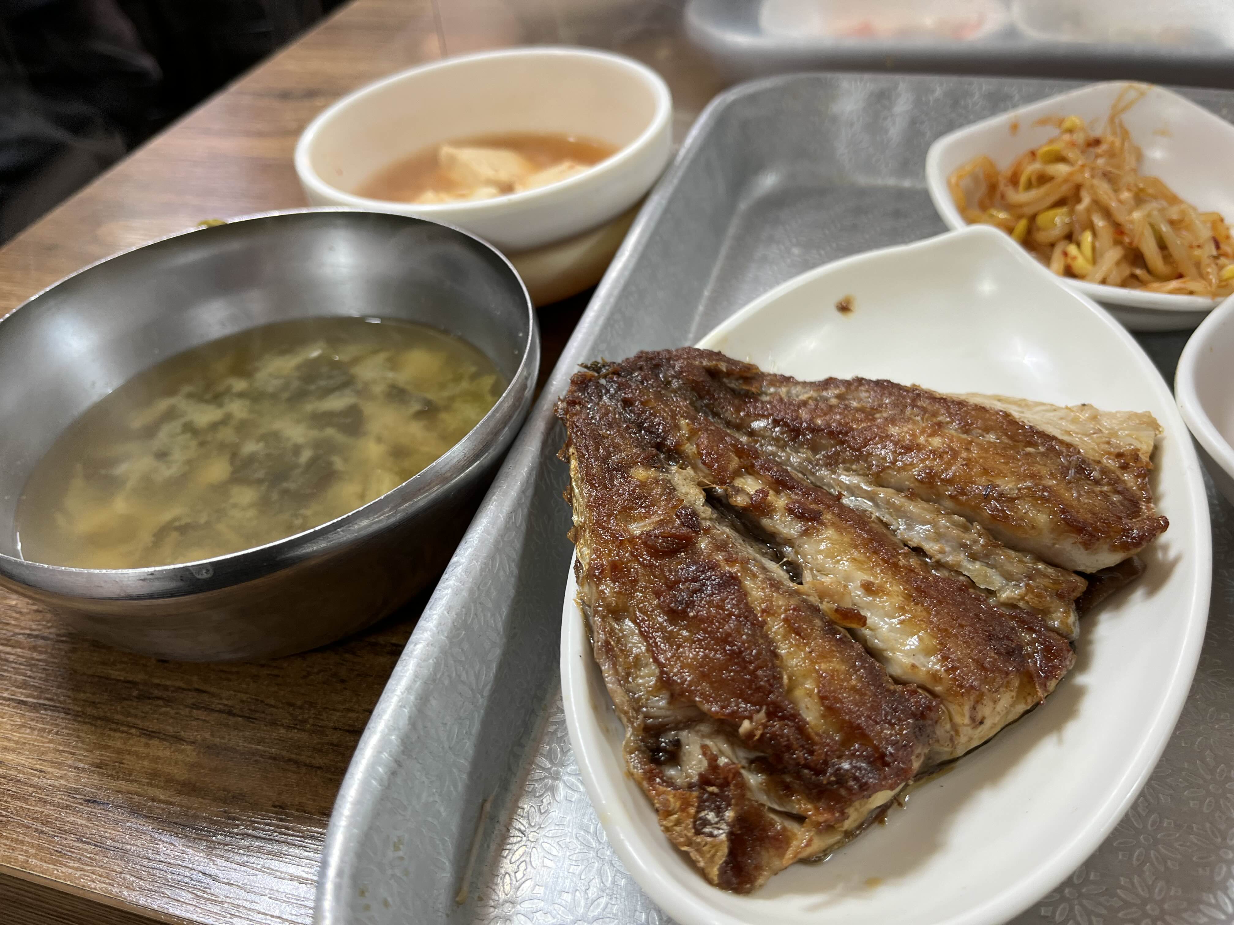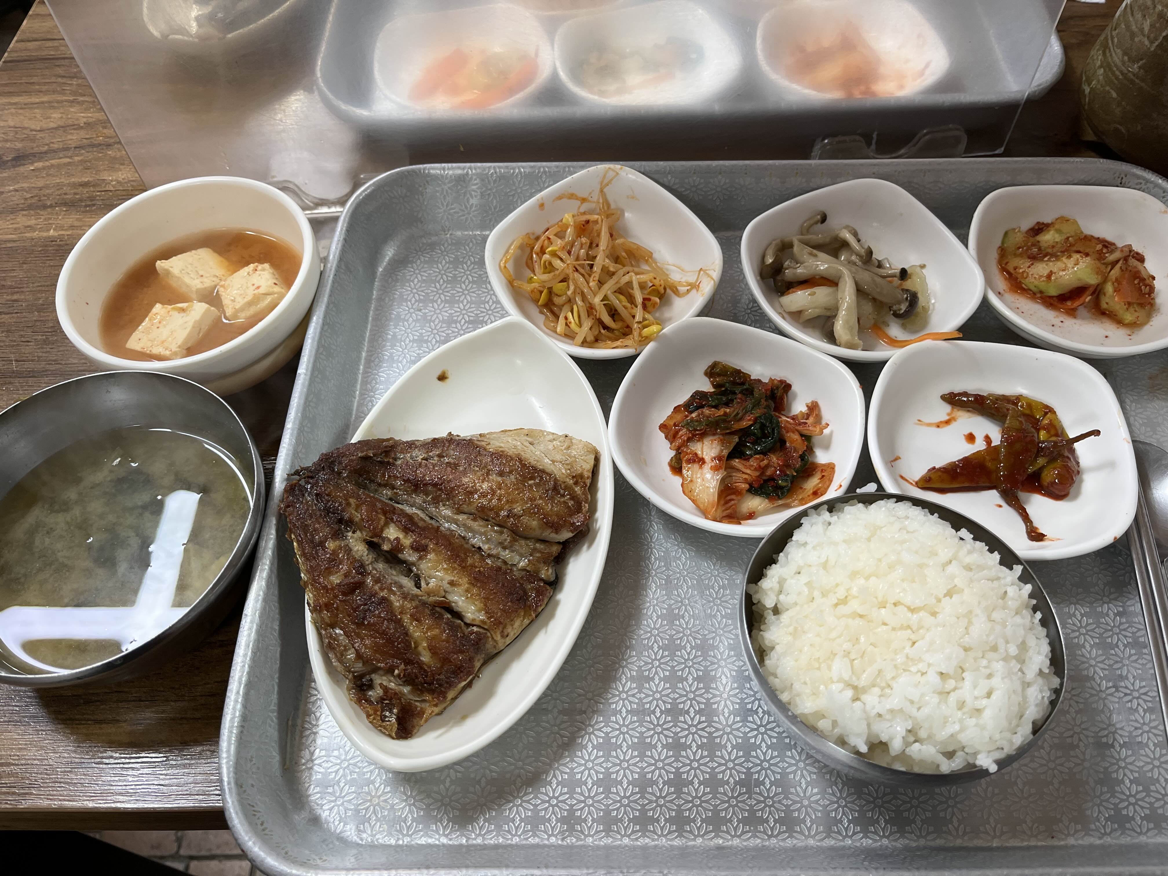 반찬개수는 오히려 늘어난거 같다 된장국 김치 밥 고등이 였던거 같은데
