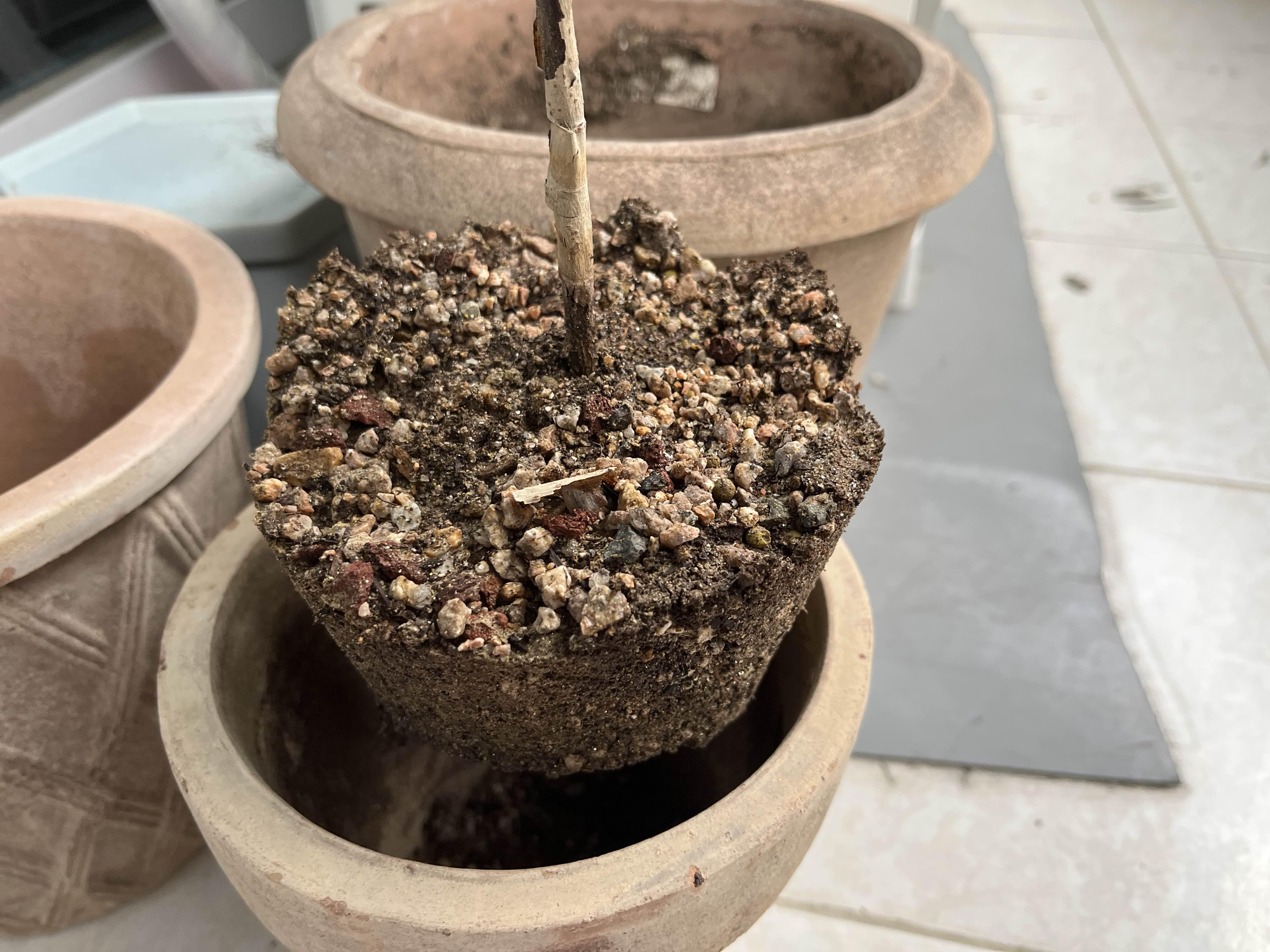 나름 돈값하는 마데인 이테리 화분 손잡이?? 줄기를 잡고 쑥 뽑아 올렸다 그전에 마사토? 알갱이만 따로 분리 해주고