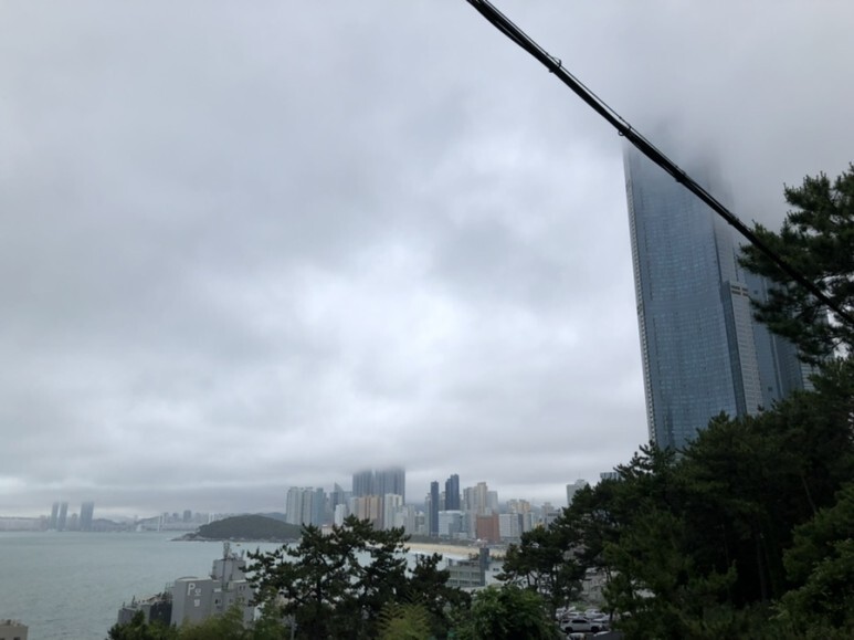 솔마루입구에서본 해운대 - 날씨 좋은 날 날씨 좋은날 솔마루앞 산책길을 산책을 다하고 한잔하고 가기 좋은곳!!