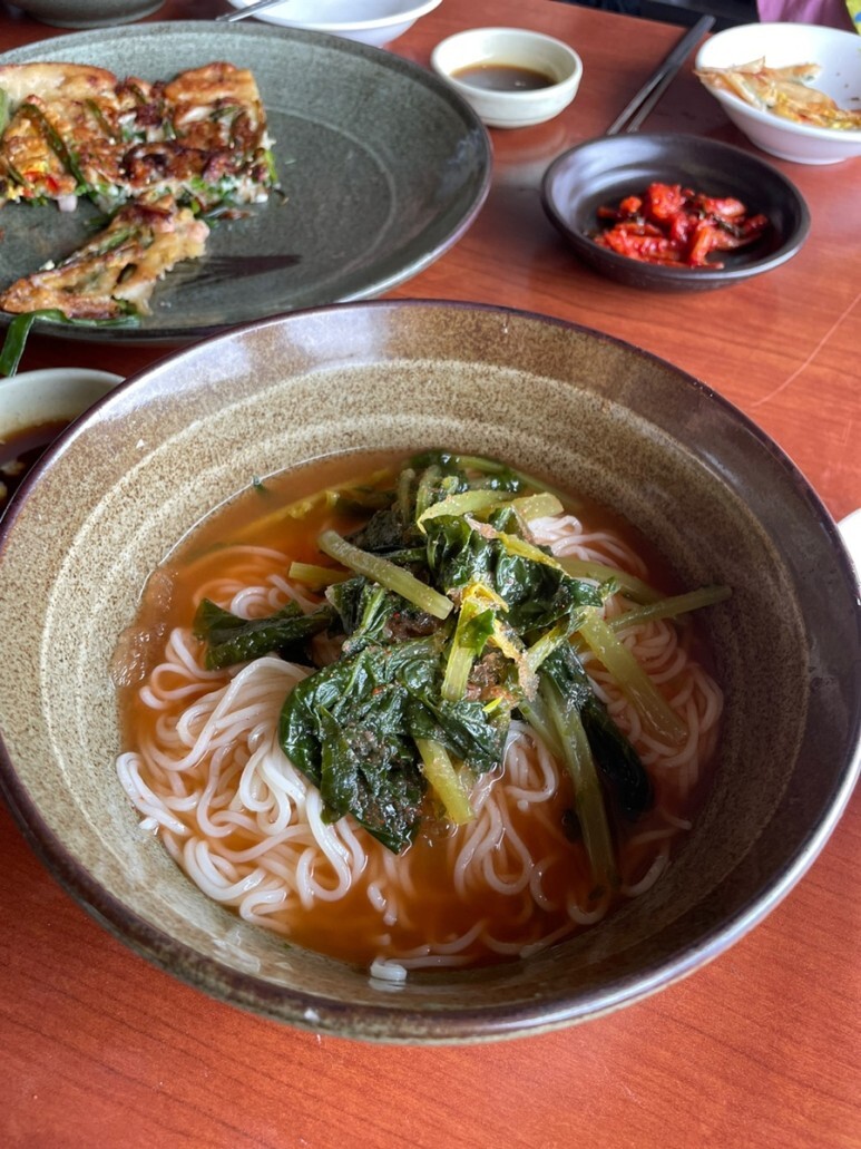 "해물파전 두부김치 계란말이 열무/비빔 국수"