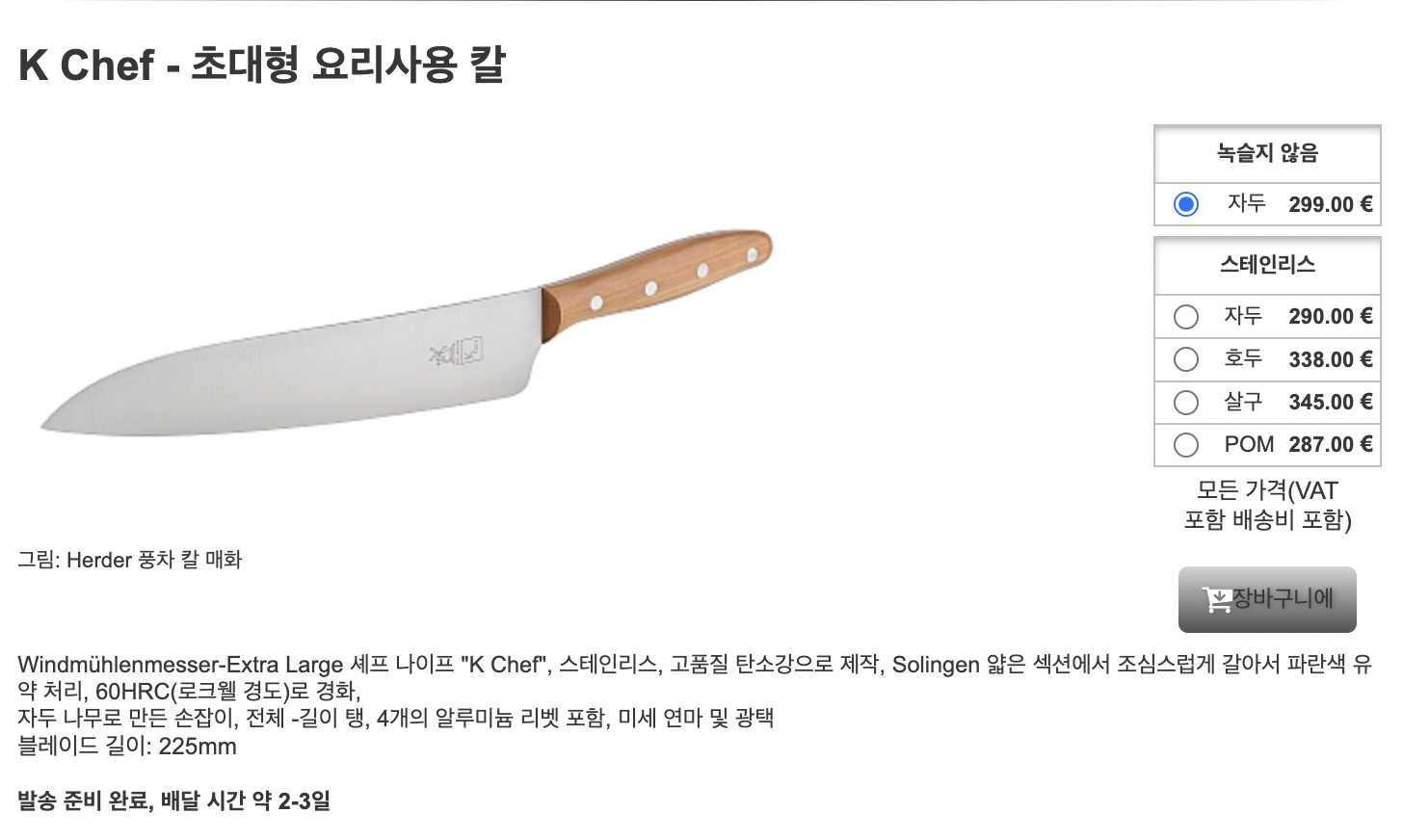 우연히 독일의 다른 사이트들을 보다가 칼을 판매를 전문으로 하는 사이트를 확인 했다.