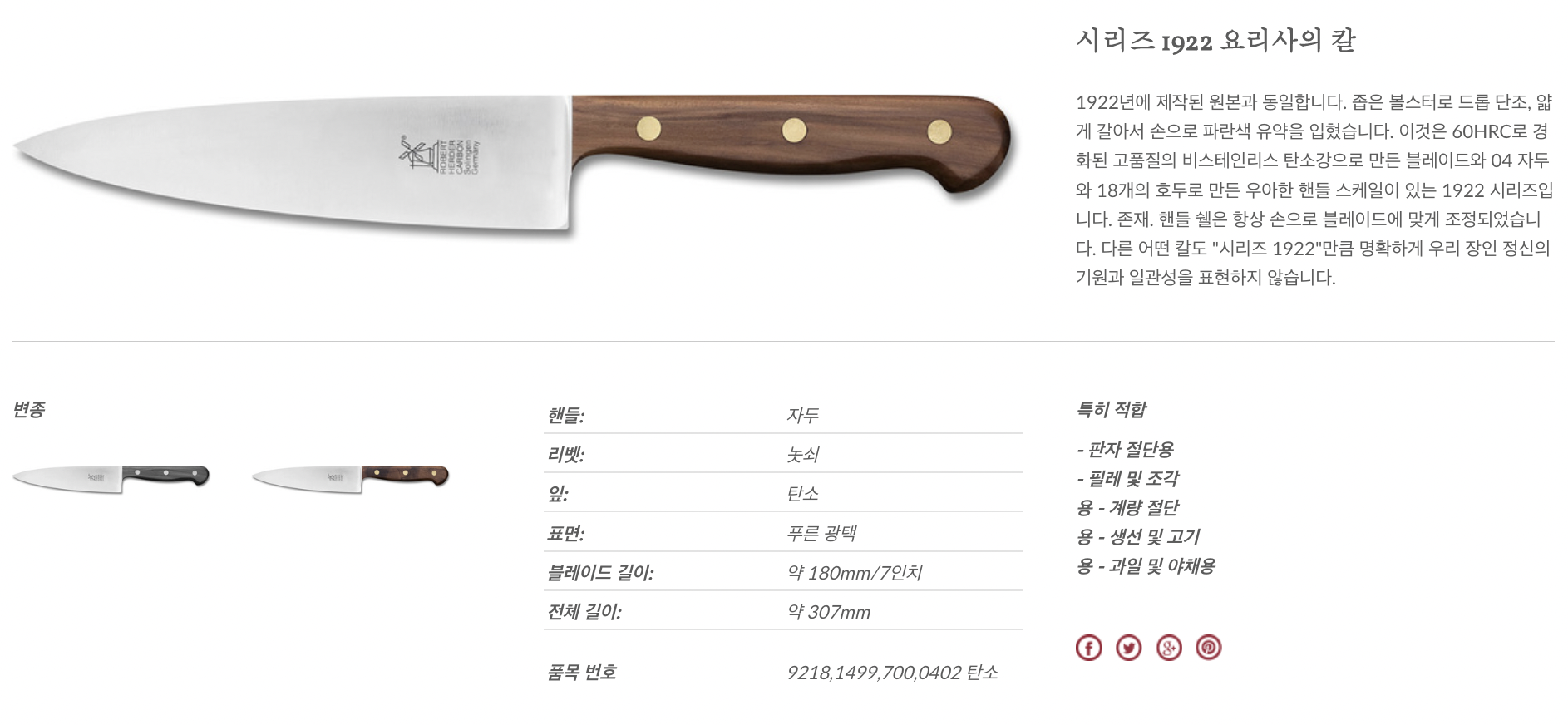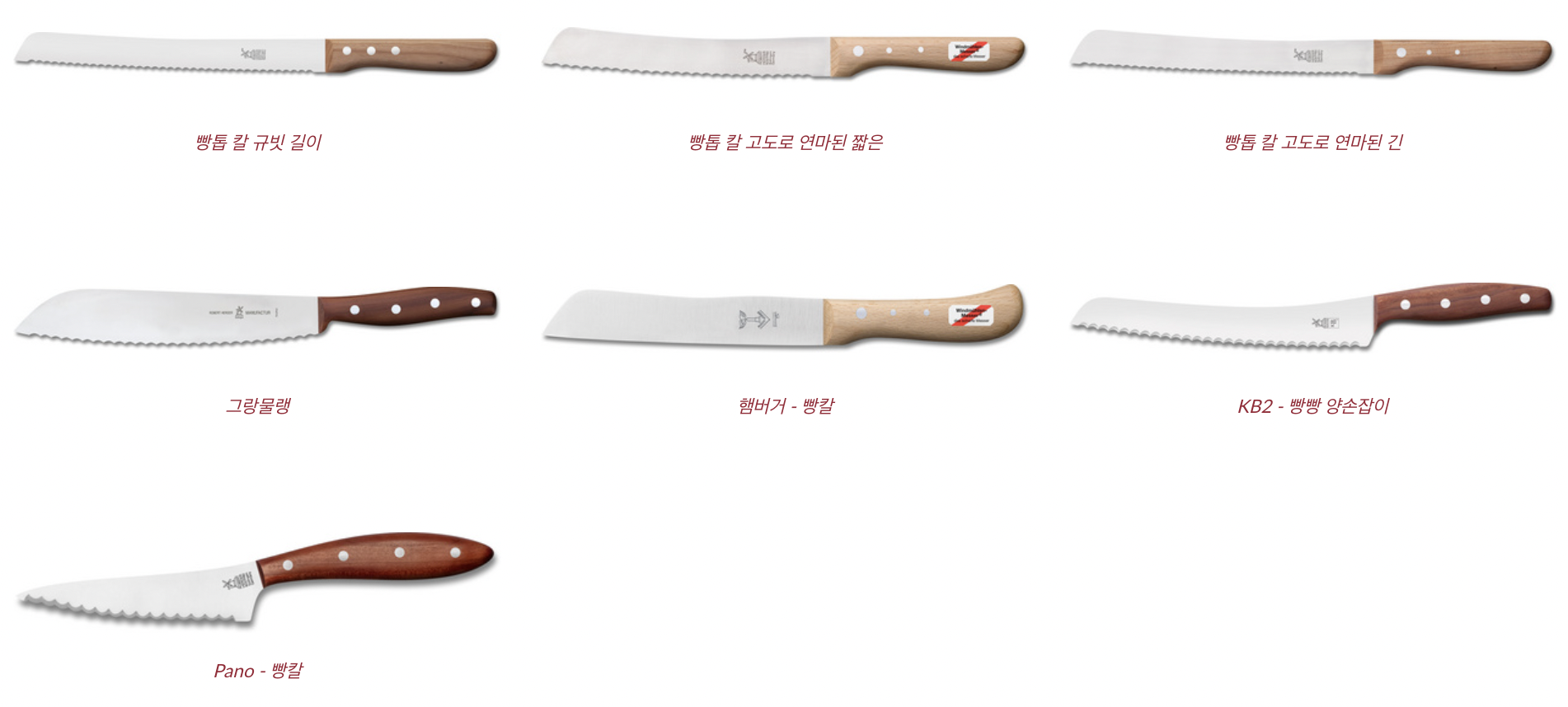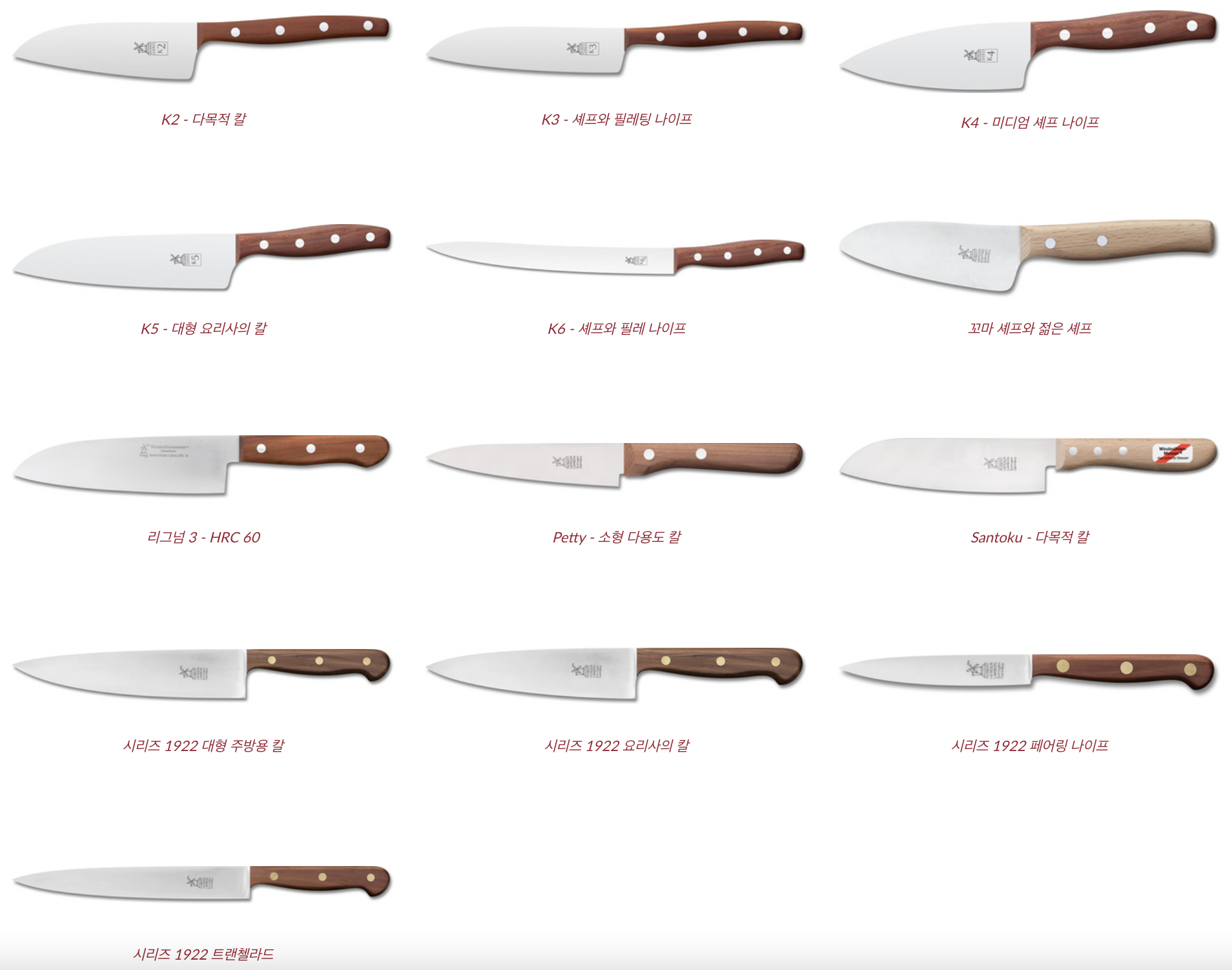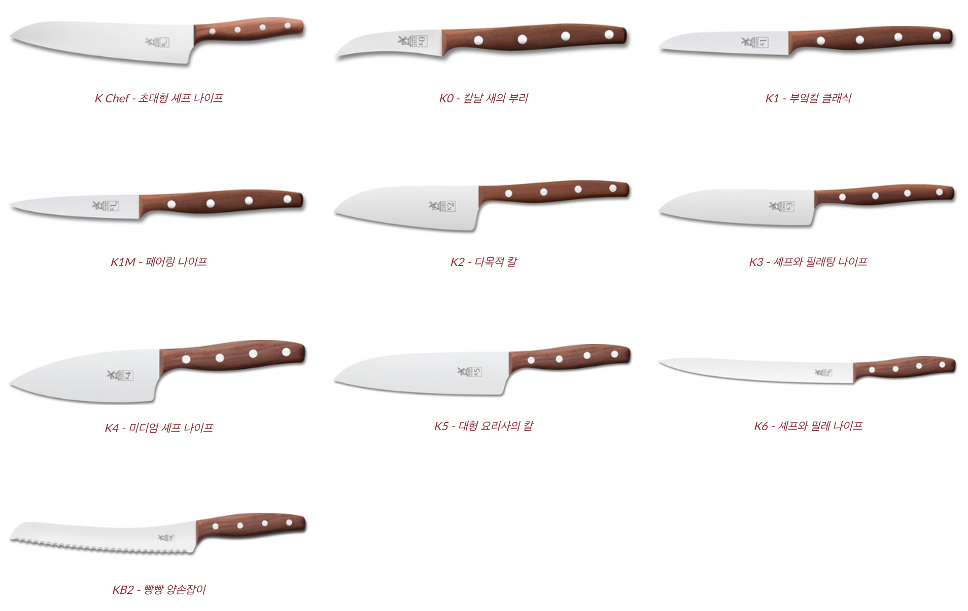 공식사이트에는 칼 하나하나 상세설명이 되어있다