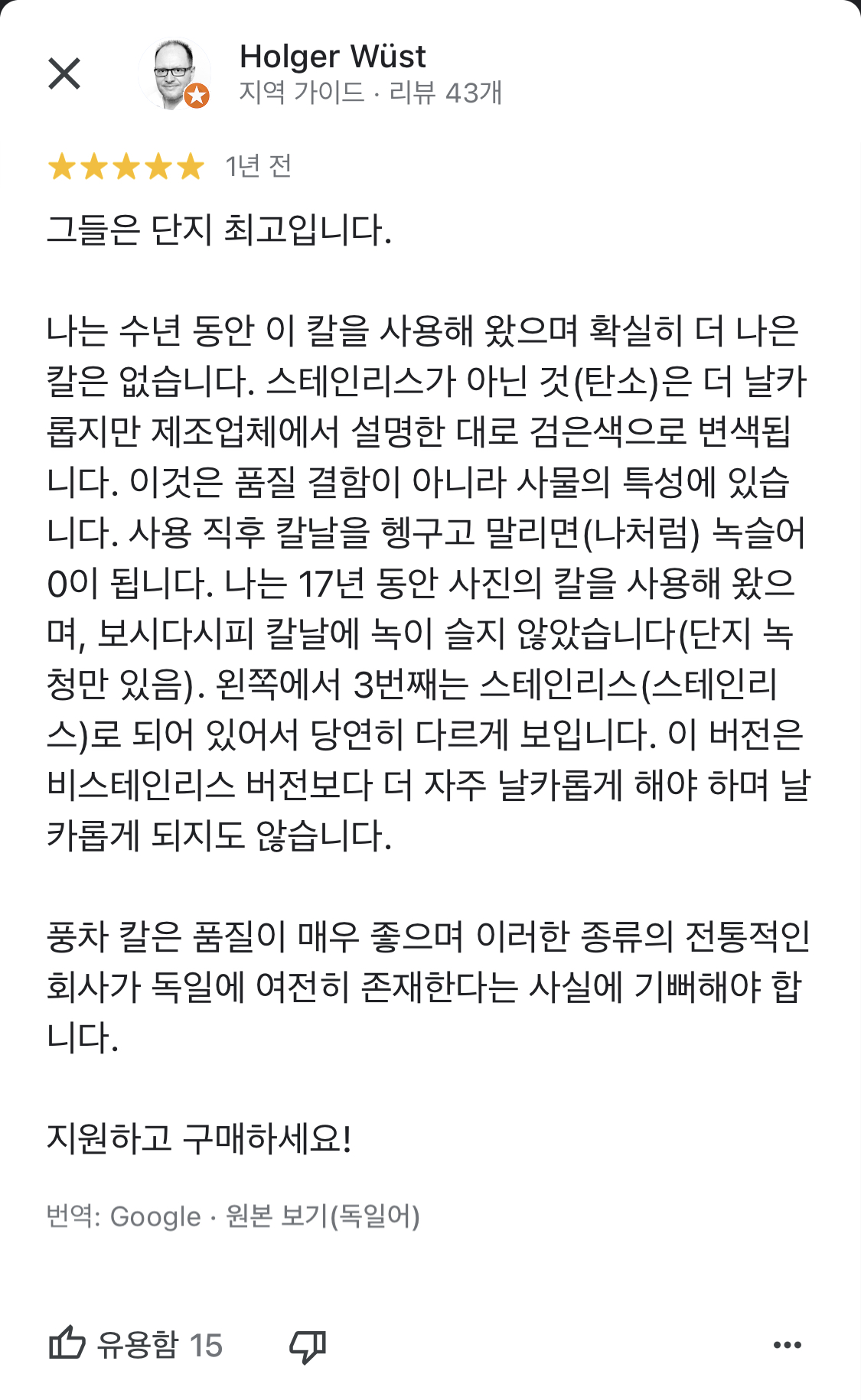 17년동안 사용한 로버트 허더 풍차칼 후기 아주 칭찬일색이다 ㅋ 무려 17년동안 사용하다니 100년 역사에 비하면.. ㅎㅎ