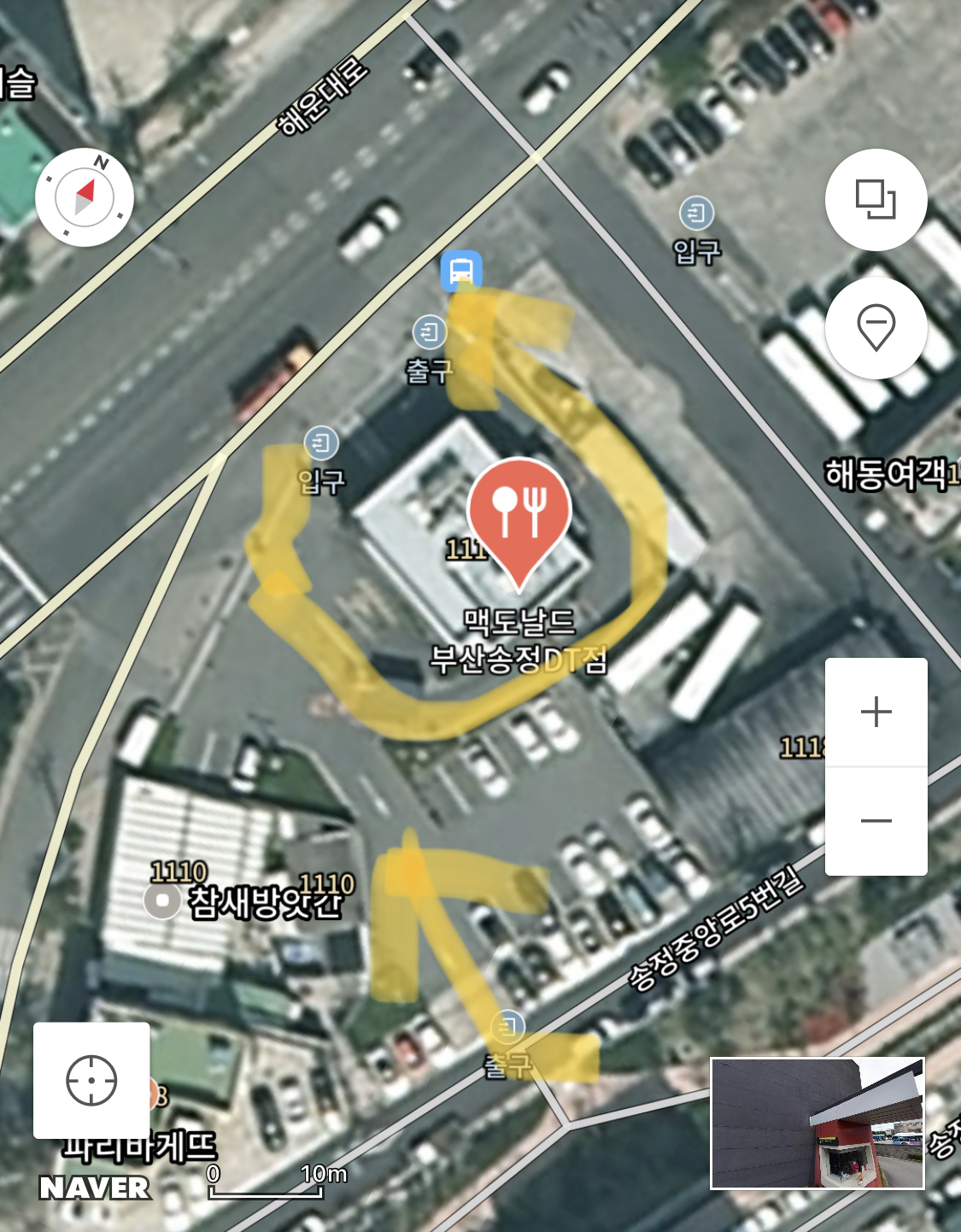 맥도날드 부산송정 DT점 주차장 과 드라이브스루