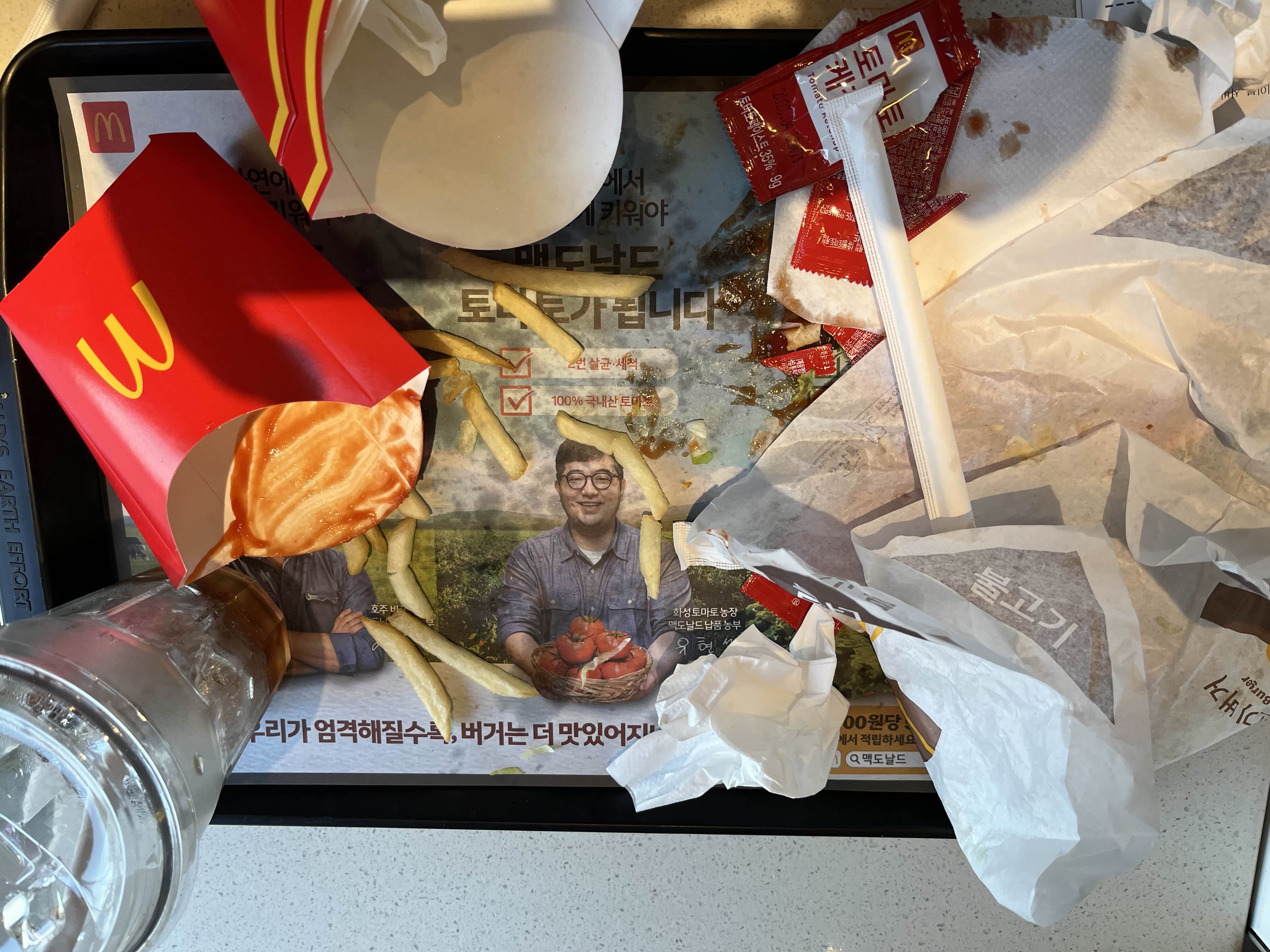 저 멀리 보이는 M자에 끌려서 드라이브 스루 아니고 바로 주차해서 먹기로 결정