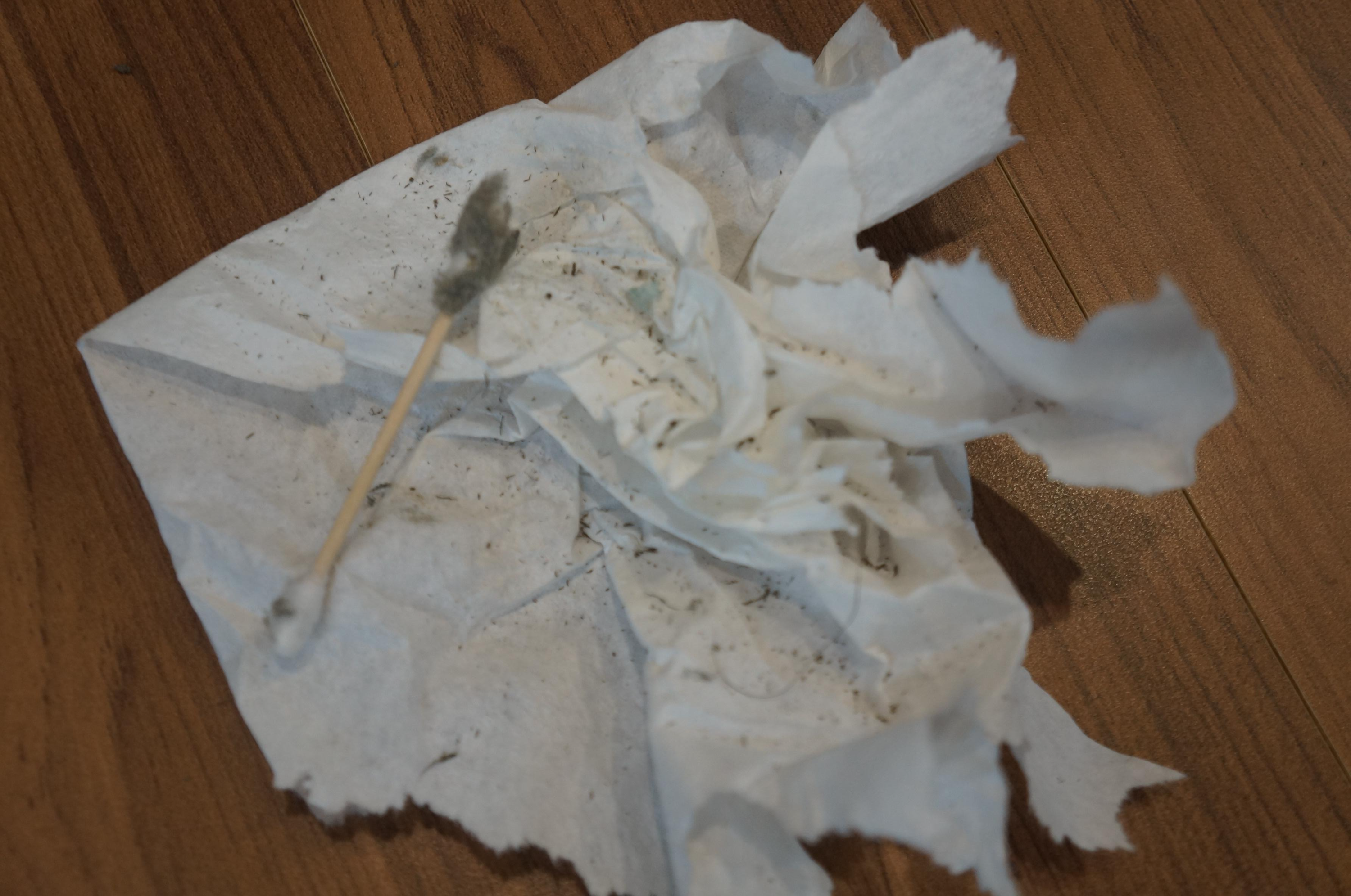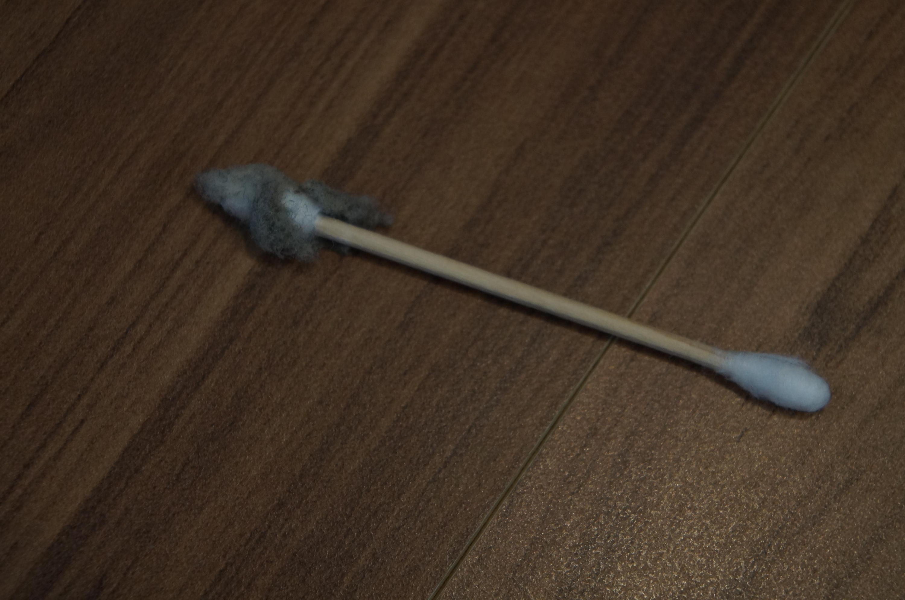 발뮤다 써큘레이터 모터 부위를 청소하고 얻은 먼지 ㅎㅎㅎ 면봉으로 이정도의 먼지만 나올 뿐!!