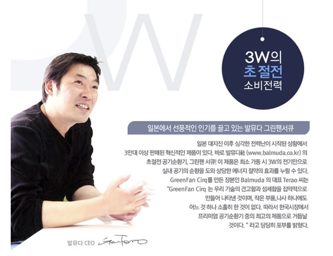 당시 인기를 얻게된 발뮤다. 지진당시 초절전 사용량으로 인기를 발군!