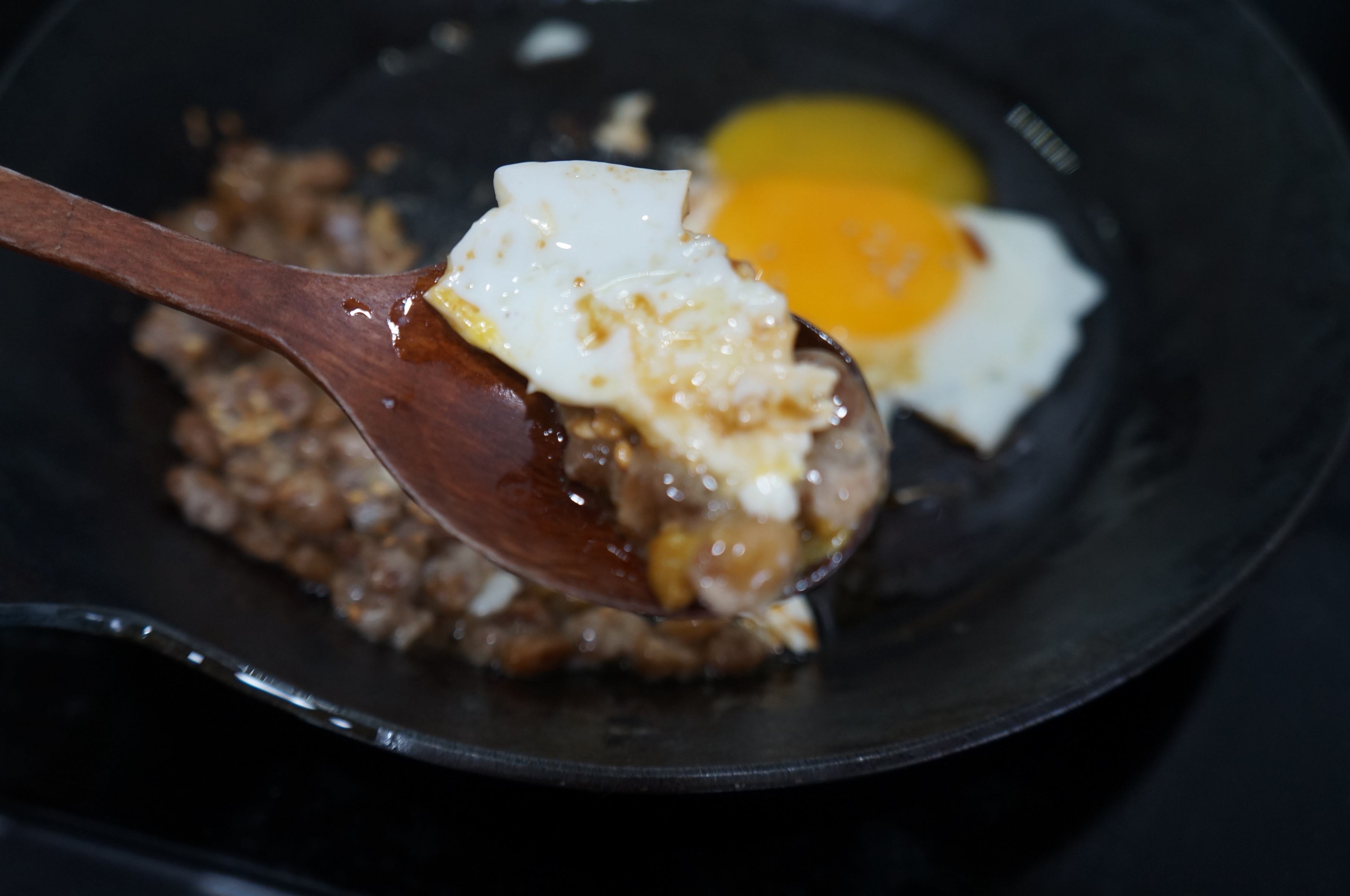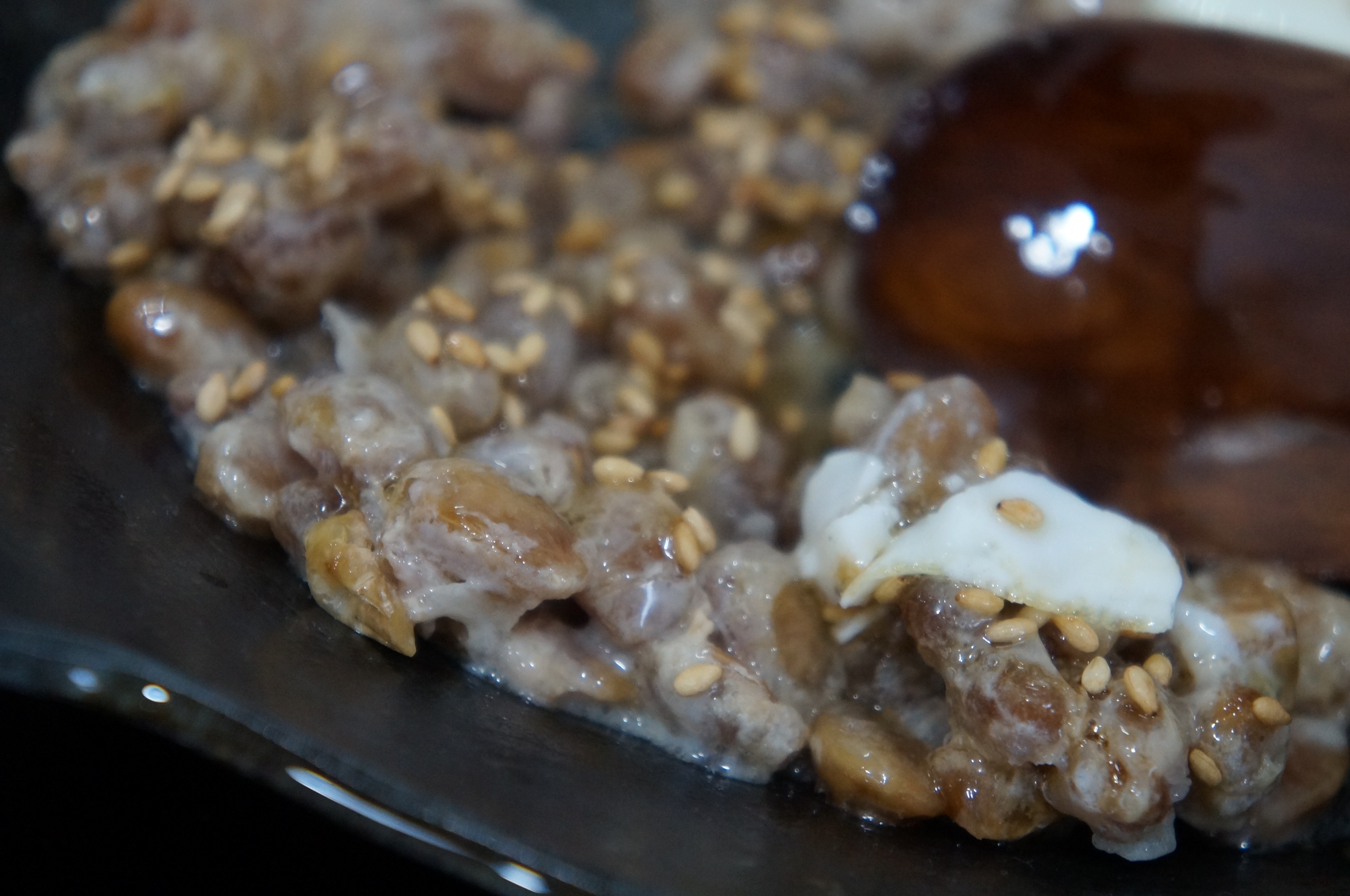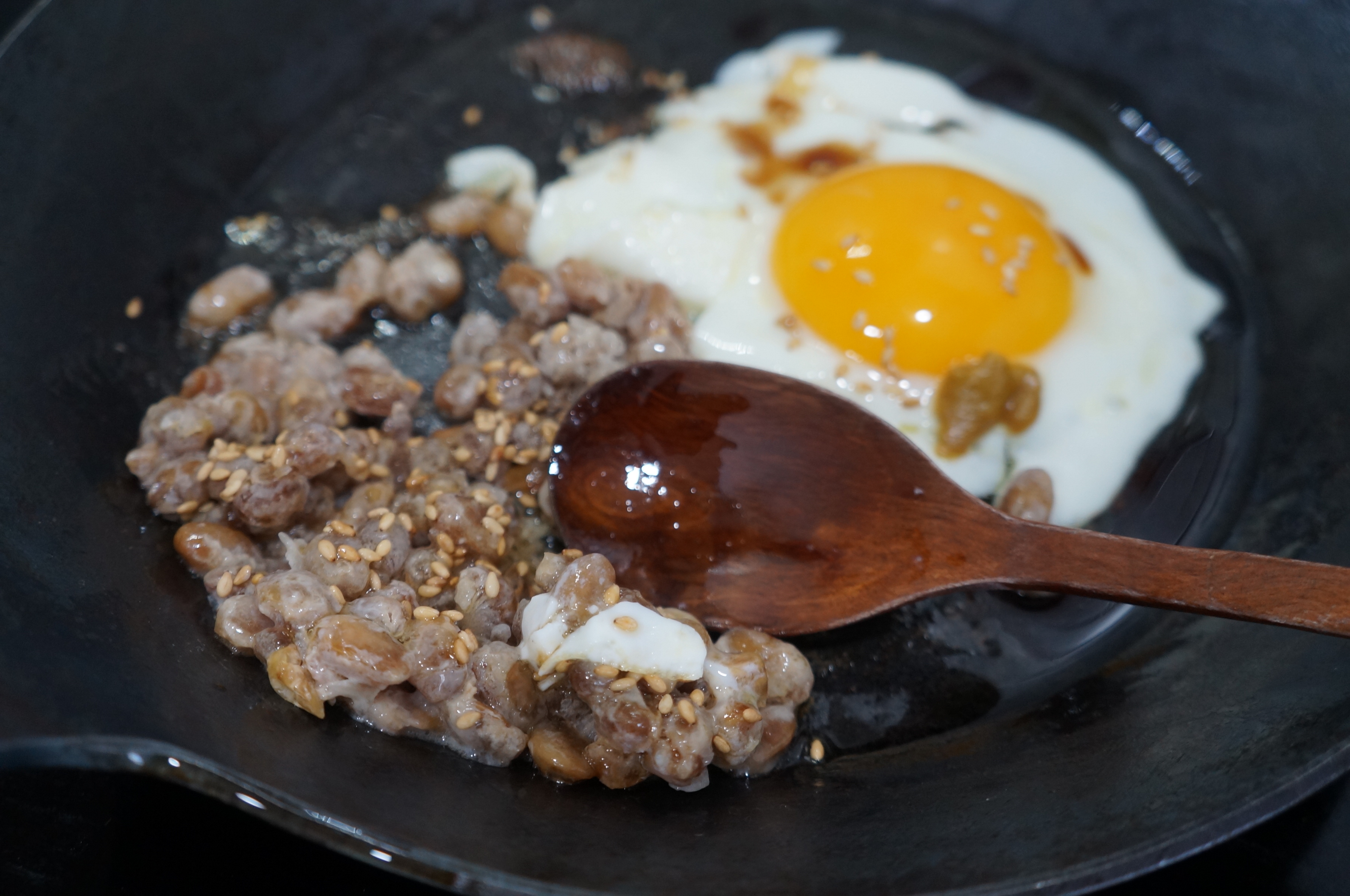나또와 계란 후라이 계란 후라이와 참기름 그리고 간장으로