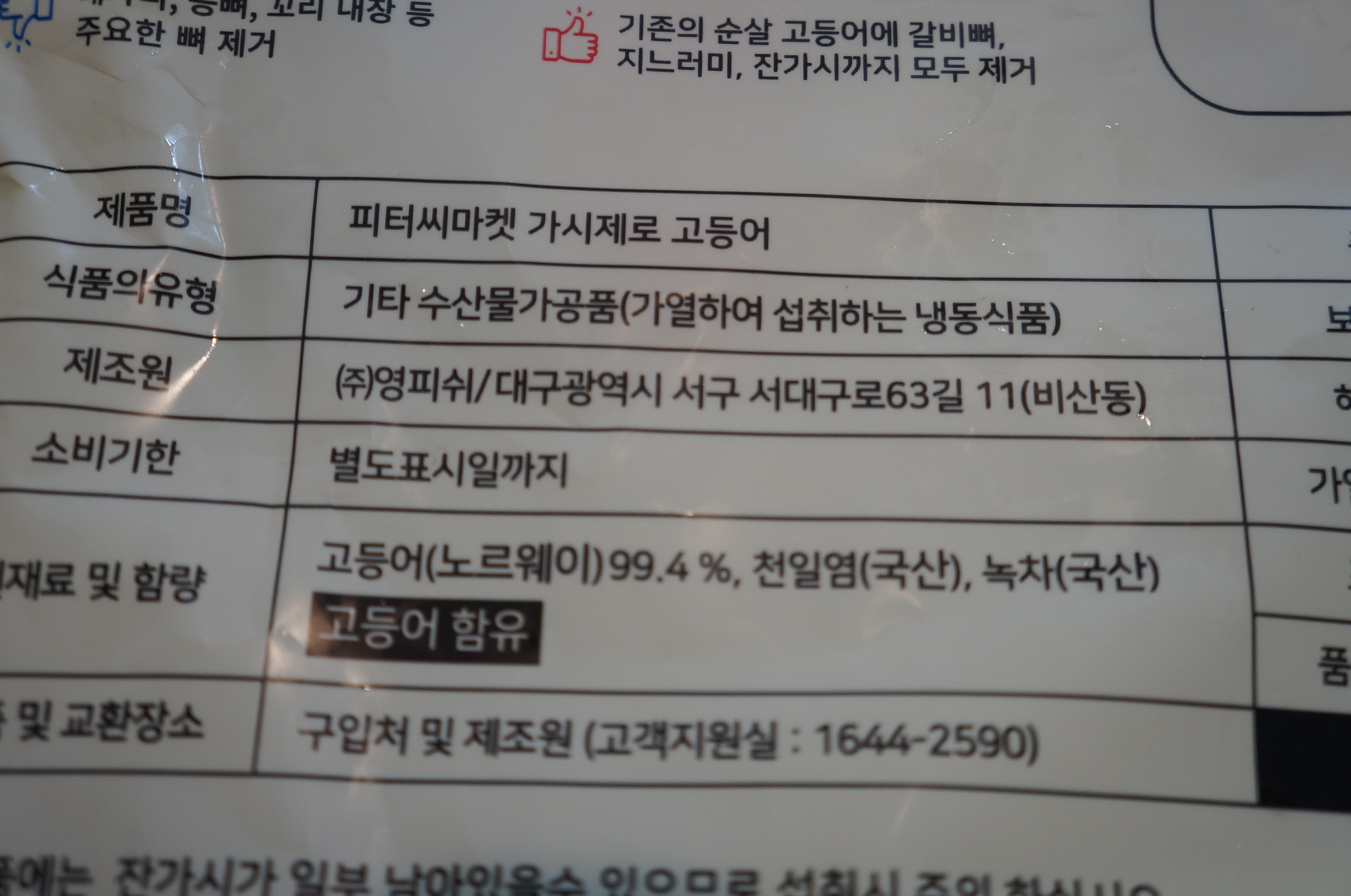 피터씨마켓 제로가시 고등어 원산지 노르웨이 고등어를 받아서 대구? 에서 가공했다 ㅋ