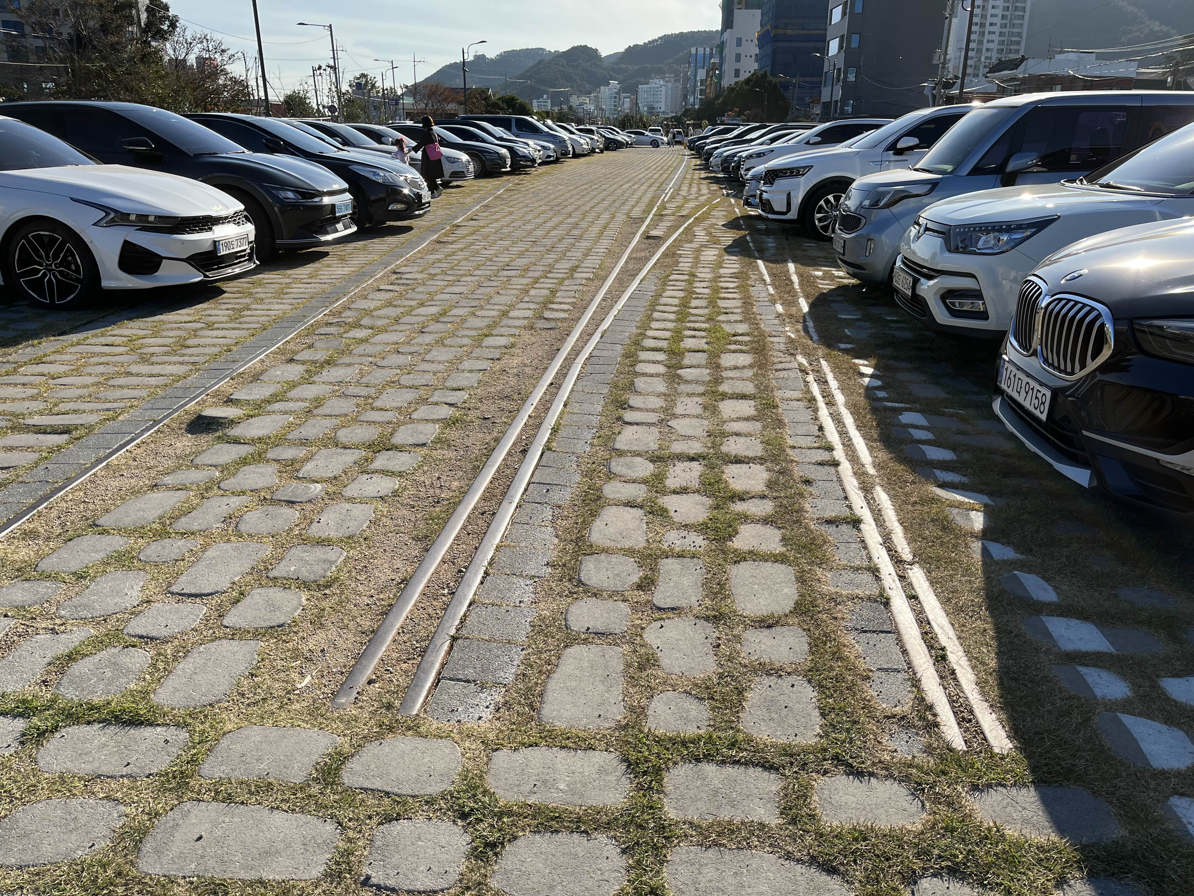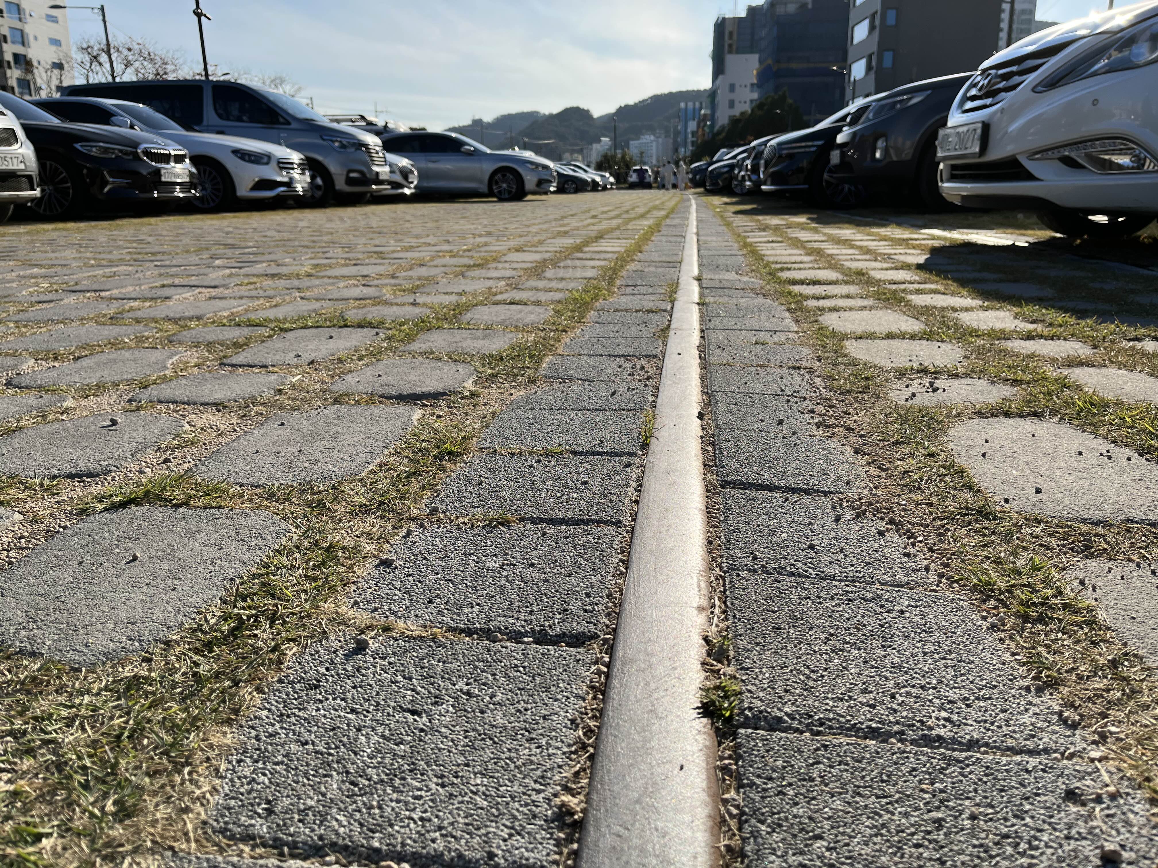 송정역 블루라인 파크 주차장에 남긴 철도레일 송정바다 주차장
