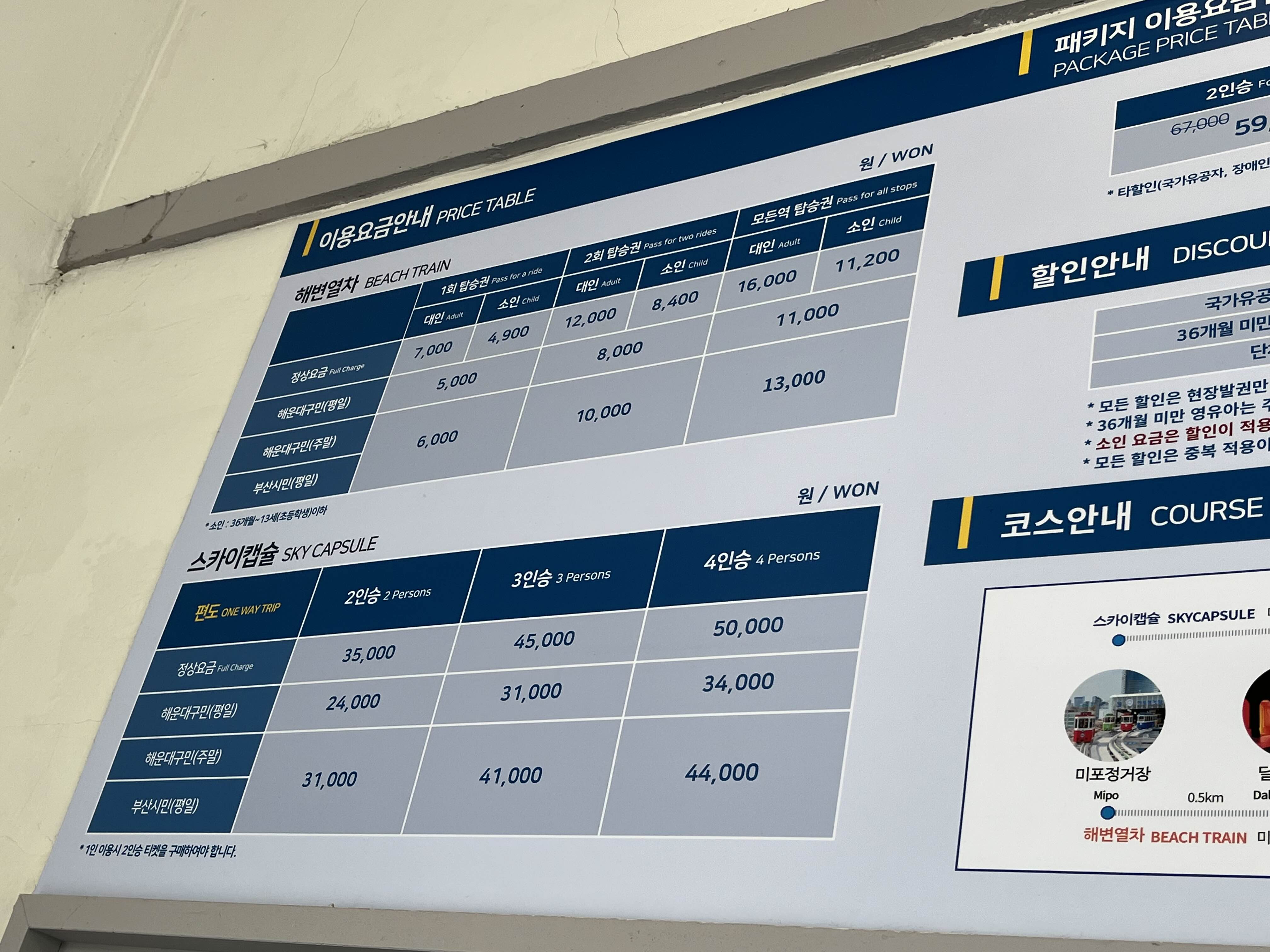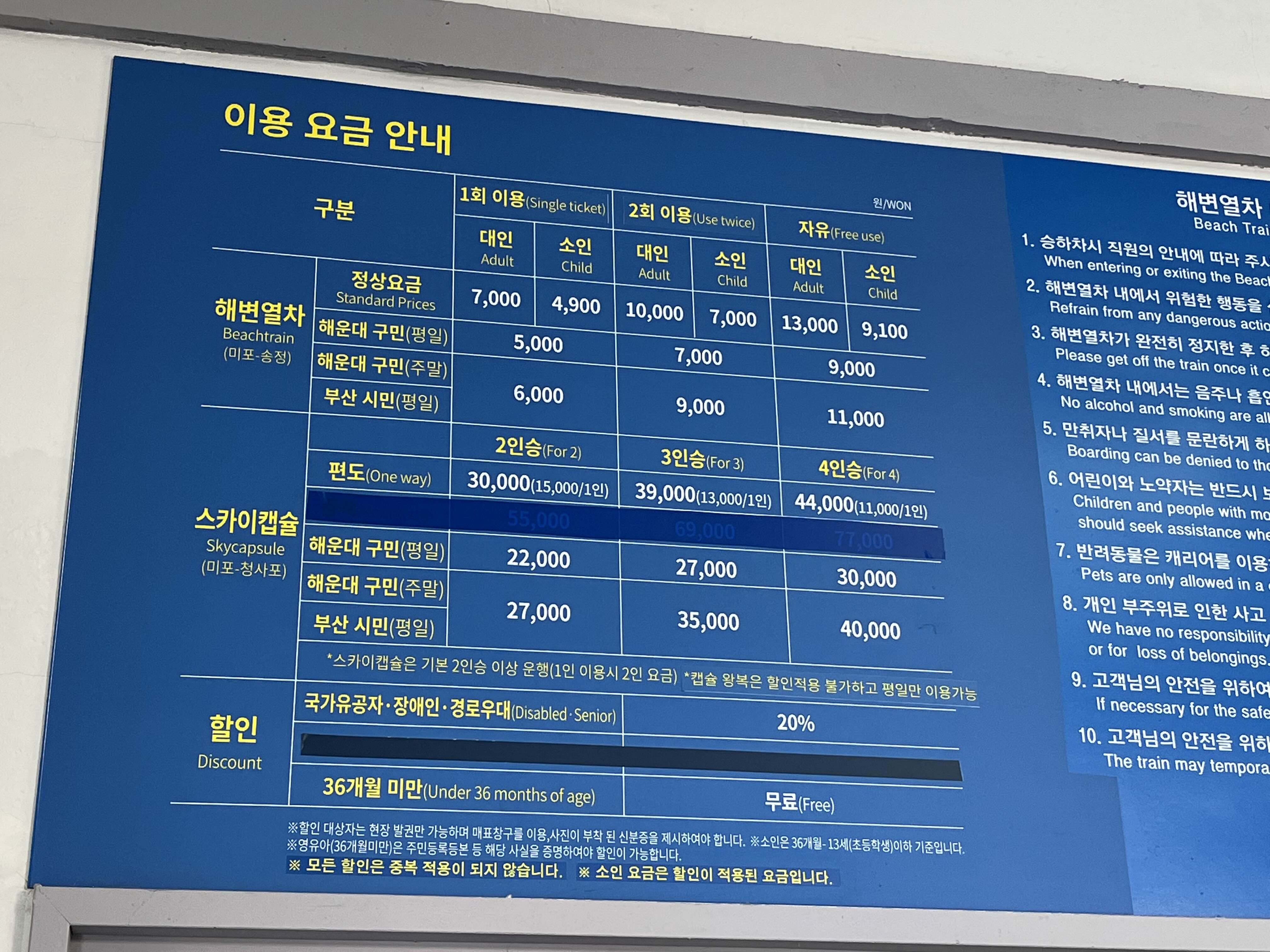 블루라인파크 요금표 - 22.11.24 송정역사 내부에는 블루라인파크 이용요금과 매표소로 이용중