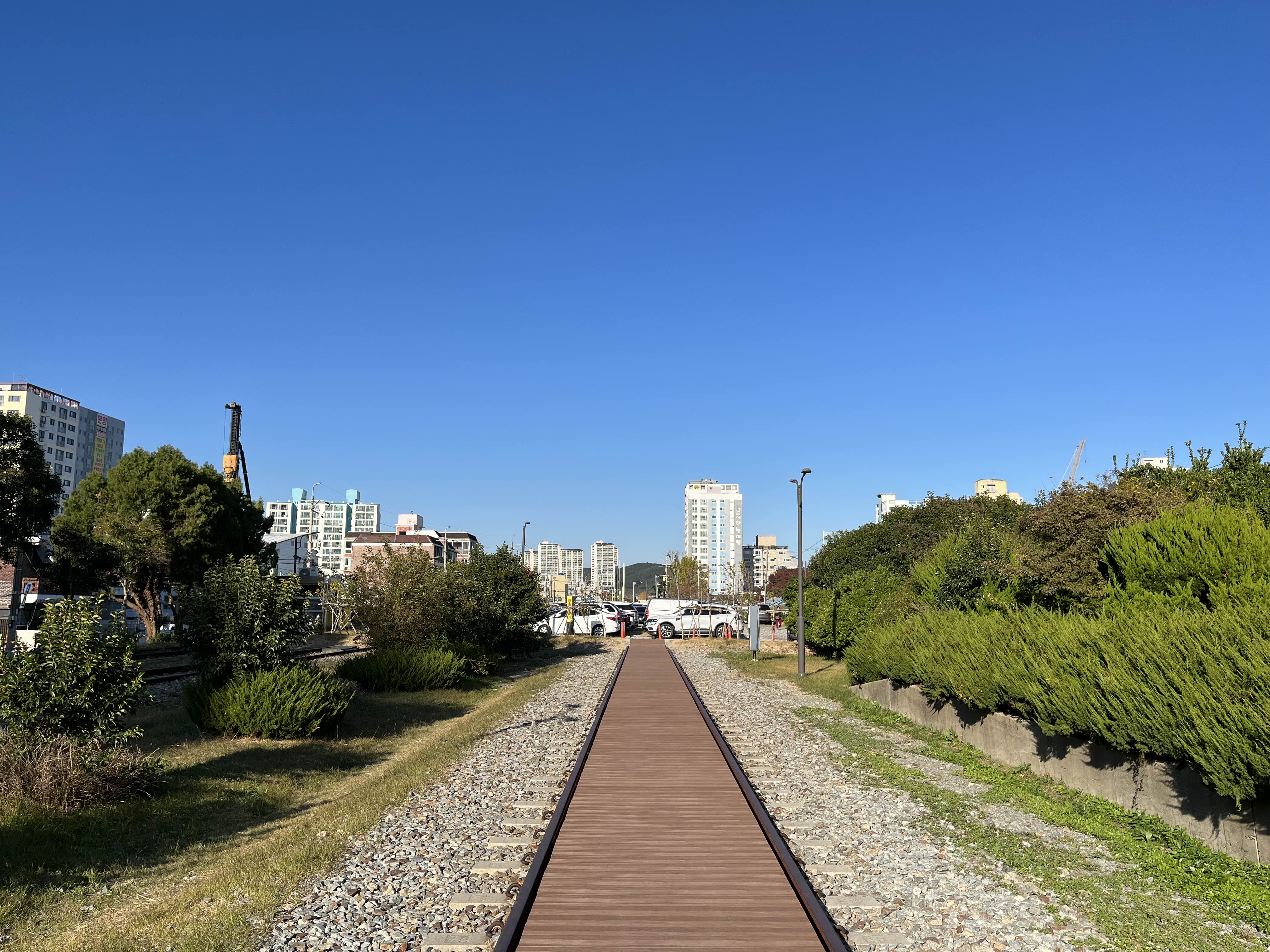송정역에서 바라본 주차장 주차장으로 향할때도 레일이 아쉬움을 잡아준다