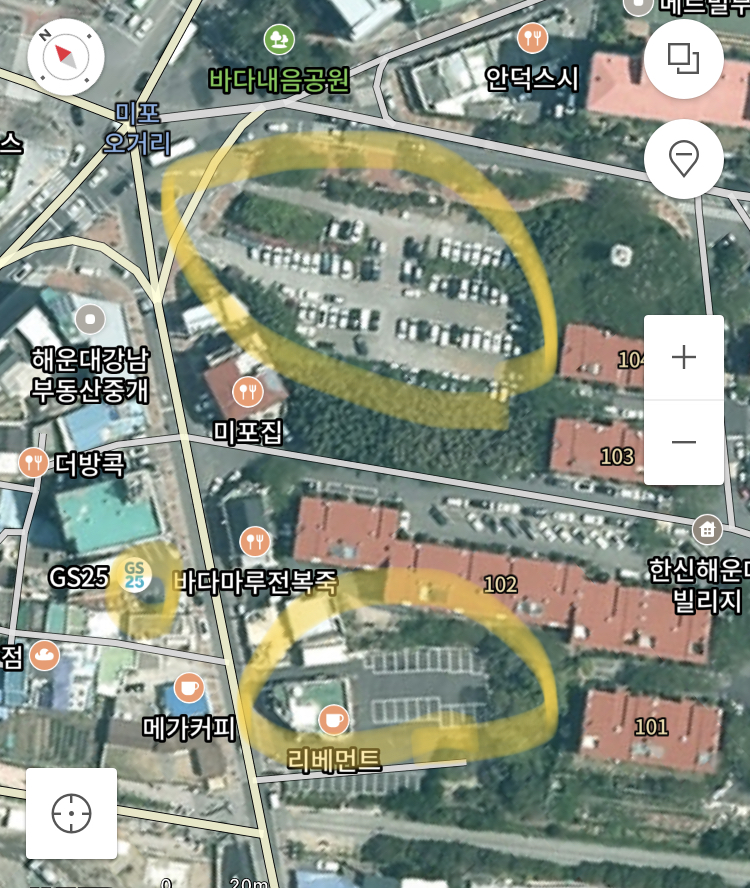 주차장 위치 3point 해운대 입구 미포쪽 주차장은 두군대