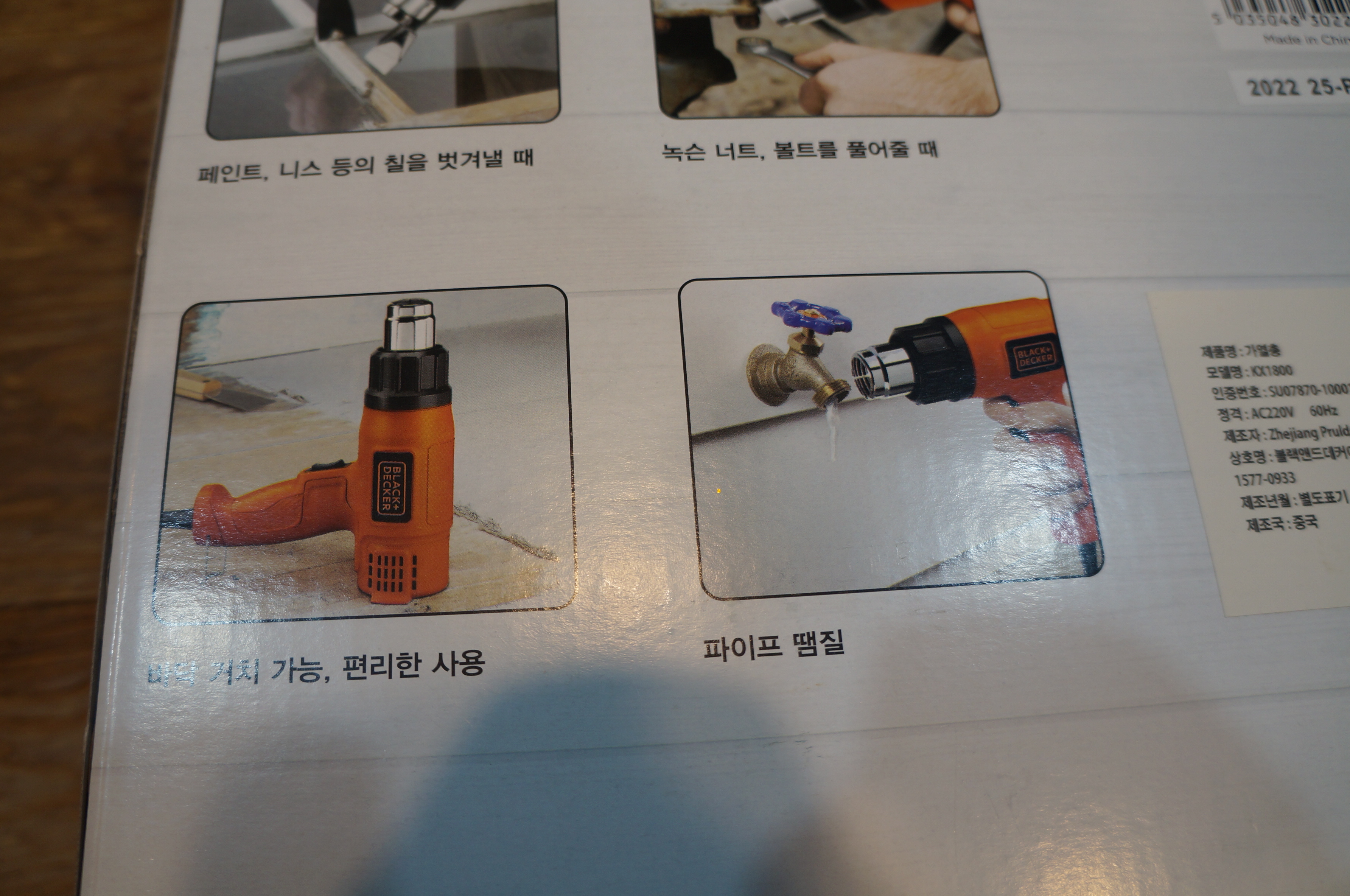 블랙엔데커 히트건 후면 다양하게 사용되는것 같은데 얼어있는 파이프를 녹이는 부분은 맘이 아프네 ㅠ 추운데..