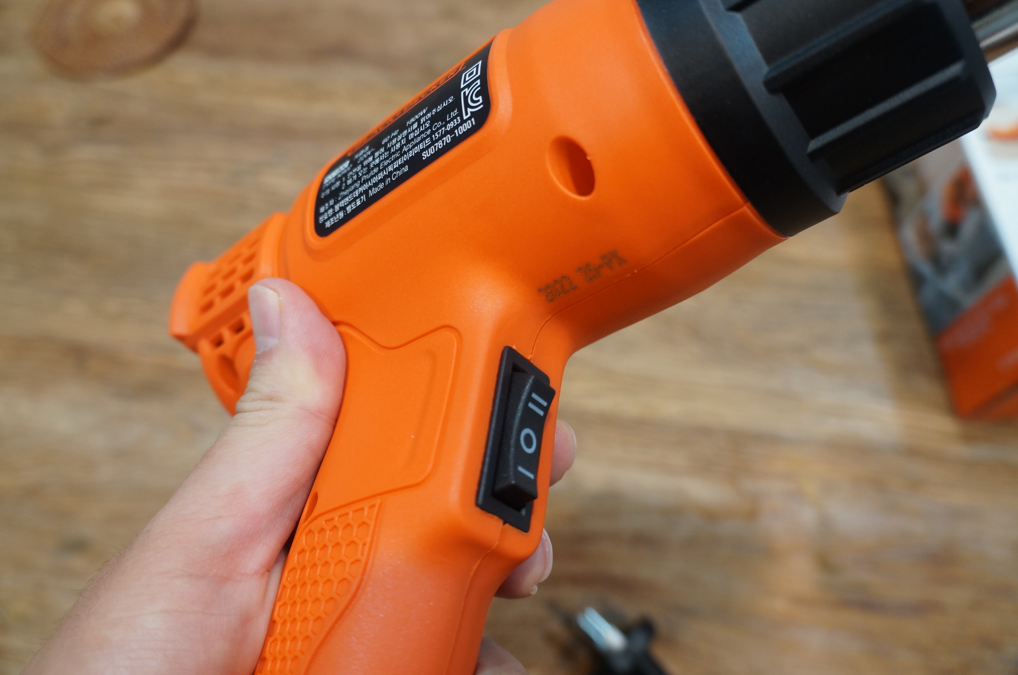 온도 조절기능 2단계 히트건 손잡이가 편하게 생겼다 지난번에는 진짜 드라이어 같이 생긴제품을 써봤다.