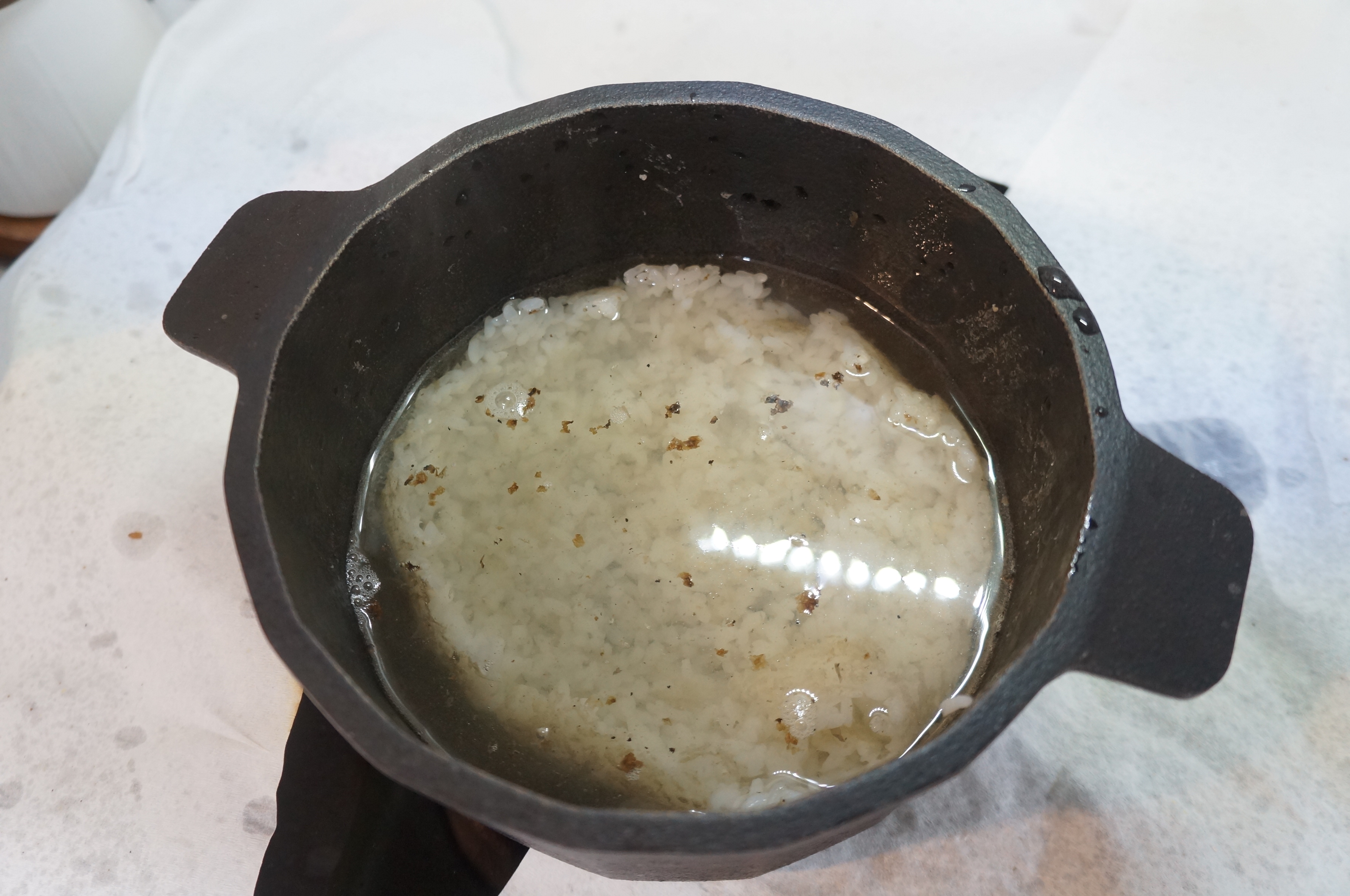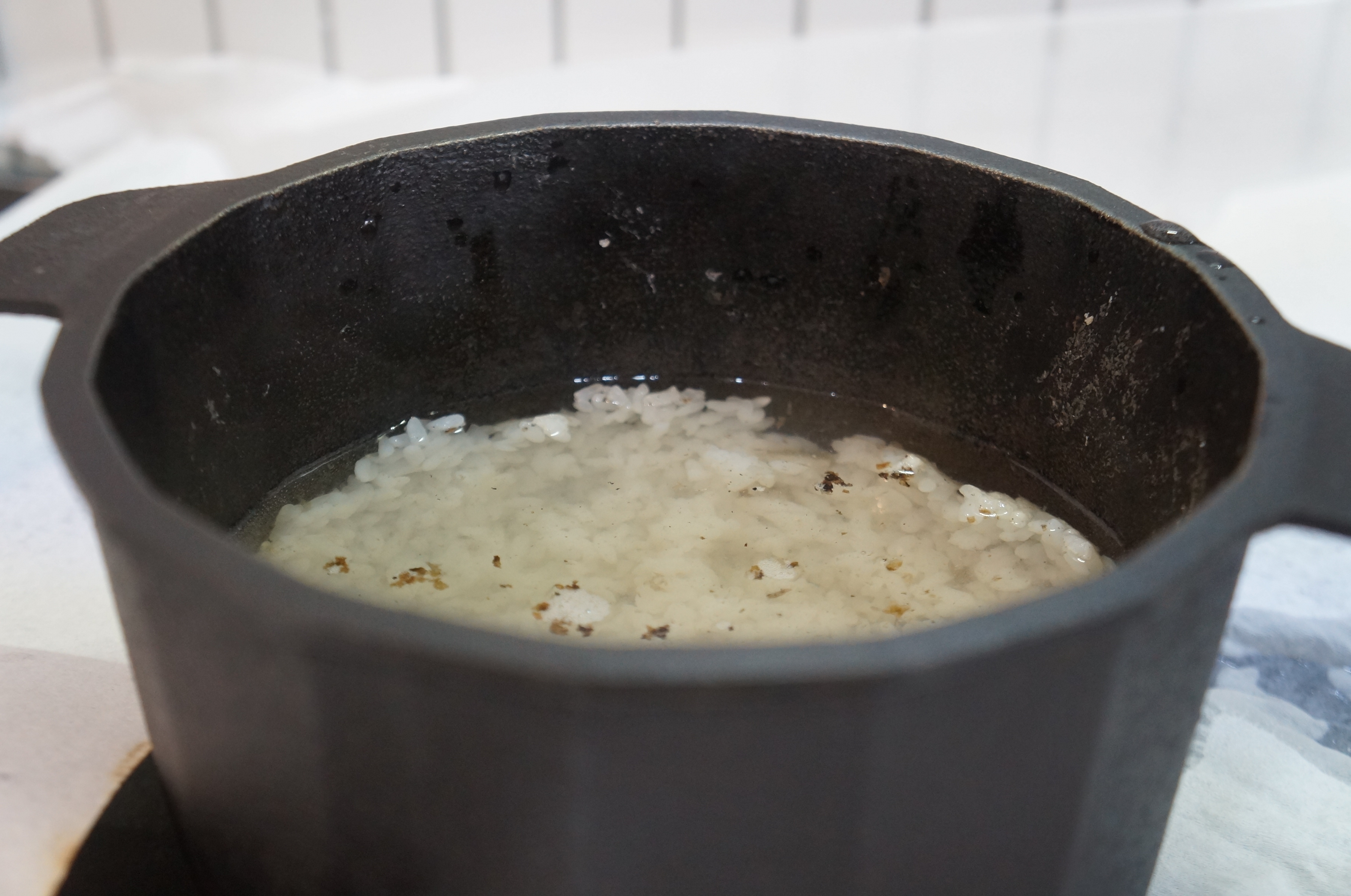 스켑슐트 노테 솥밥준비 이번에는 가능한 누룽지 없이 밥을 만들어 보았다. 기존의 레시피와는 달리 저어주면서 강불시간을 줄이고, 약불시간을 오래 했다.