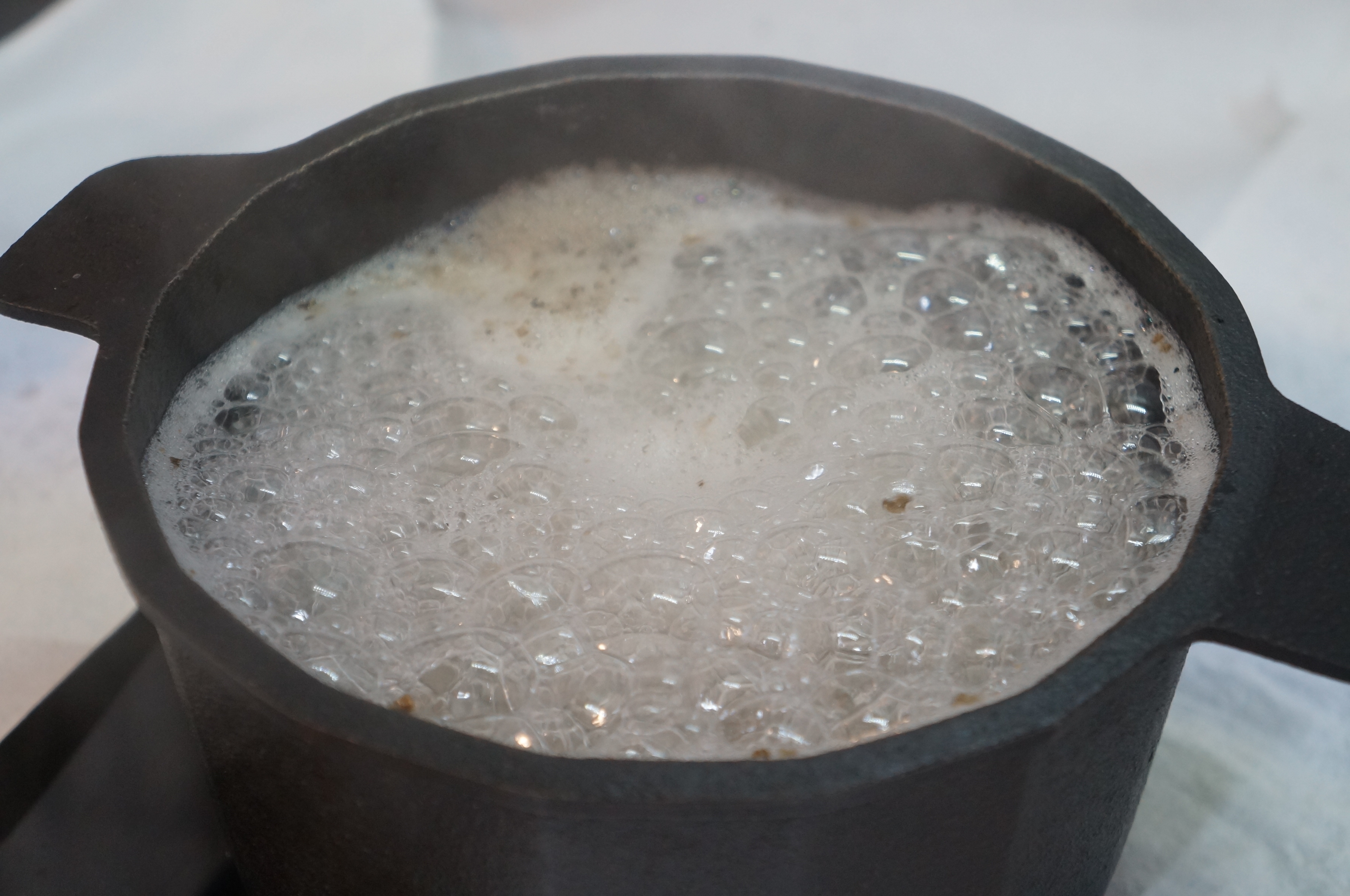 500ml물을 부어준다 뜨거워진 솥에 물을 부어준다