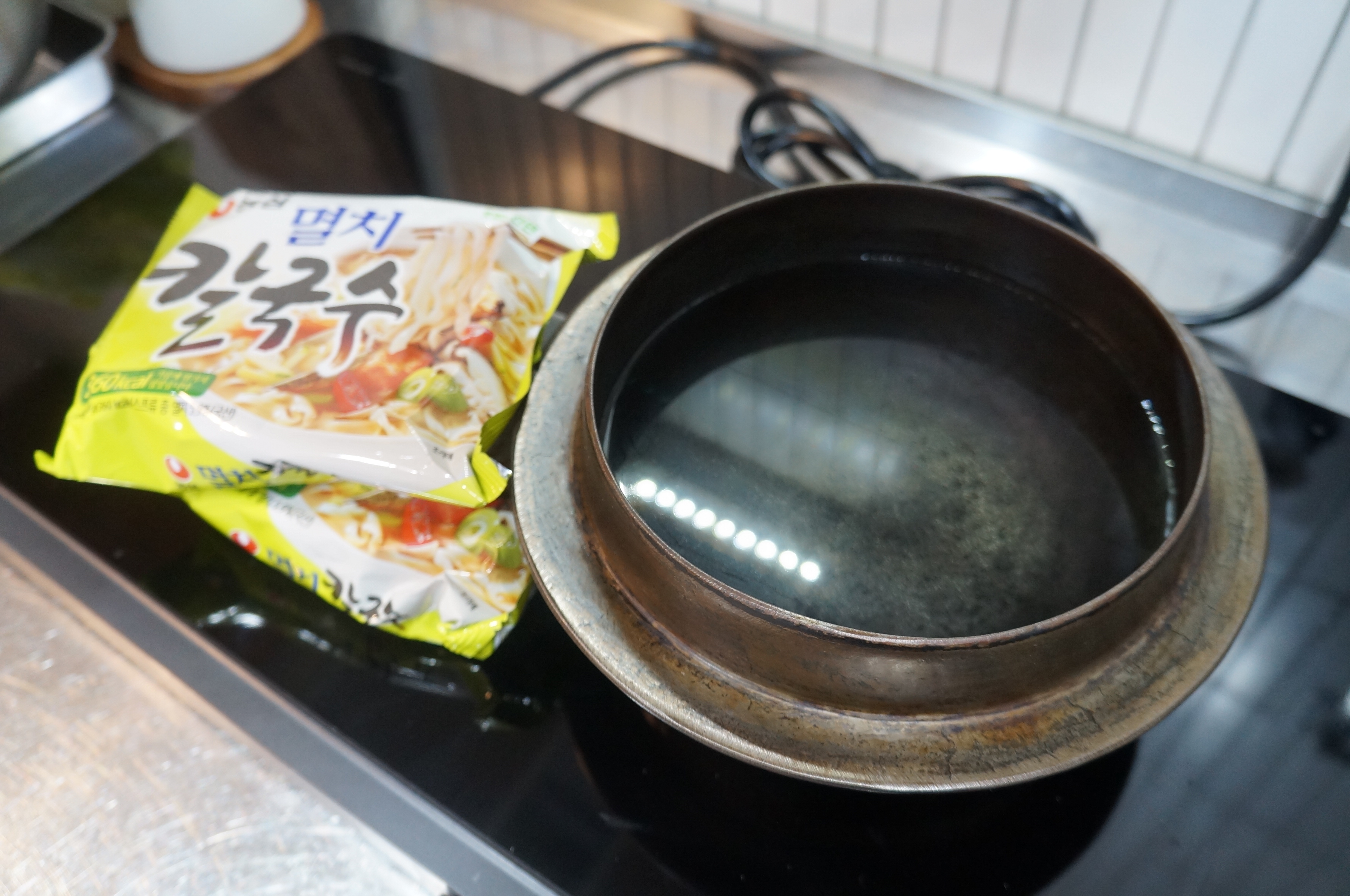 잉꼬솥 멸치국수 칼국수는 기본 라면과 동일하게 먹는 방식으로 끓여주면 된다.