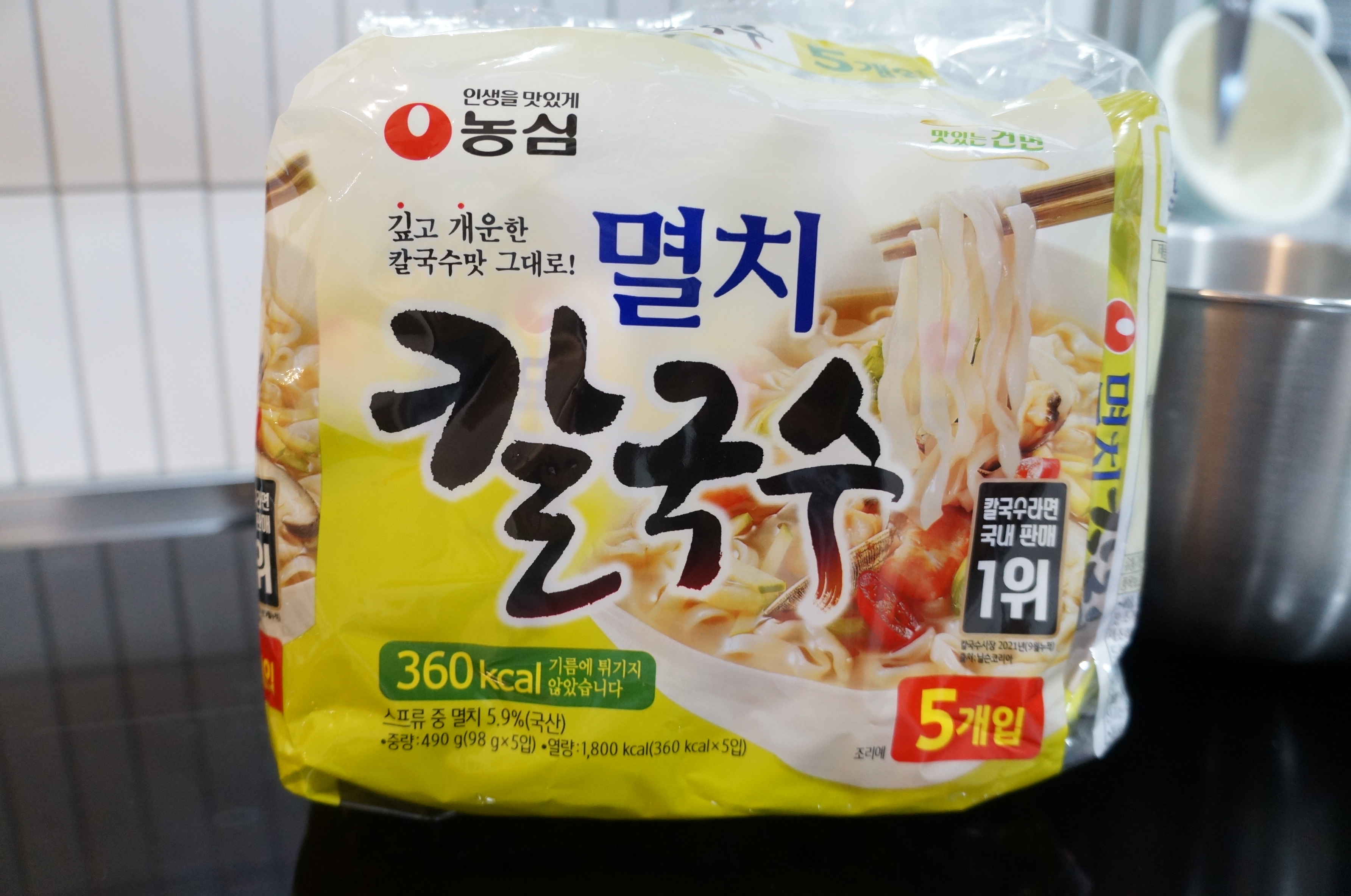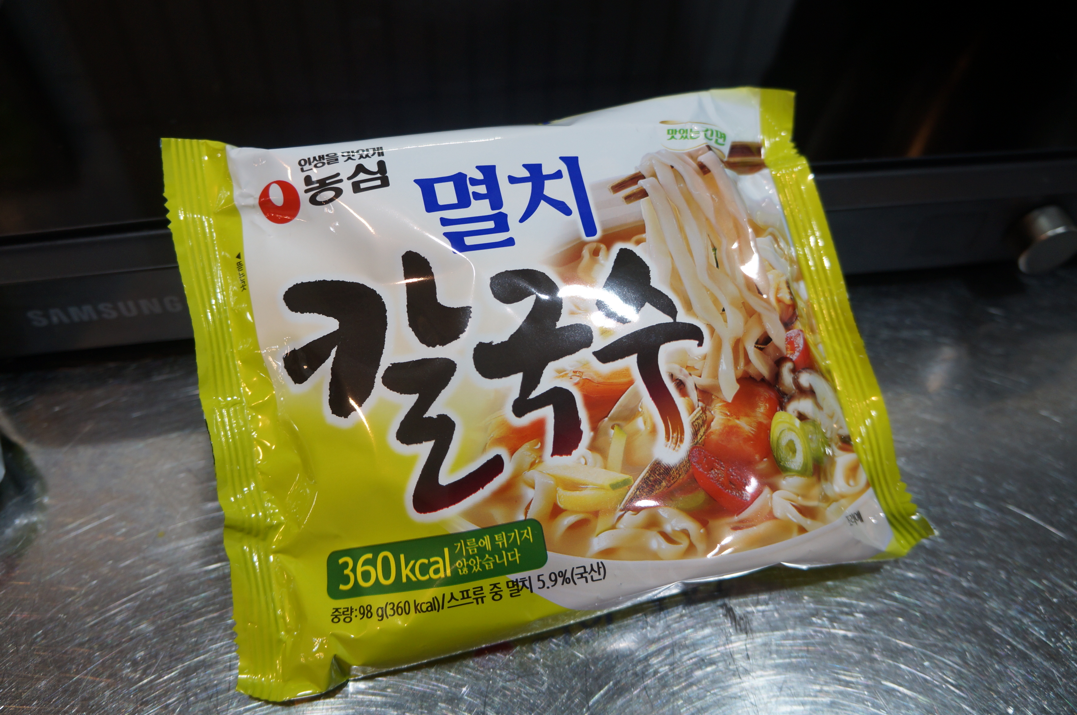 멸치 칼국수로 아주 육수가 진하다. 일반라면과는 확실히 다르다!!