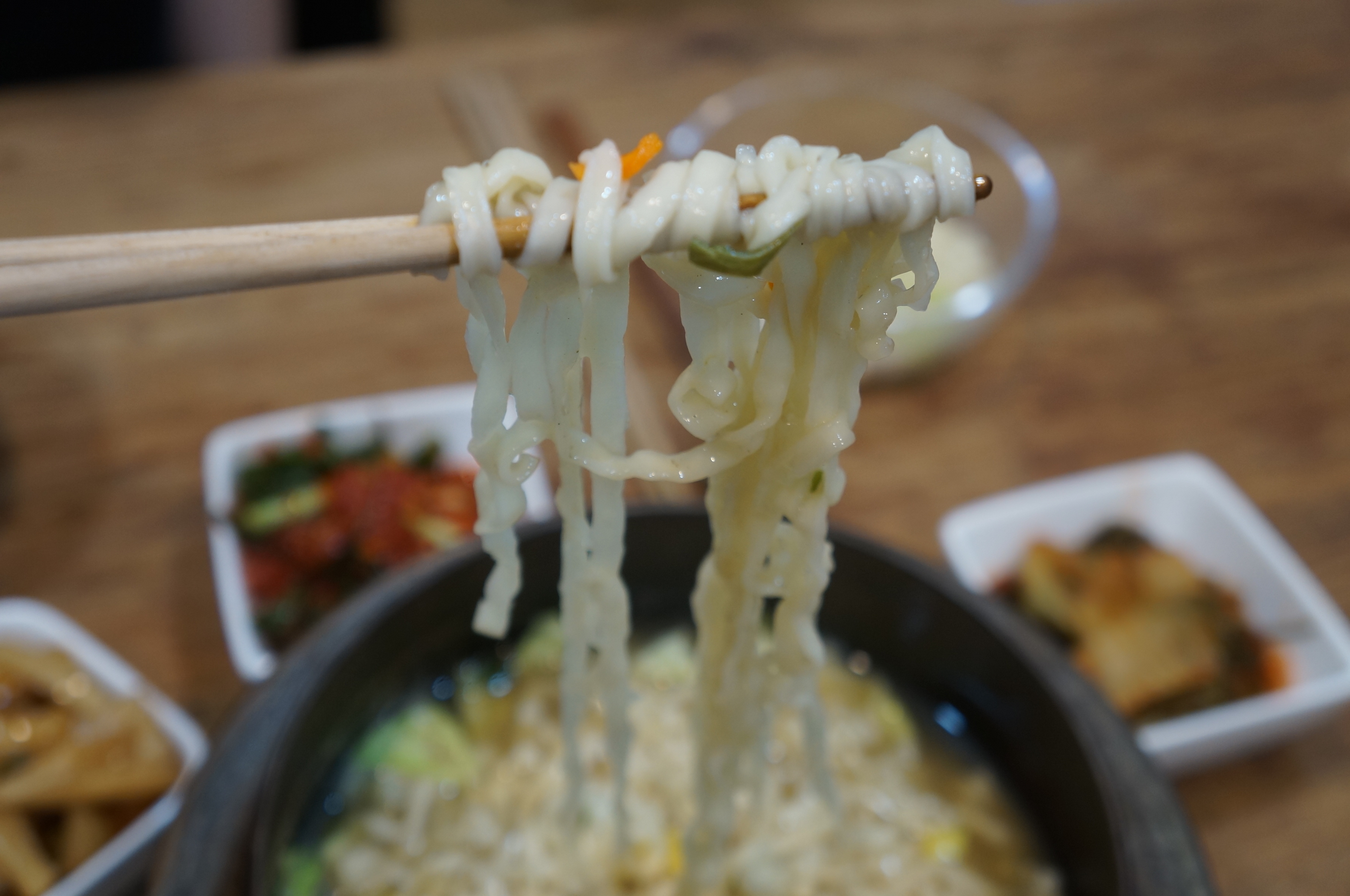 농심 멸치 칼국수 면빨 면빨이 두툼하면서도 식감이 좋다. 면빨이 아주 졸깃하면서 멸치 육수가 잘 베어 있다!!
