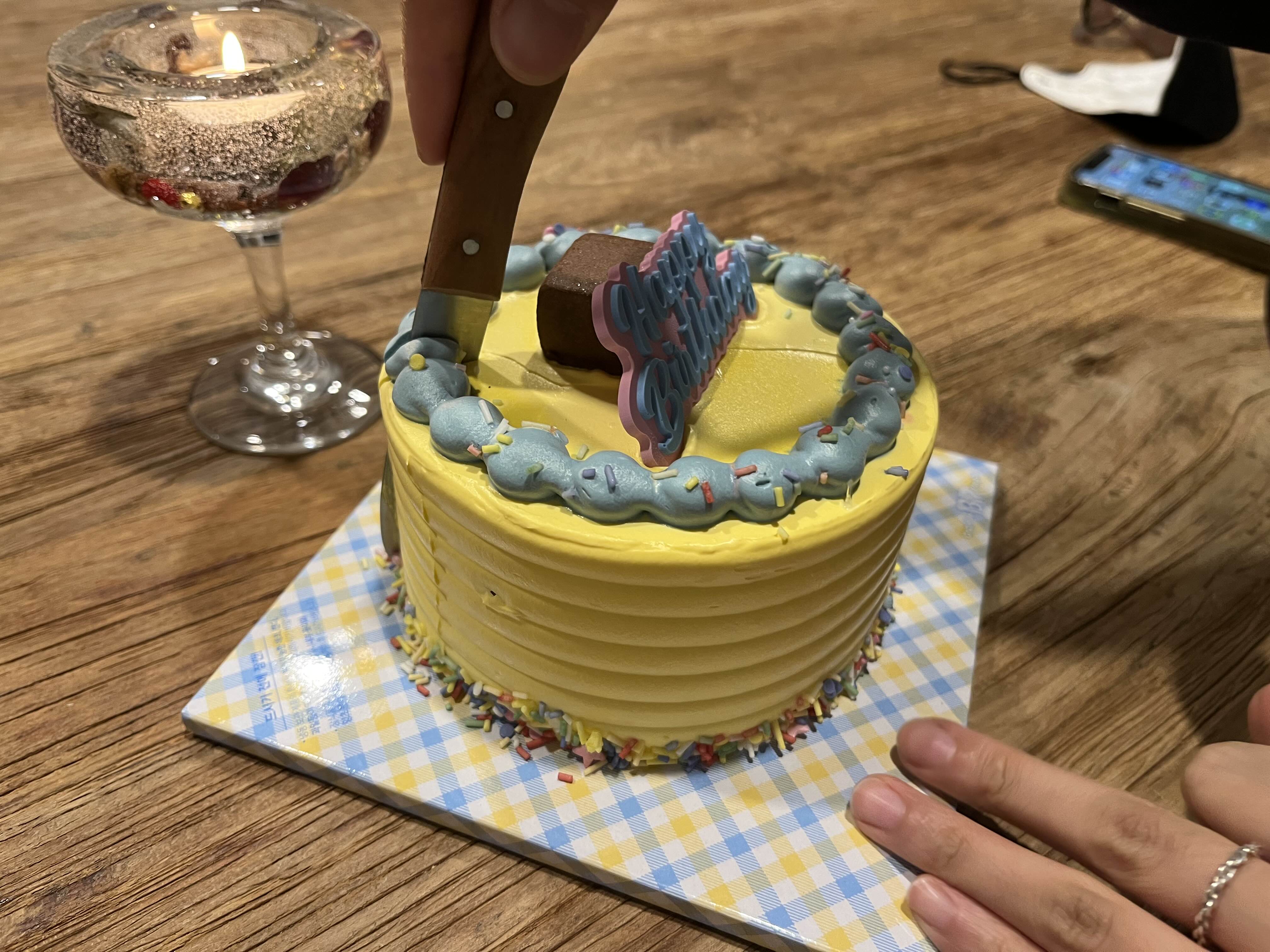 미니해피버스데이 케이크 배라플로우 종이 커버를 벗기면 이름이 나온다