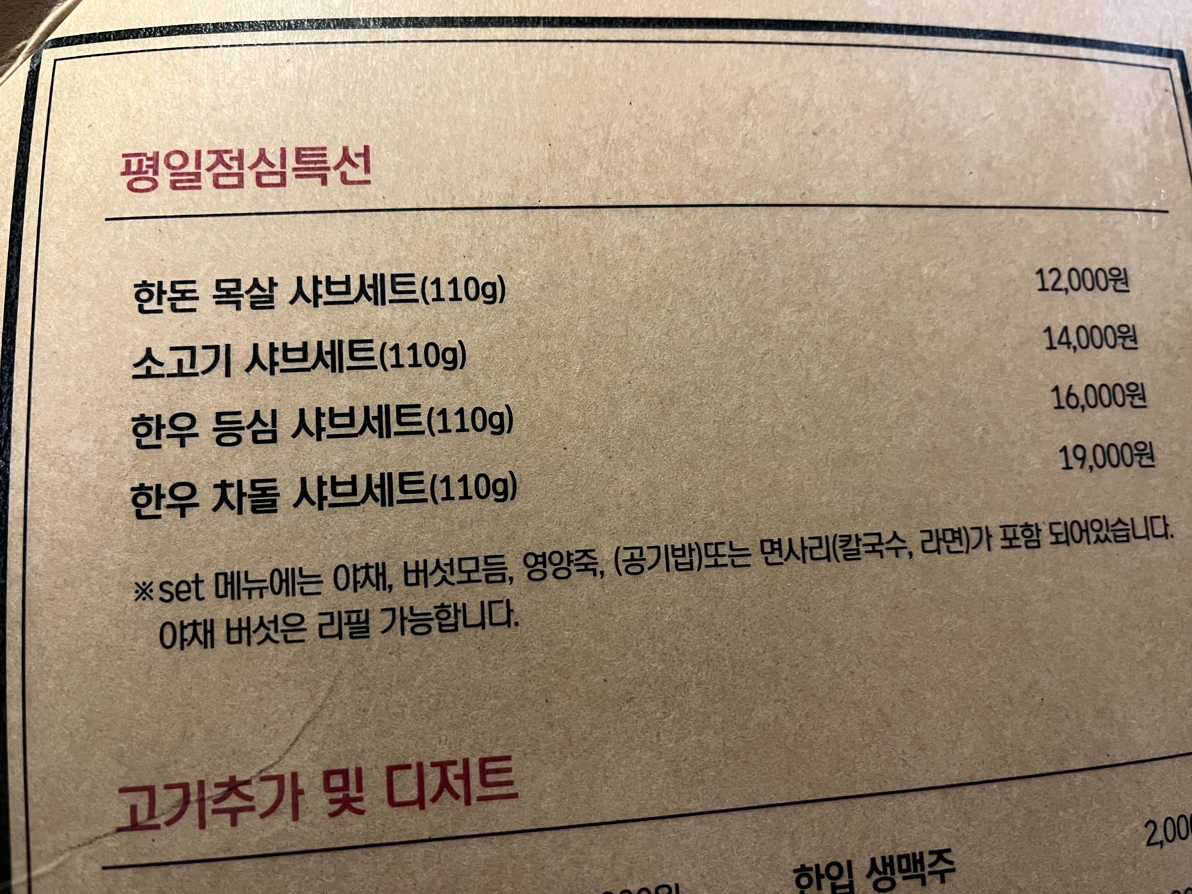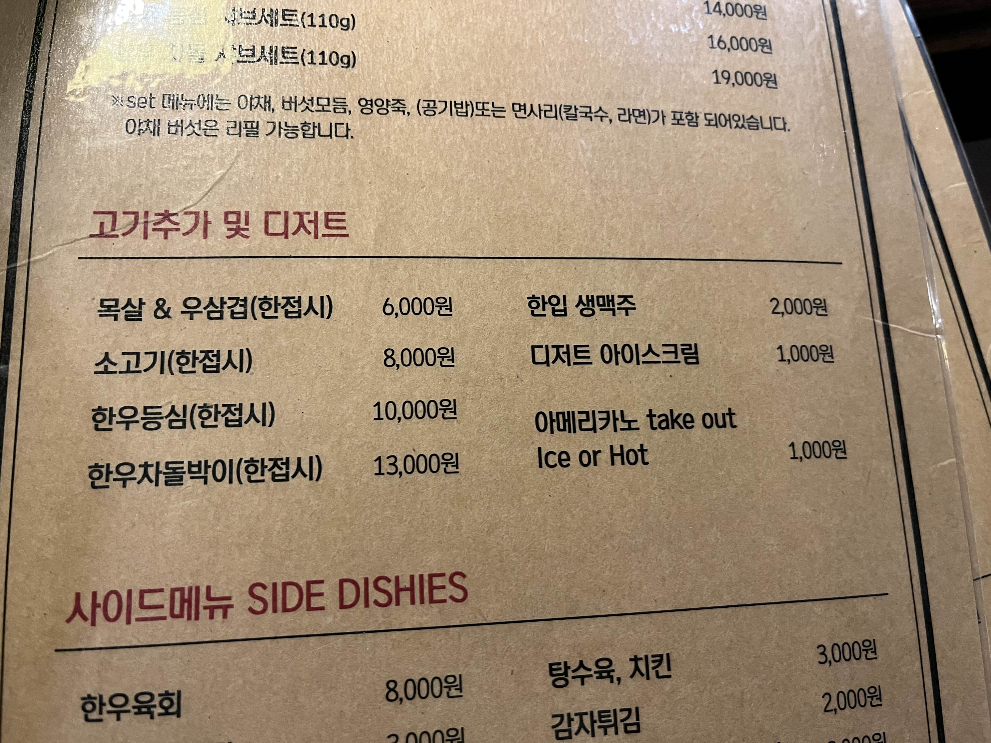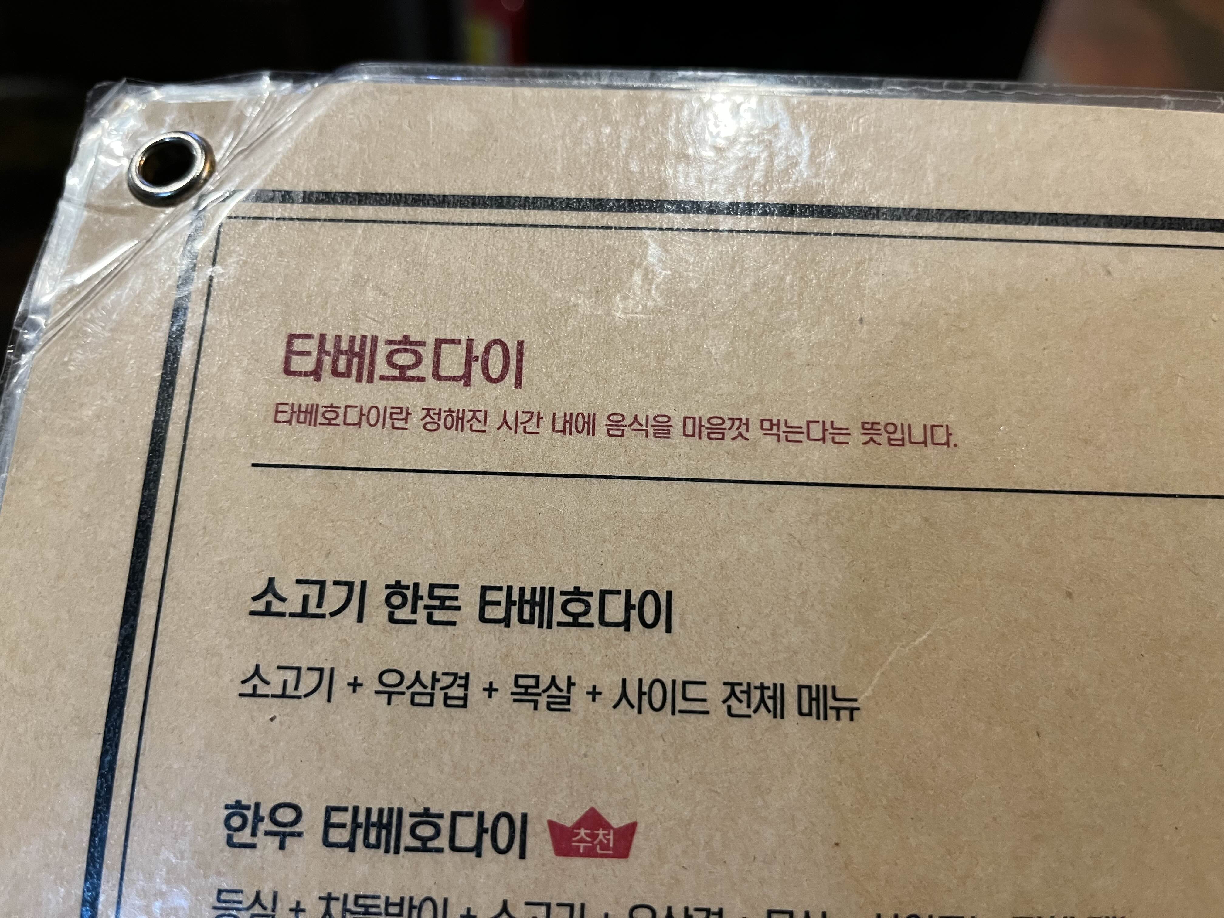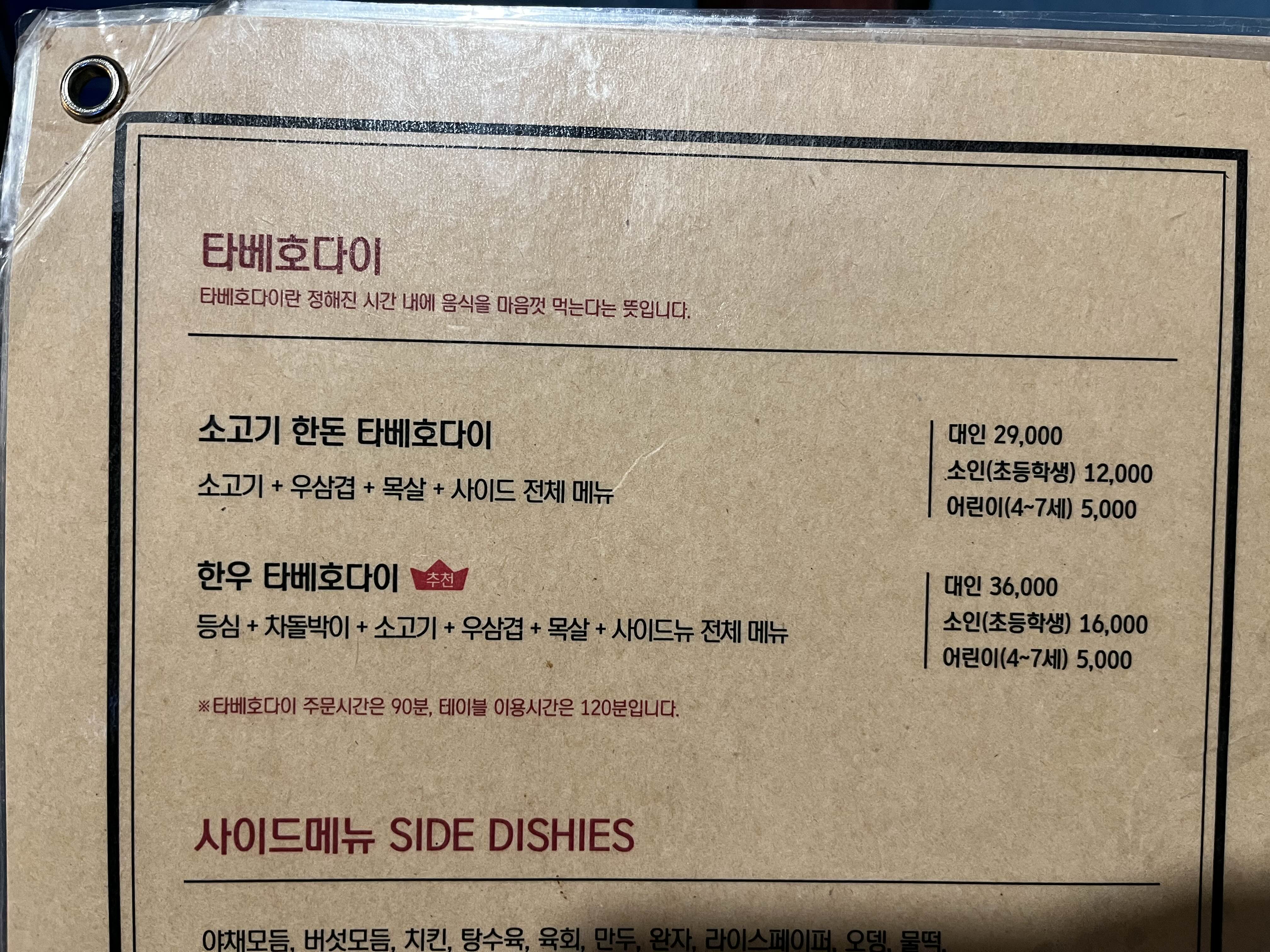 사마정 메뉴판 - 타베호다이 추천 이왕먹눈거 한우 타베호다이!