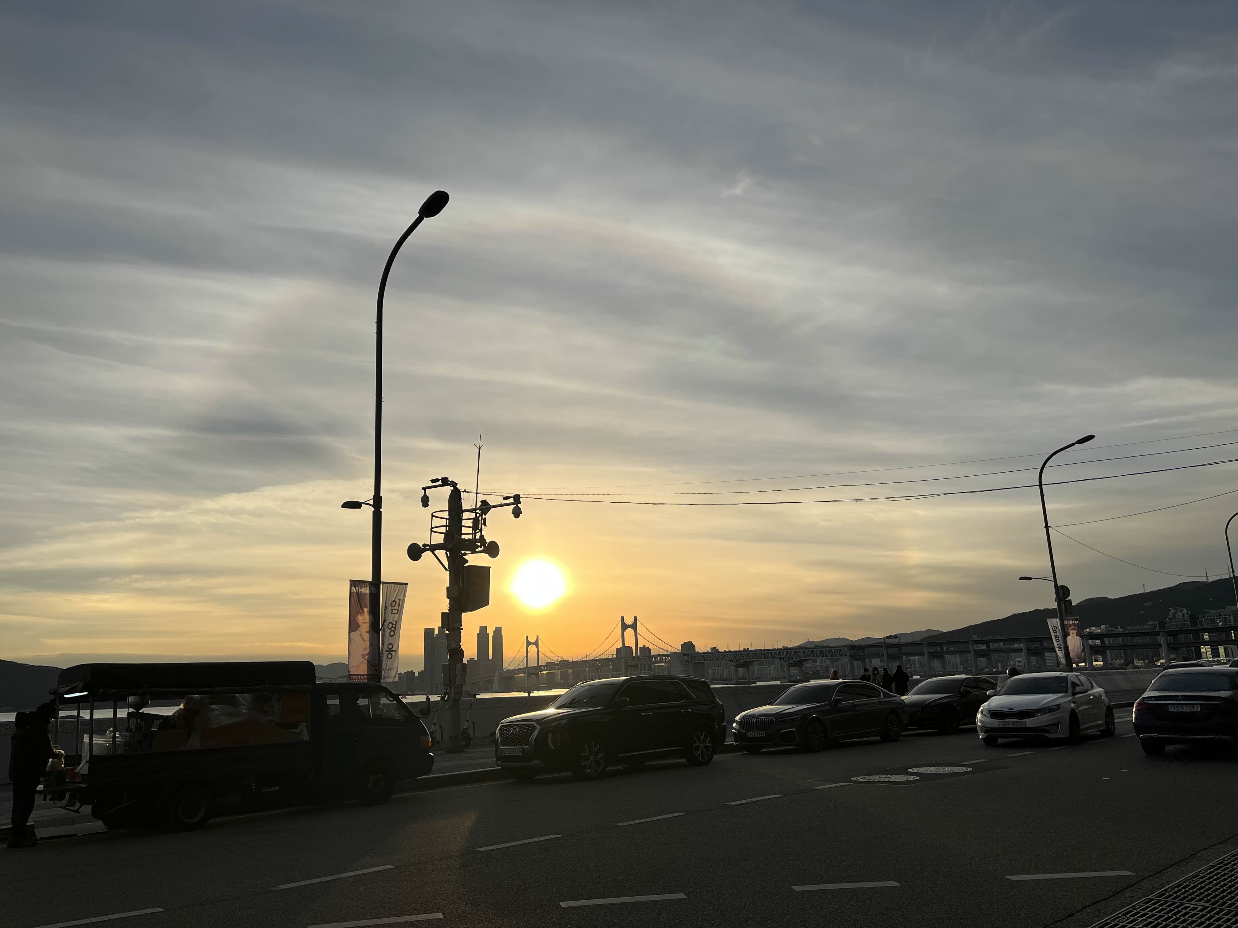 해가 넘어가는 가장 멋진 타이밍의 광안대교를 보면서