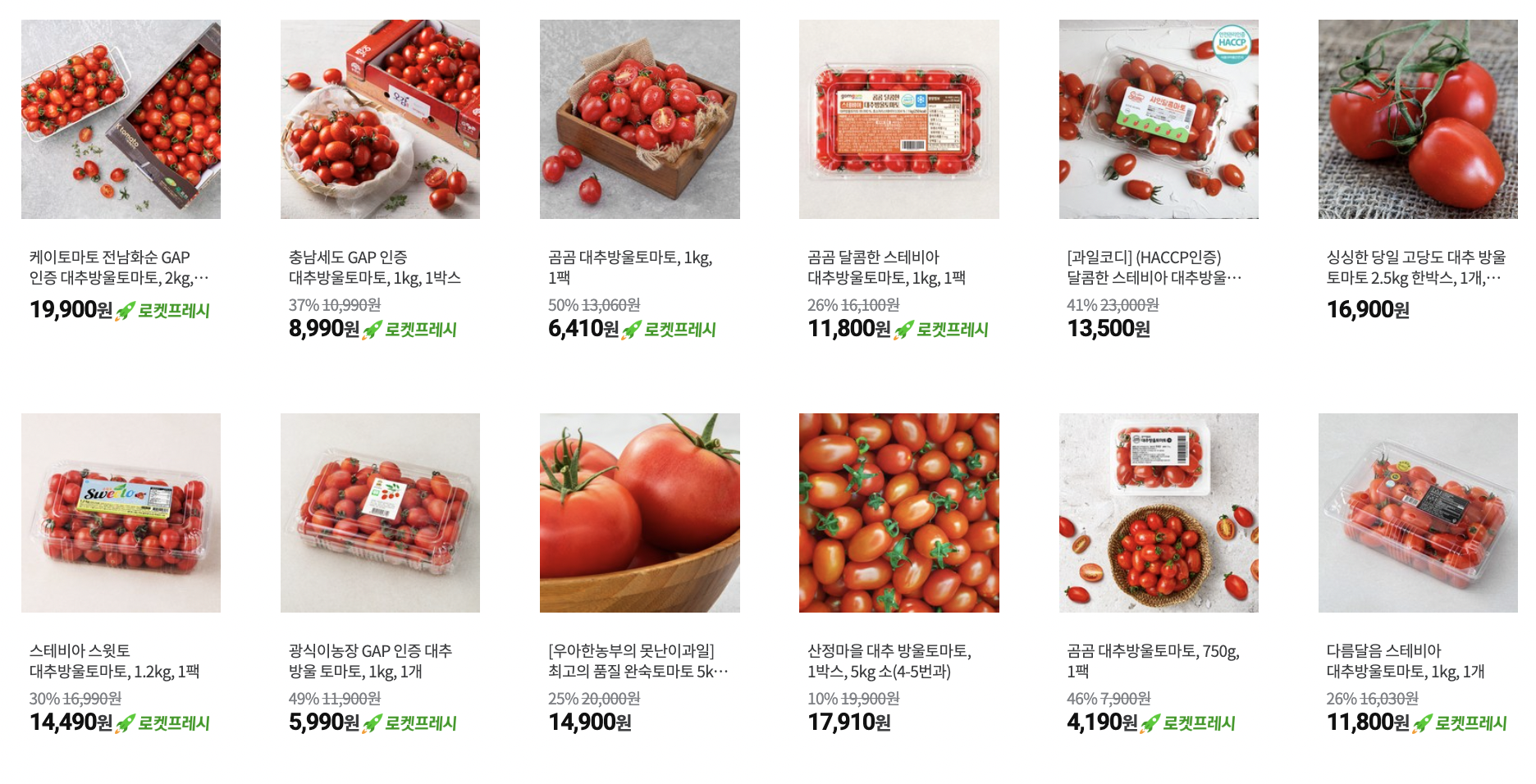 쿠팡판매 일등 스테비아 대추방울토마토 로켓프레쉬 최저가는 여기로