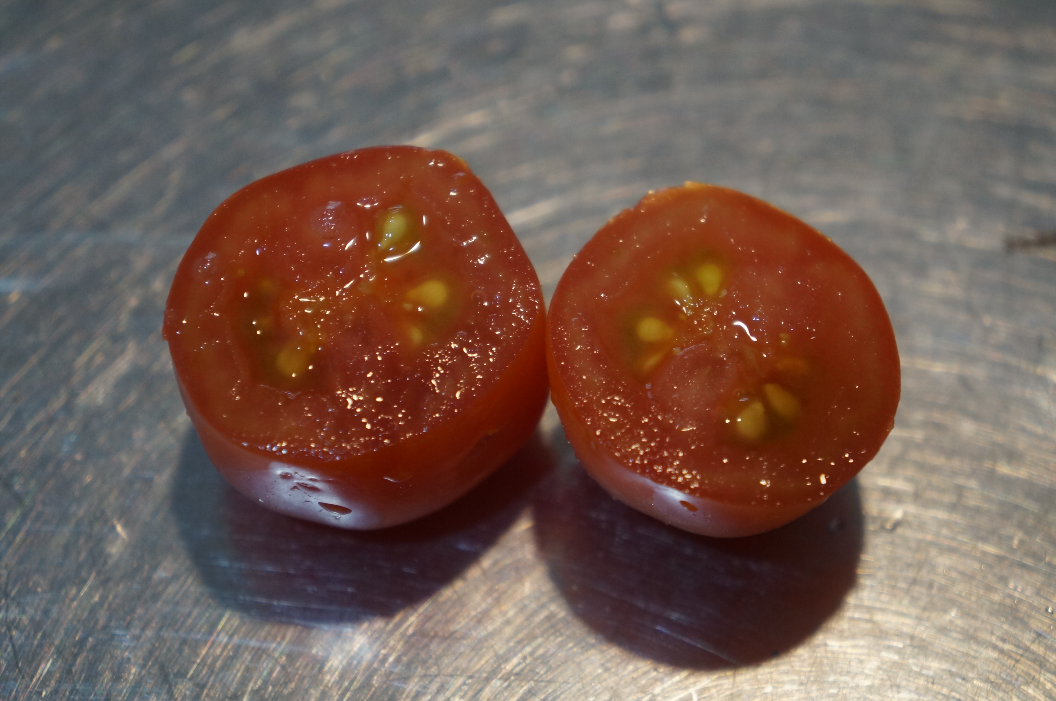 이렇게 반을 스테비아 방울토마토를 반을 싹둑 자르면 단면이 알차다!!