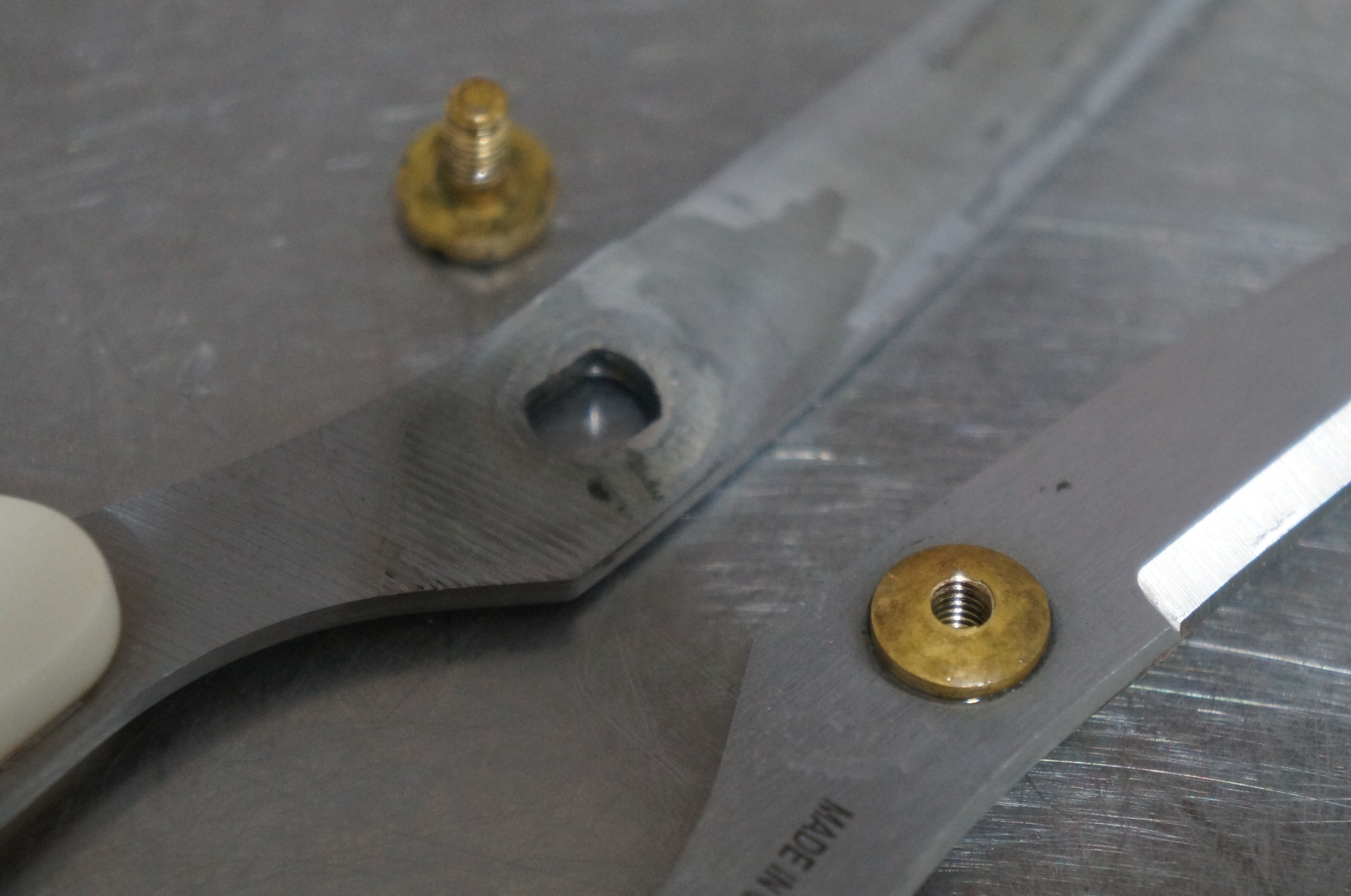 가위날 갈아야 하는 부분 아주 면적이 좁고 바로 가위끼리 맞닿는 부분을 갈아주면 된다