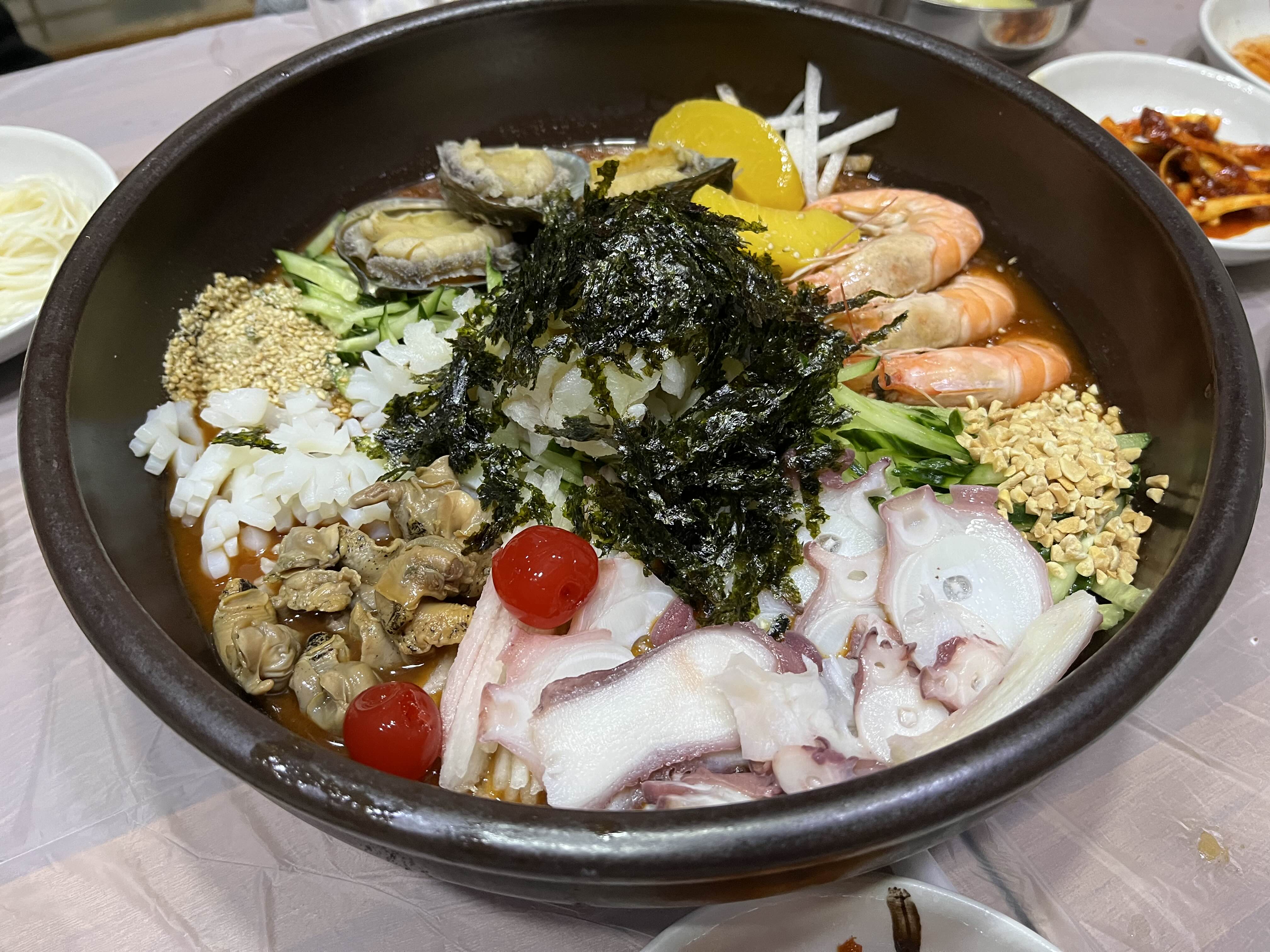 물회가 아주 크고 다양한 재료가 들어있다!