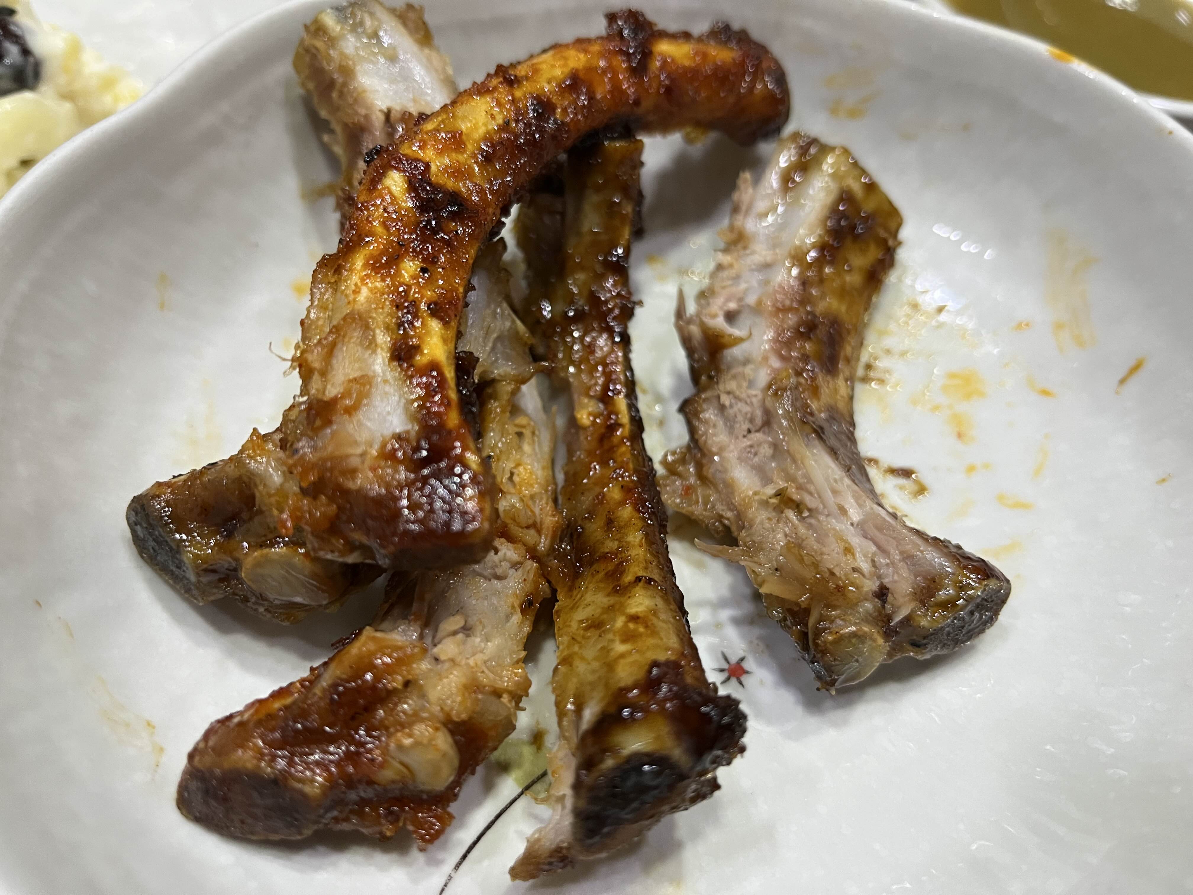 쪽갈비 뼈. 양념은 확실히 붉은색을 띤다 가잠물회 등뼈찜