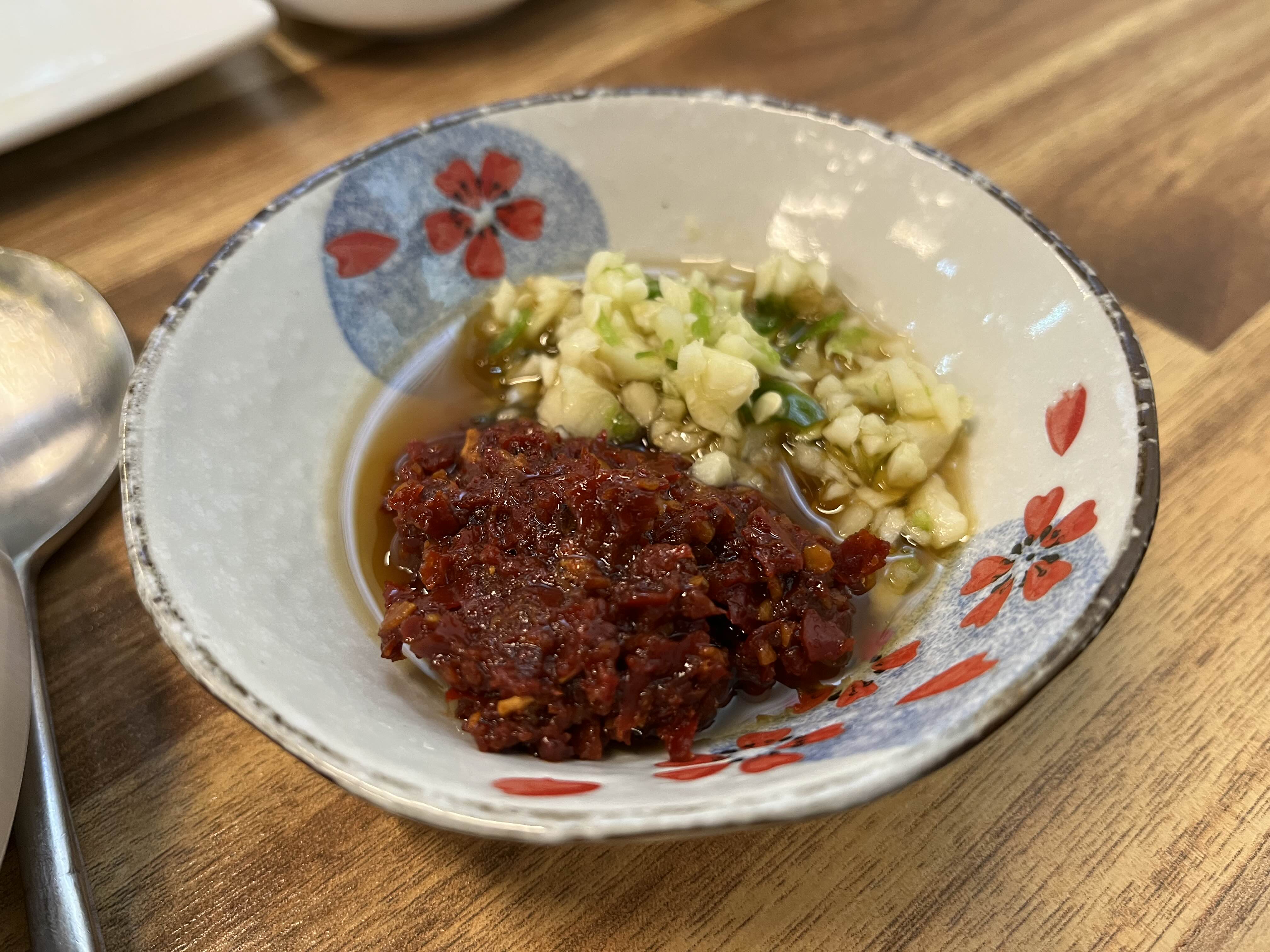 육회한 생고기 양념장 양념장을 좀 배웠으면 하는데.. 하 알려주실려나 담에 갈때는 꼭 물어봐야지 ㅠ