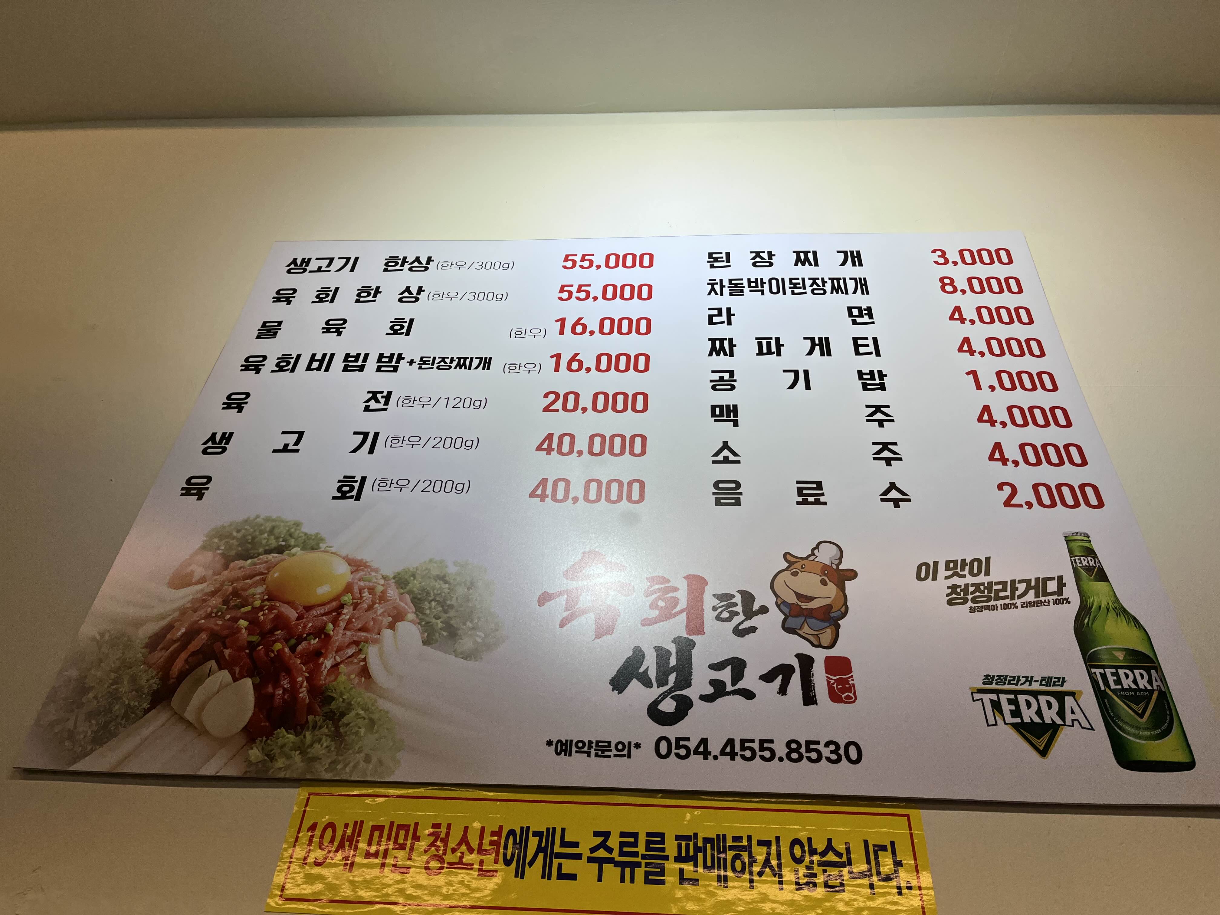 육회한생고기 메뉴판 다음엔 육회도 먹고 육전도 기대가 된다!