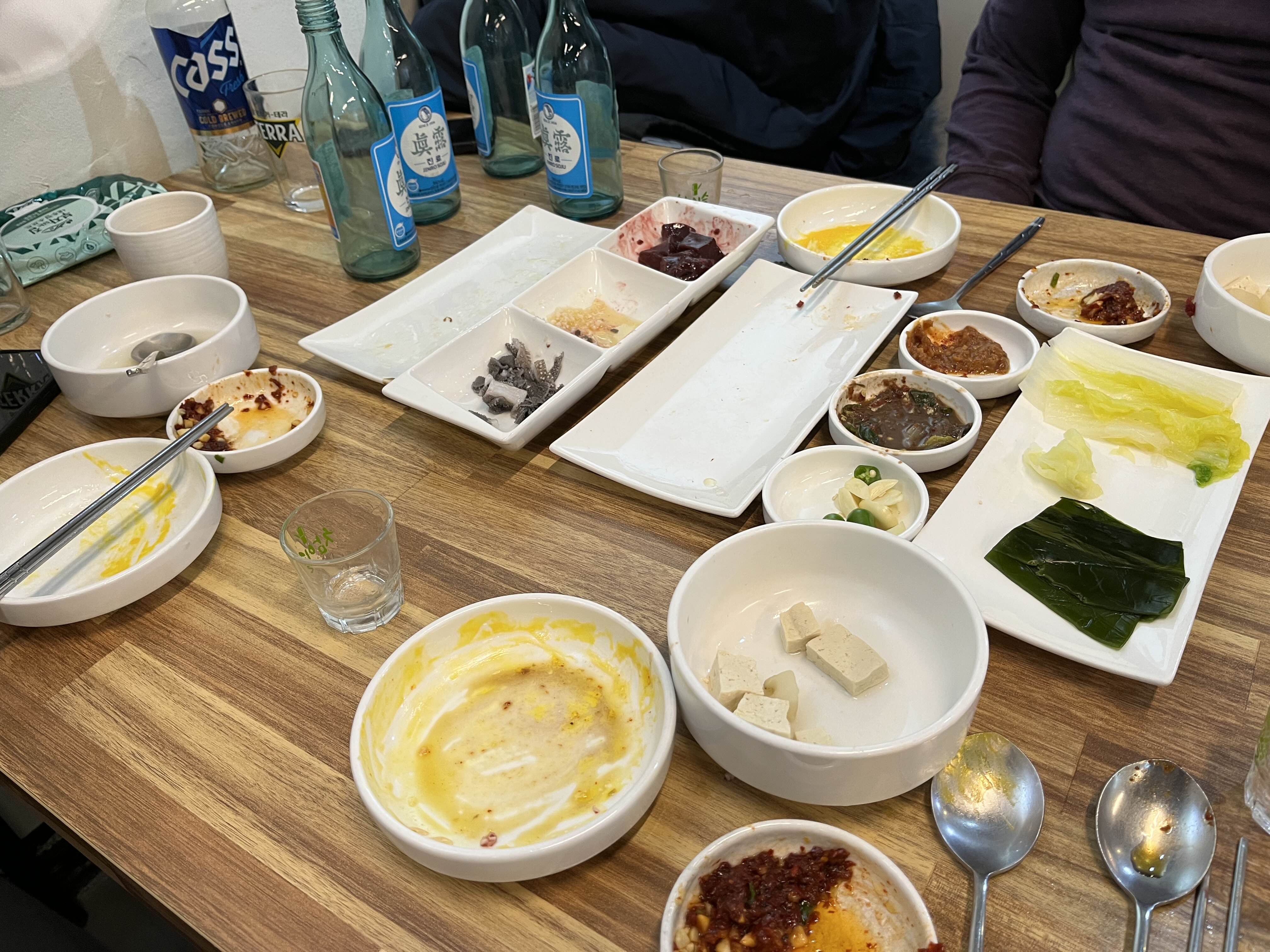 생간 천엽 리필!! 늘어가는 병들 ㅋㅋ 텅텅빈 접시들 추가를 하려다 급히 2차로 고고싱! 조금 징그러운 천엽과 생간을 남겨서 너무 아쉽다.. ㅠ