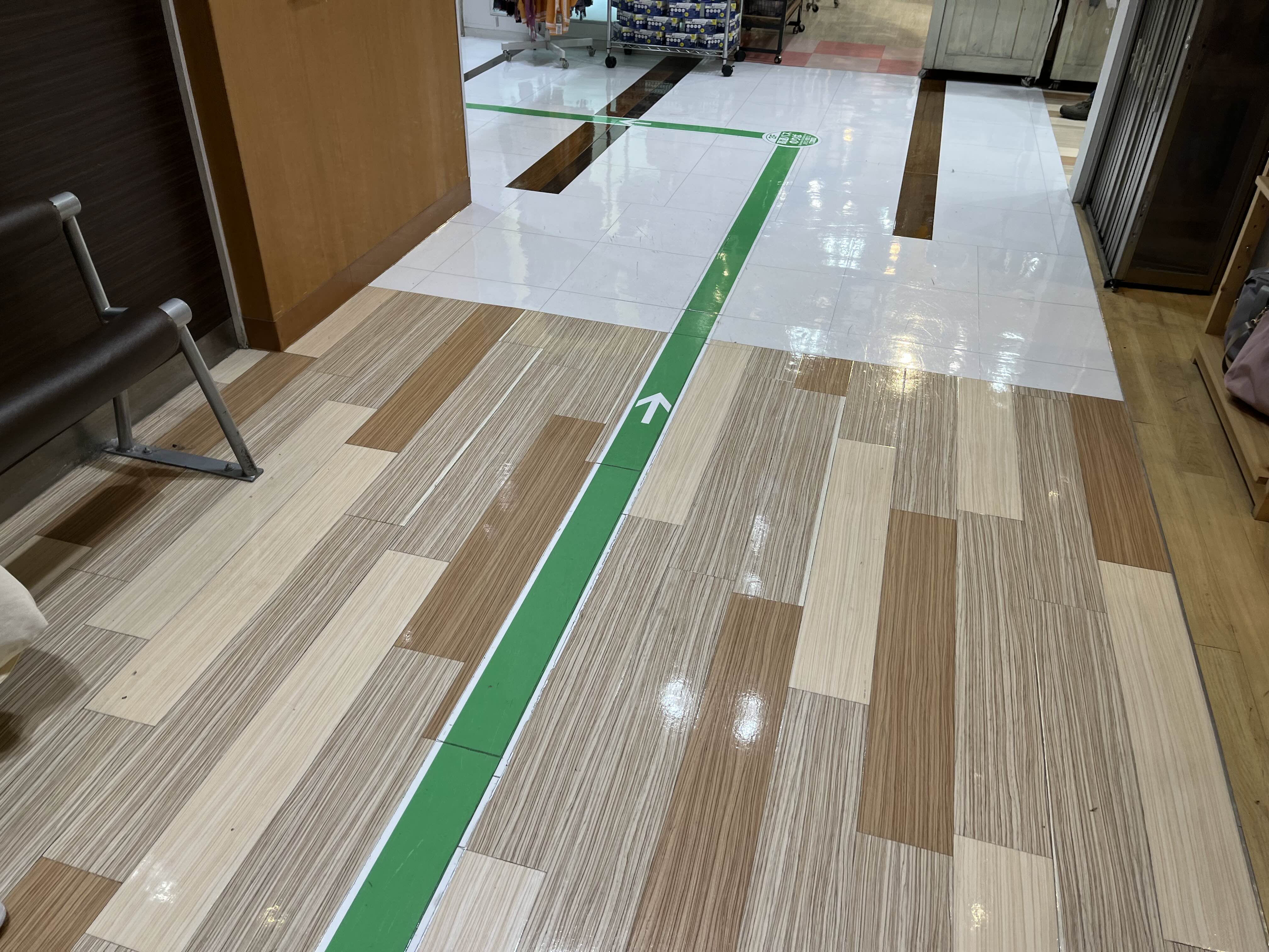 이곳으로 갈수 없다!!! 입구에 딱보이는 매그도나르도 햄버거향에 취해서 정신이 없겠지만 ㅋ 아래바닥을 잘보고 초록색선을 따라가자!