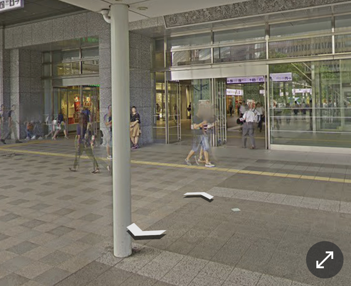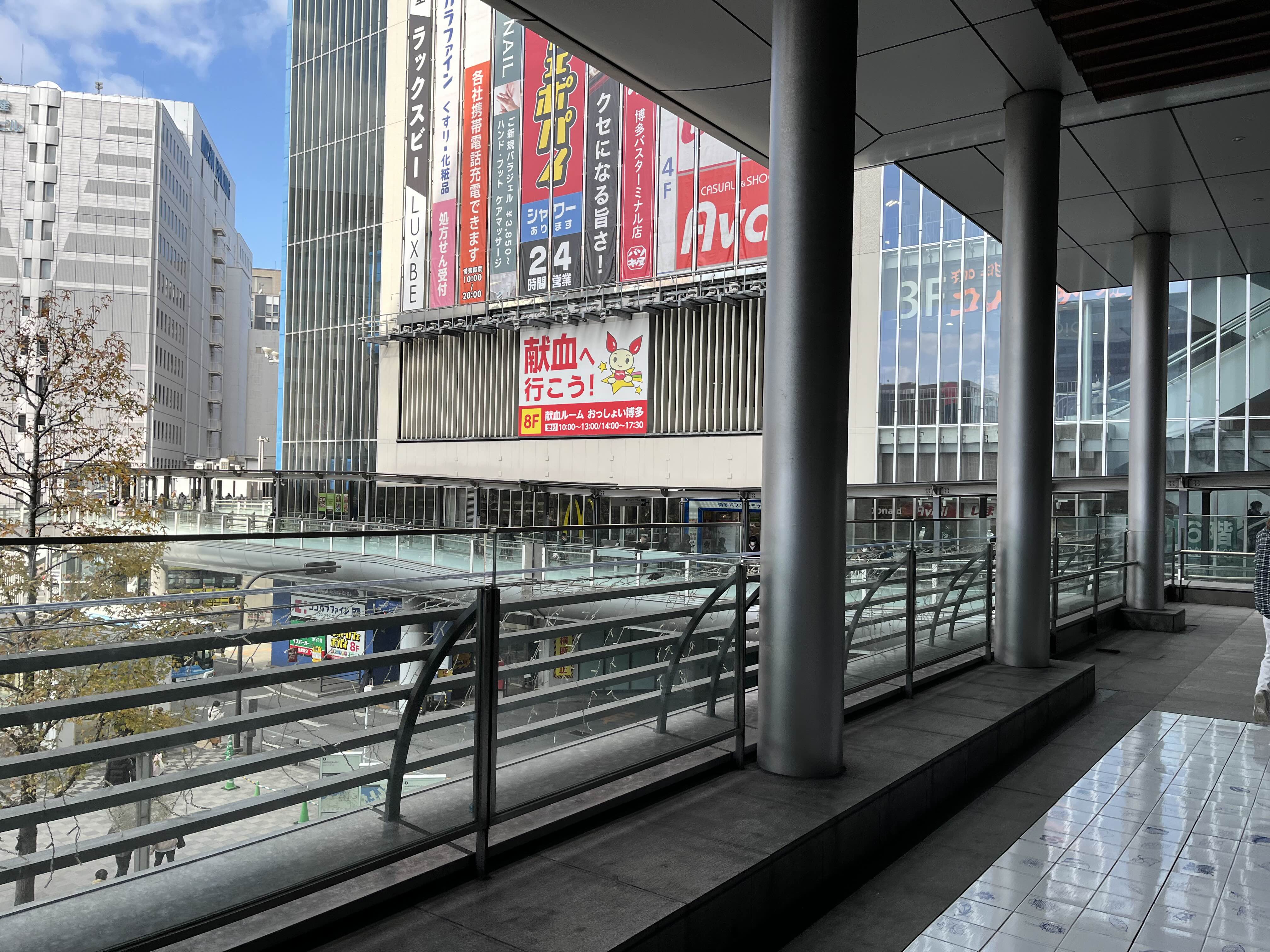 하카타 버스터미널 로 이어지는 구름다리 하카타역과 하카타버스터미날 건물을 이어주는 구름다리를 지나서 좌회전을 하면 건물입구가 보인다.