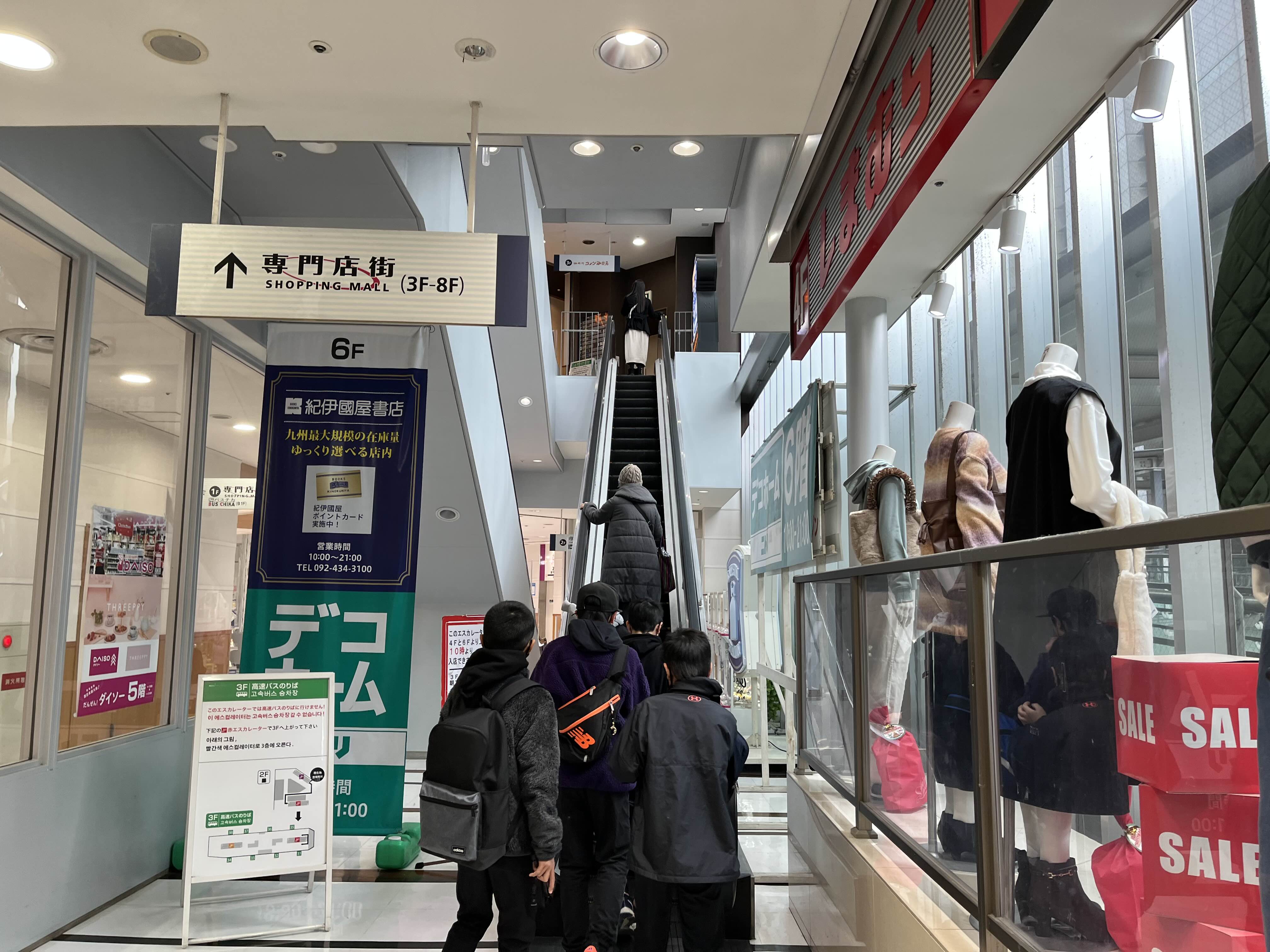 이제 하타카 버스터미널 건물로 겨우 왔으니 3층을 가야하는데… 들어오자 마자 헷갈리기 쉽도록 바로 에스컬레이터가 있다!! 감사하게도 이곳은 아니라고 설명이 되어있다!