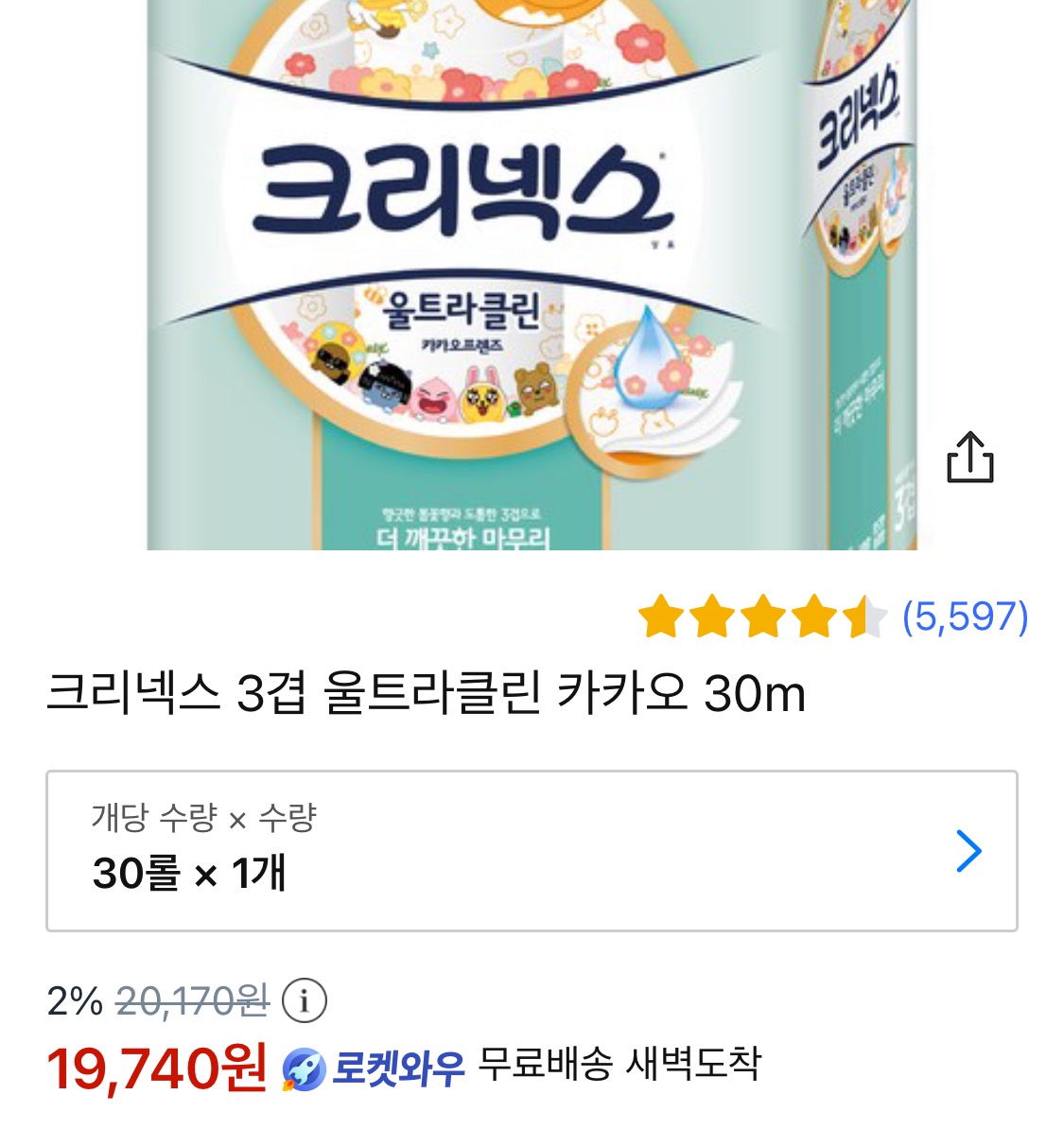 크리넥스 카카오 프린팅 휴지는 여기로크리넥스 3겹 울트라클린 카카오 30m