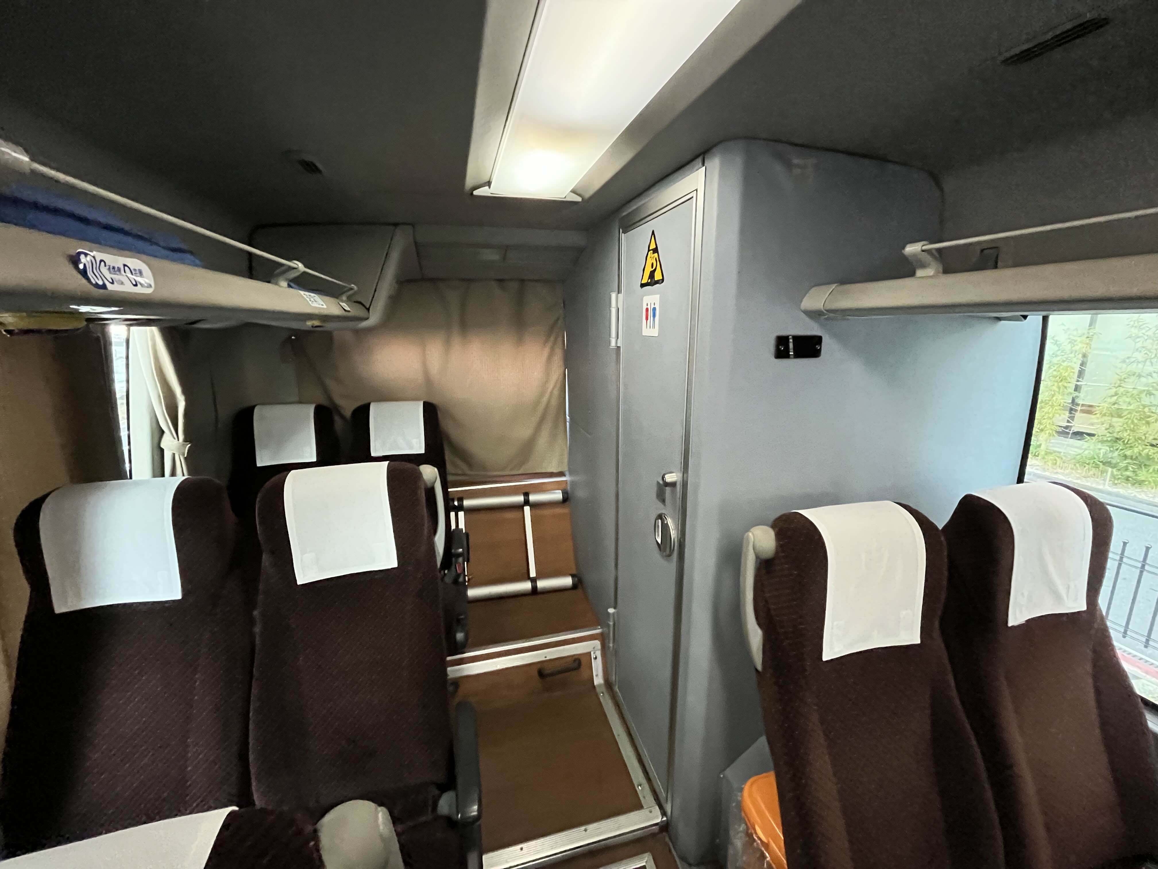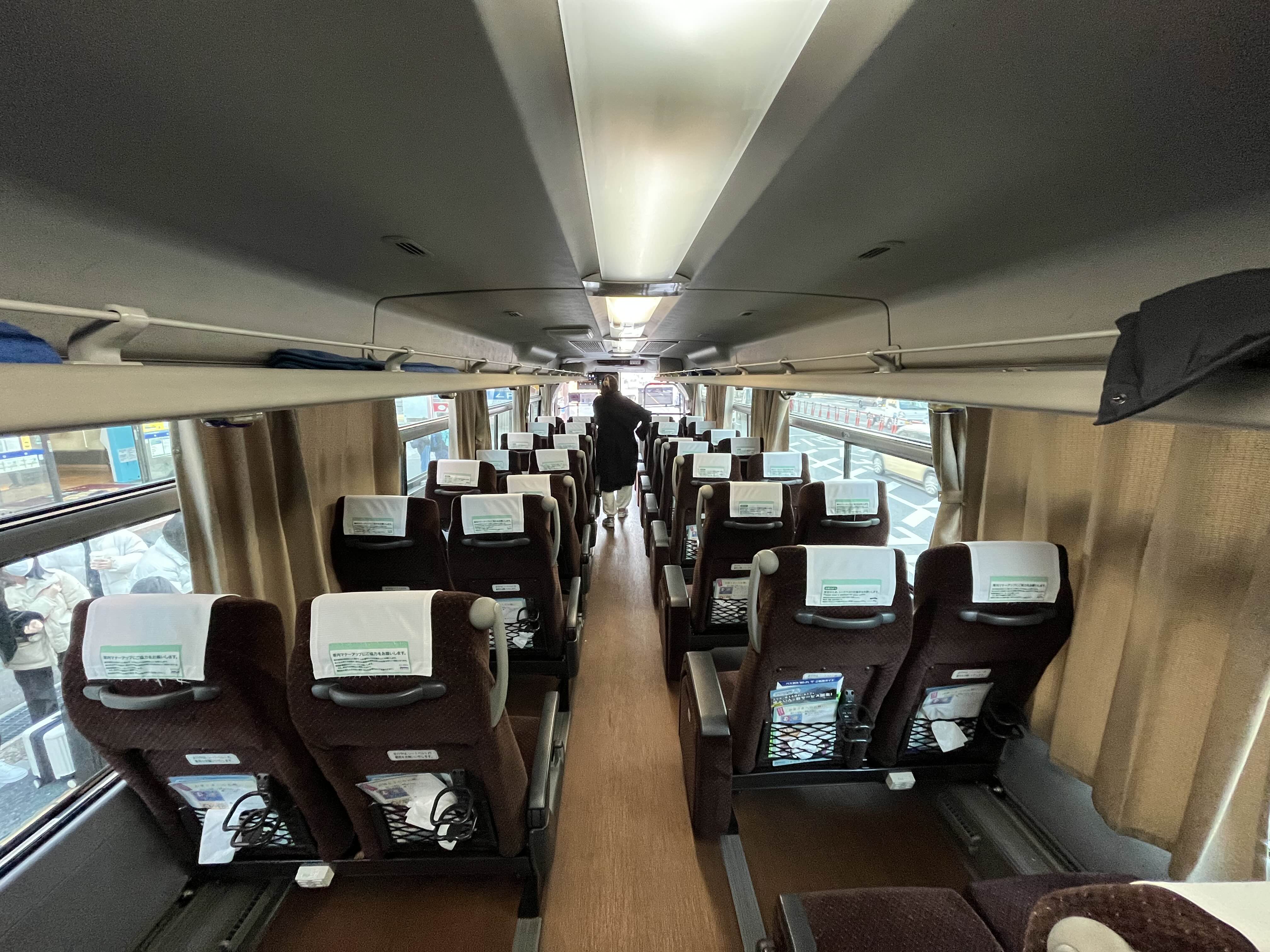 니시테츠 버스내부 시설이 좀 구리다 ㅋ 3열석으로 업그레이드 되었을까 했는데 5년전 그대로… ㅋ 대단하다.! 코로나때문에 오히려 적자였을까?.. 다행이 화장실은 그대로!
