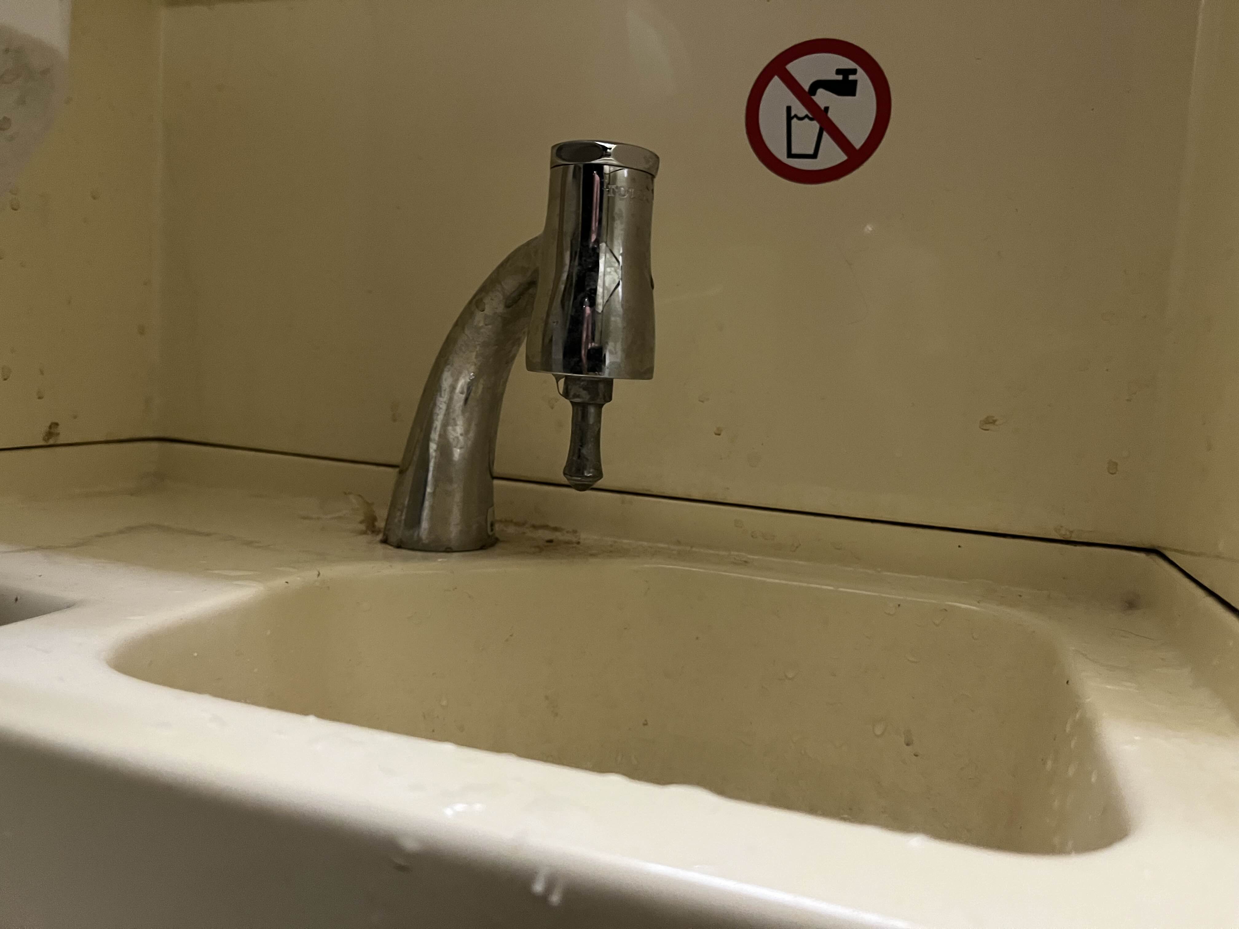 니시테츠 버스 화장실 아래 튀어나온 부분을 눌러주면 물이 나온다!