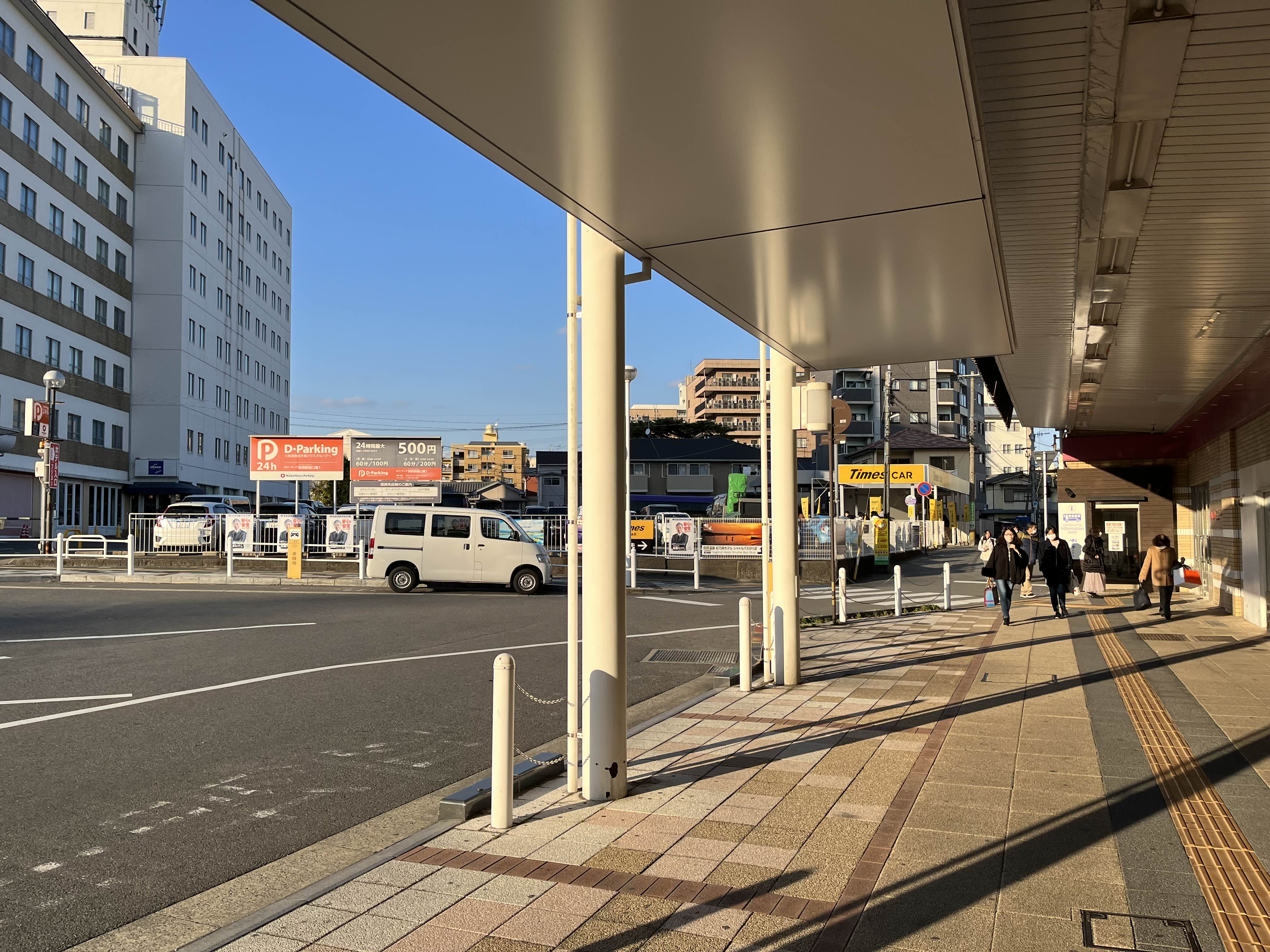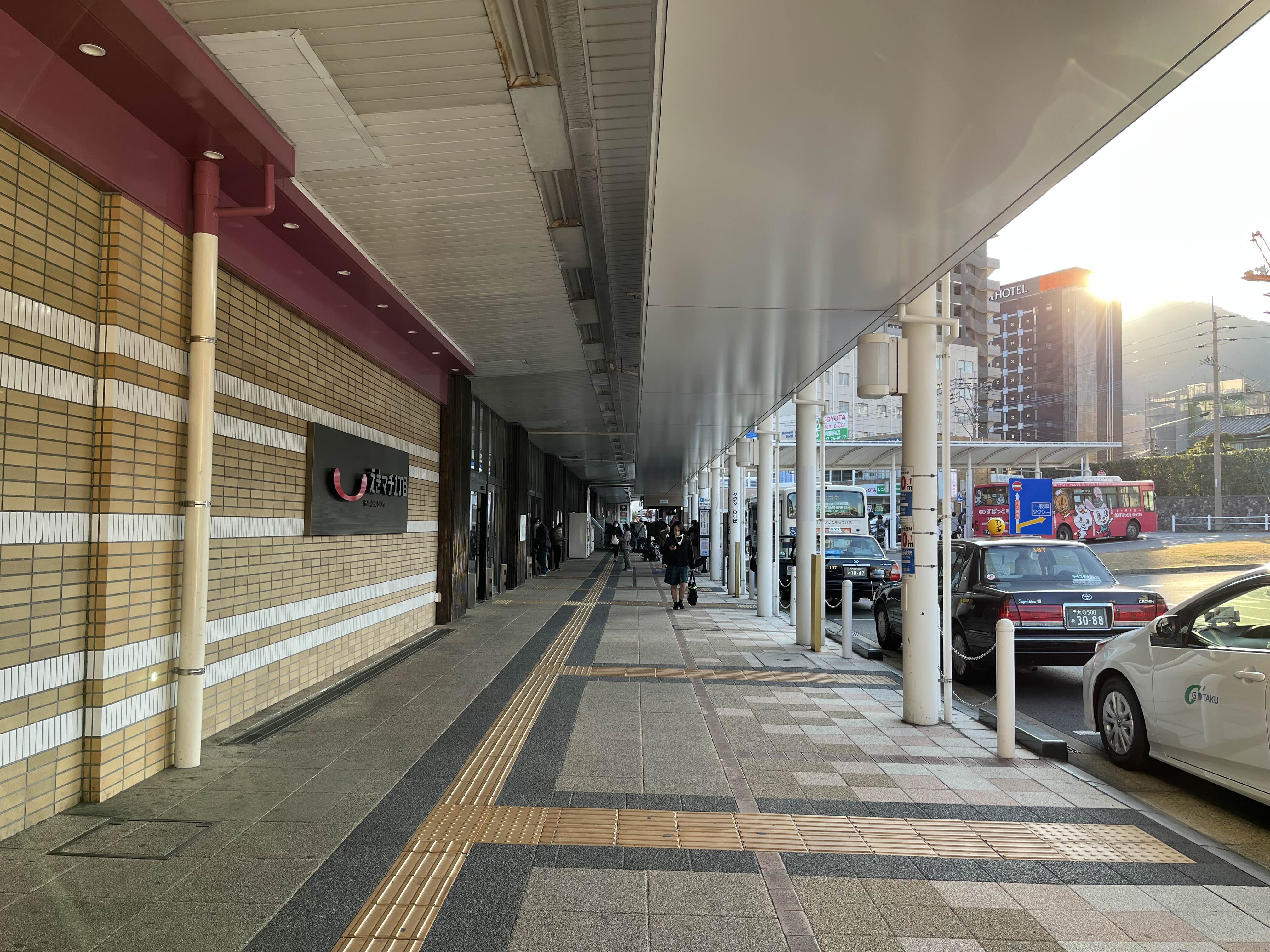 벳부역 후문을 나오면 버스정류소가 보인다