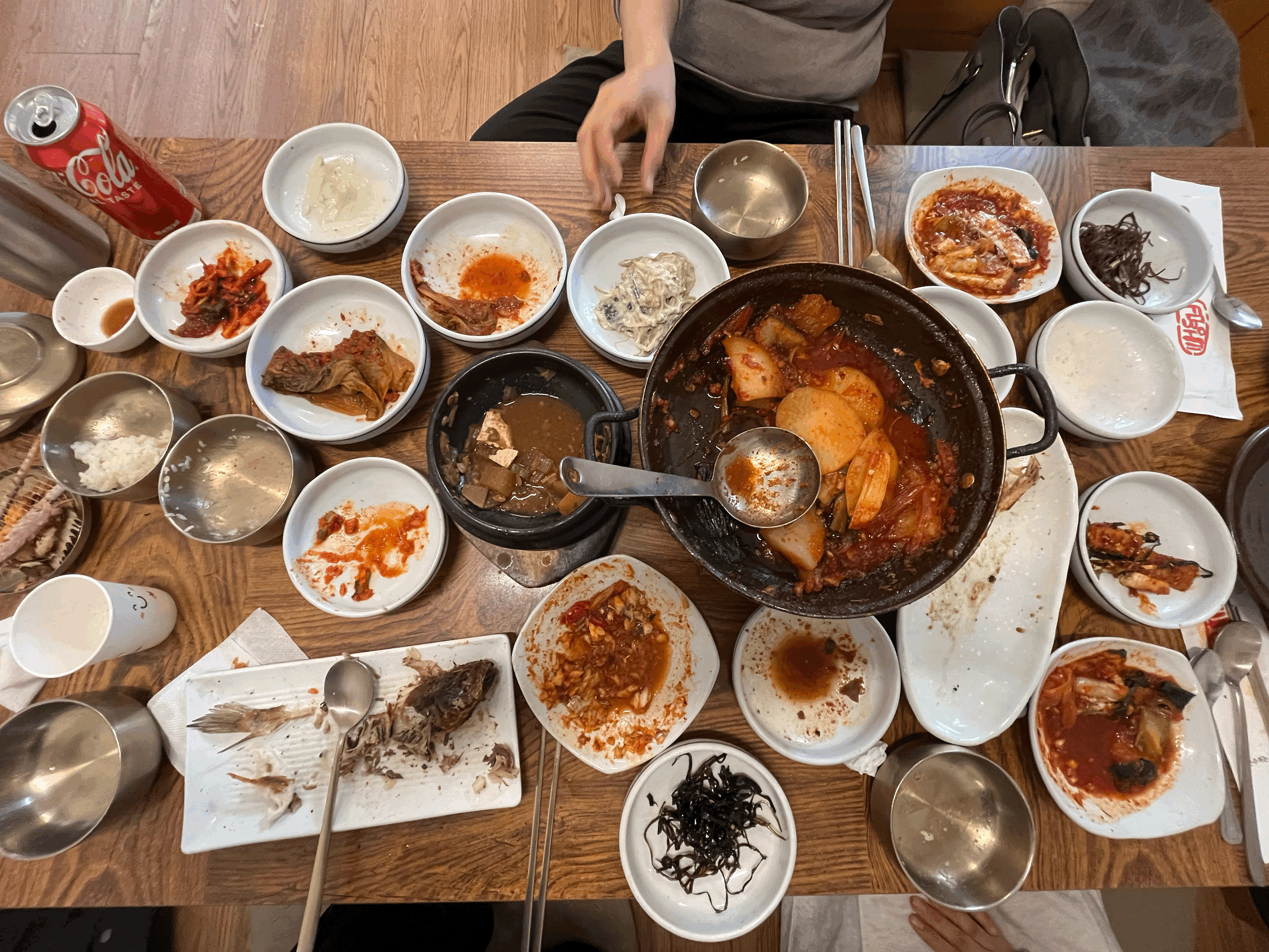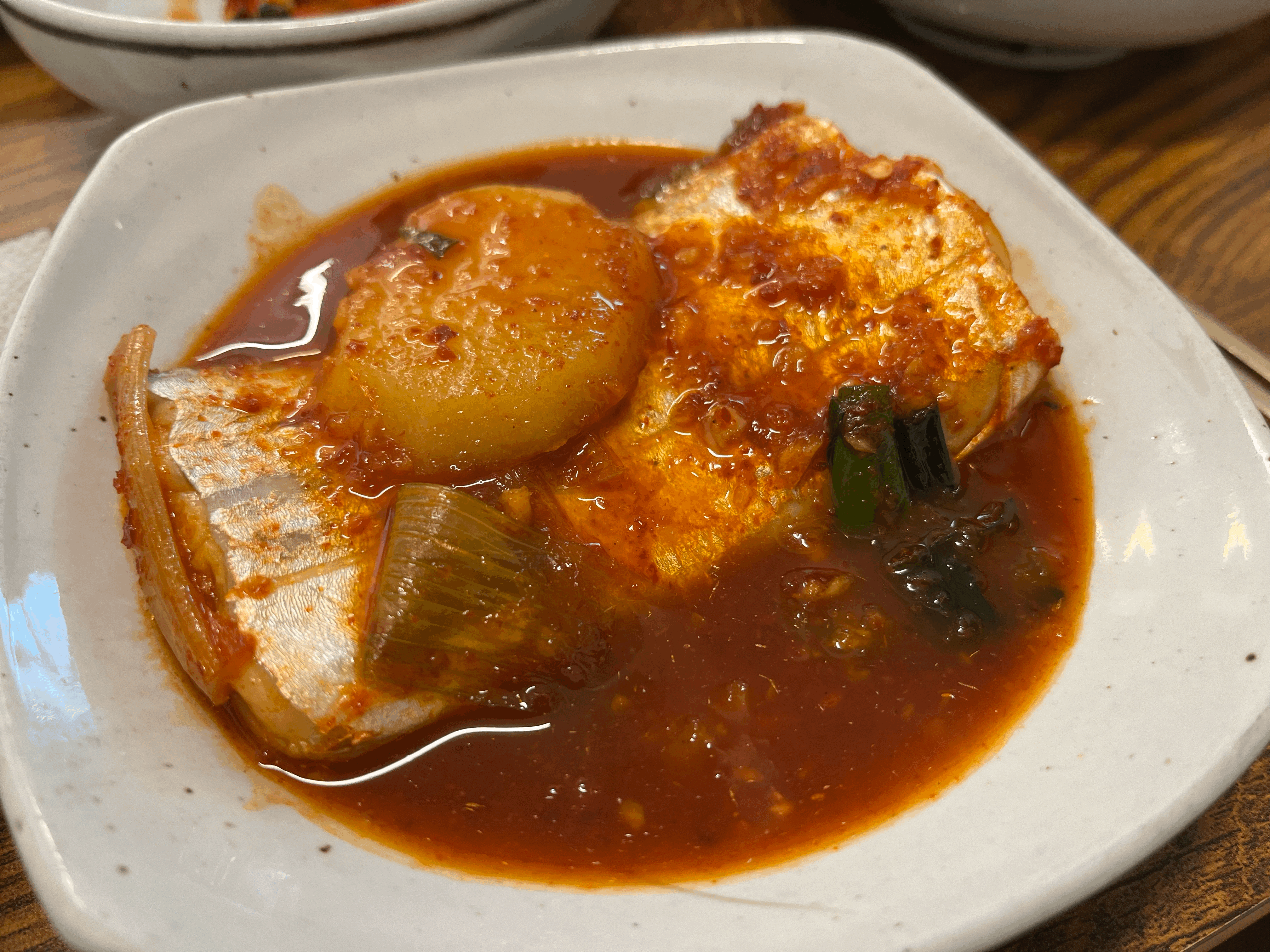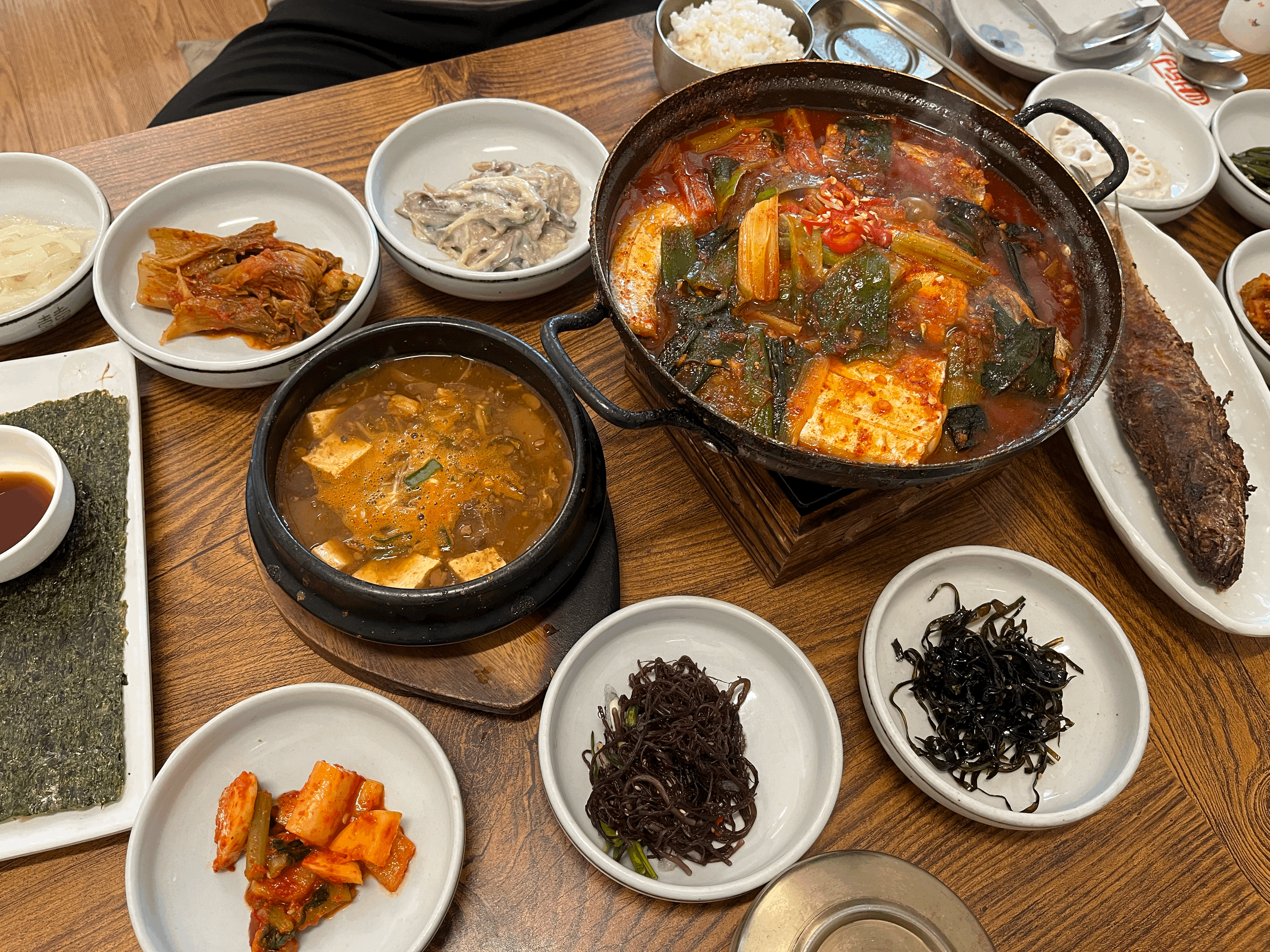 대기를 하면서 식당주위를 돌고나니 배가 고파질 즈음에 우리의 순서가 왔다. 식후에 봐도 좋고 식전에 봐도 좋을 듯하다. 예약을 하지 않아서 순서대로 입장하였고, 주문은 미리 되어 있어서 자리에 앉고 밑반찬이 나오고 난 뒤 바로 갈치찜이 나왔다. 갈치찜은 화로를 통해 계속 따뜻하게 먹을 수 있었다. 밑반찬은 전은 추가로 주문을 해야 하고, 특히 구운 김이 기가 막혔다. 구운조기(추가금액)도 아주 잘 익었다. 특히 밥이 무제한에 가까운데(5공기/1인당) 사실 조금 아쉬웠다. 솥밥이나, 누룽지를 해 먹을 수 있다면 더 좋았을 텐데.. 어디든 밥이 아쉽다. 다 먹어갈 때가 되면 후식으로 팥죽을 주시는데, 정말 맛난다.! 혹시나 빨리 가는 분들은 미리 요청을 하면 내어주신다 ^^