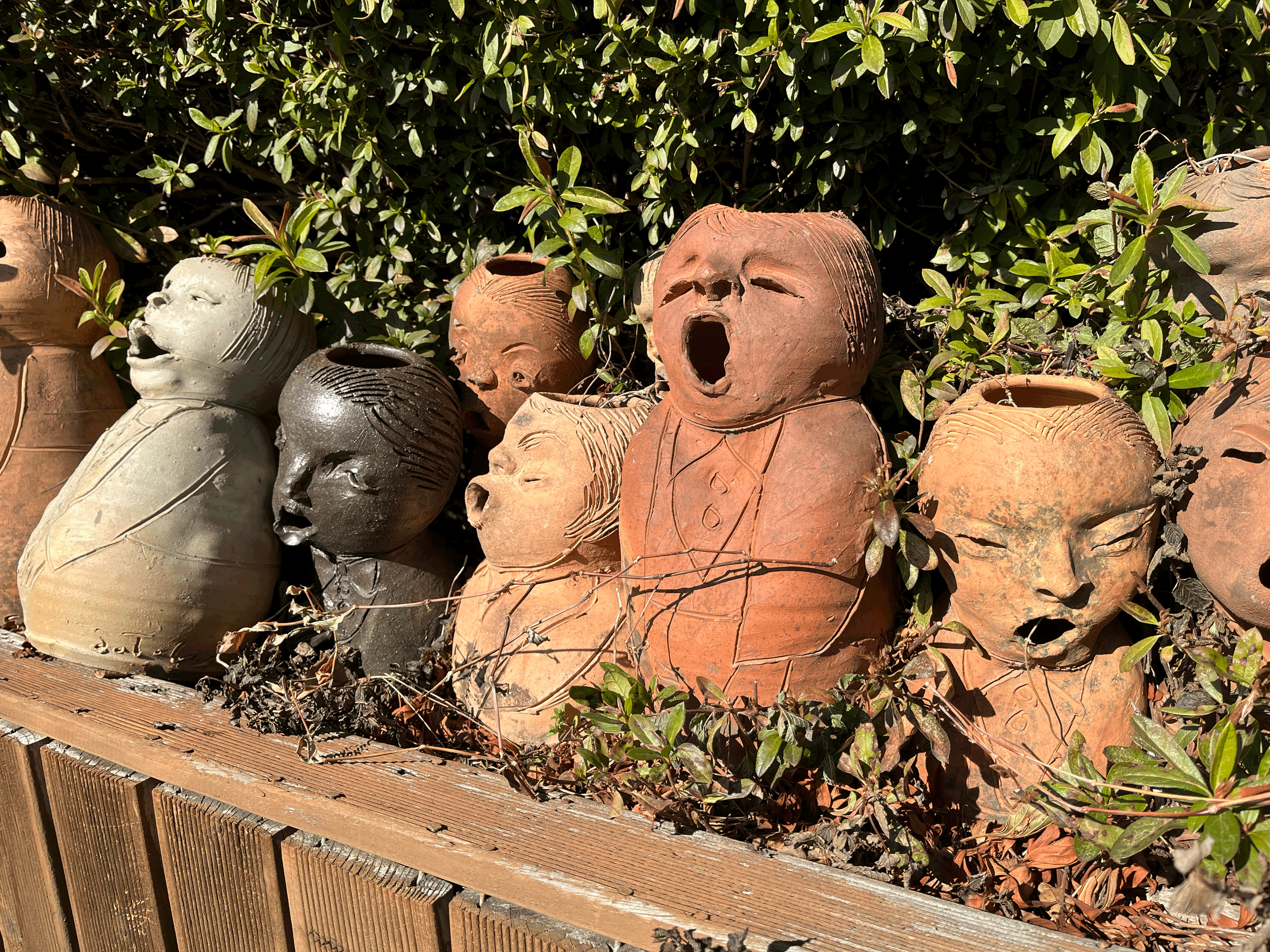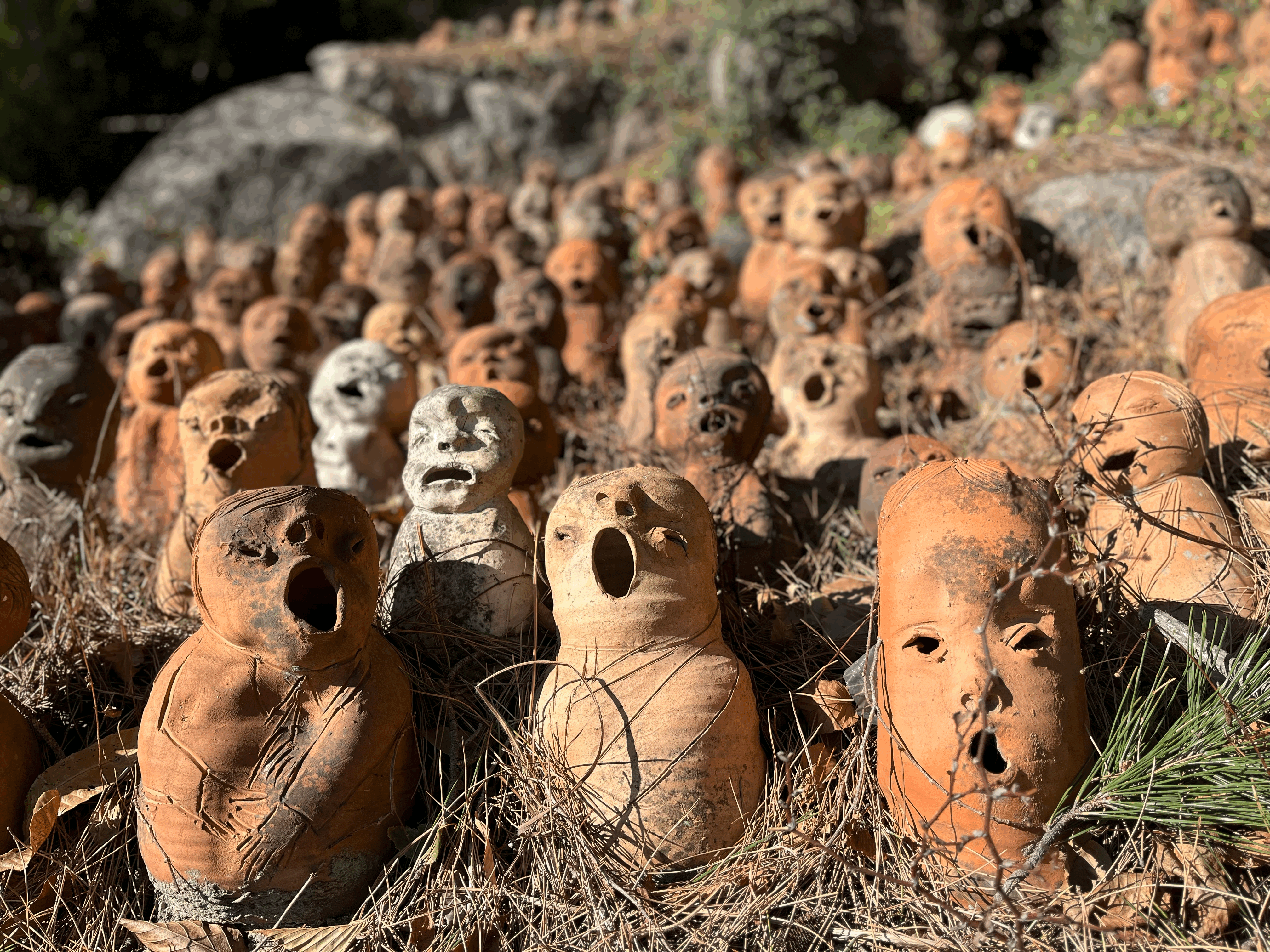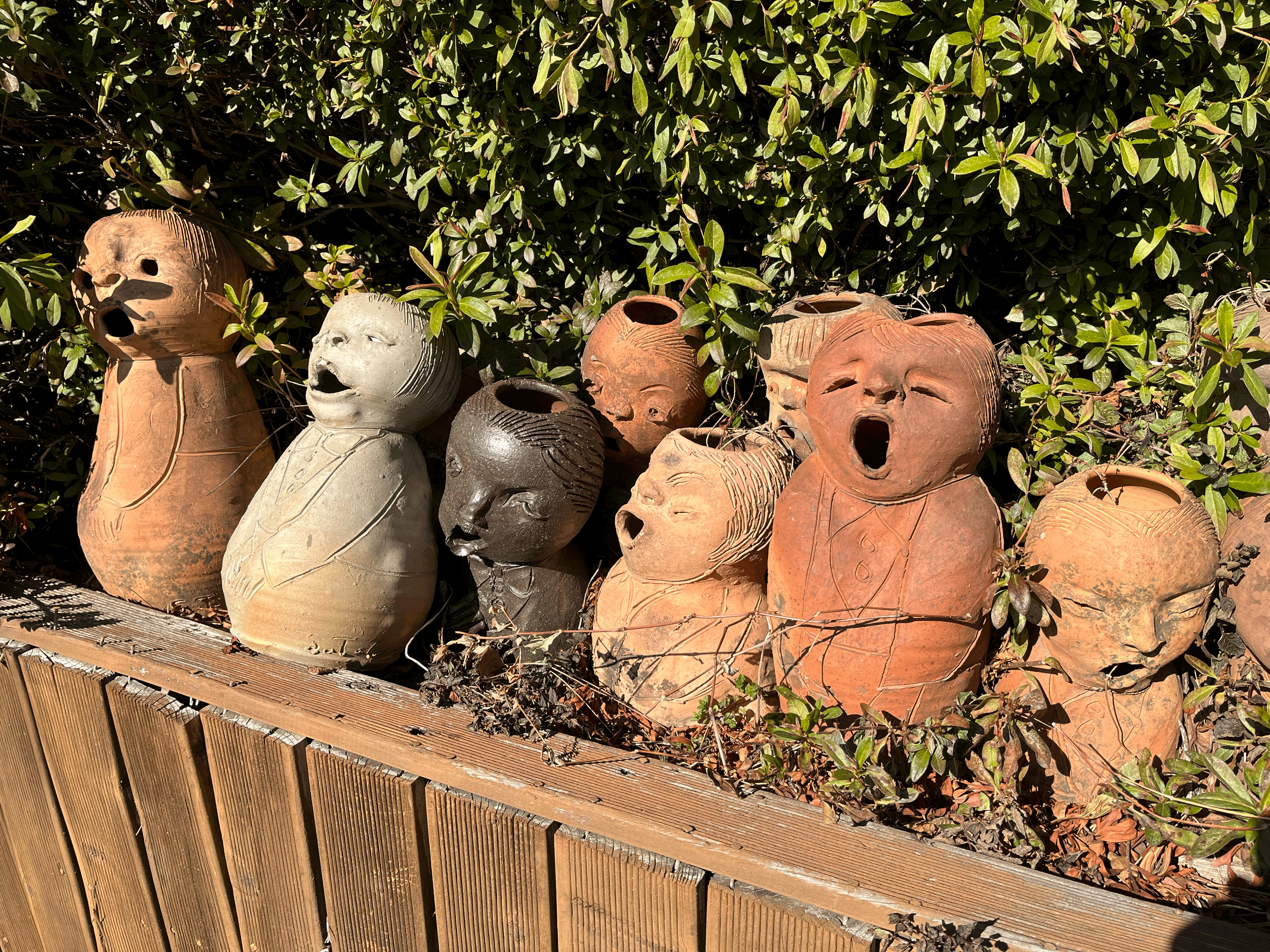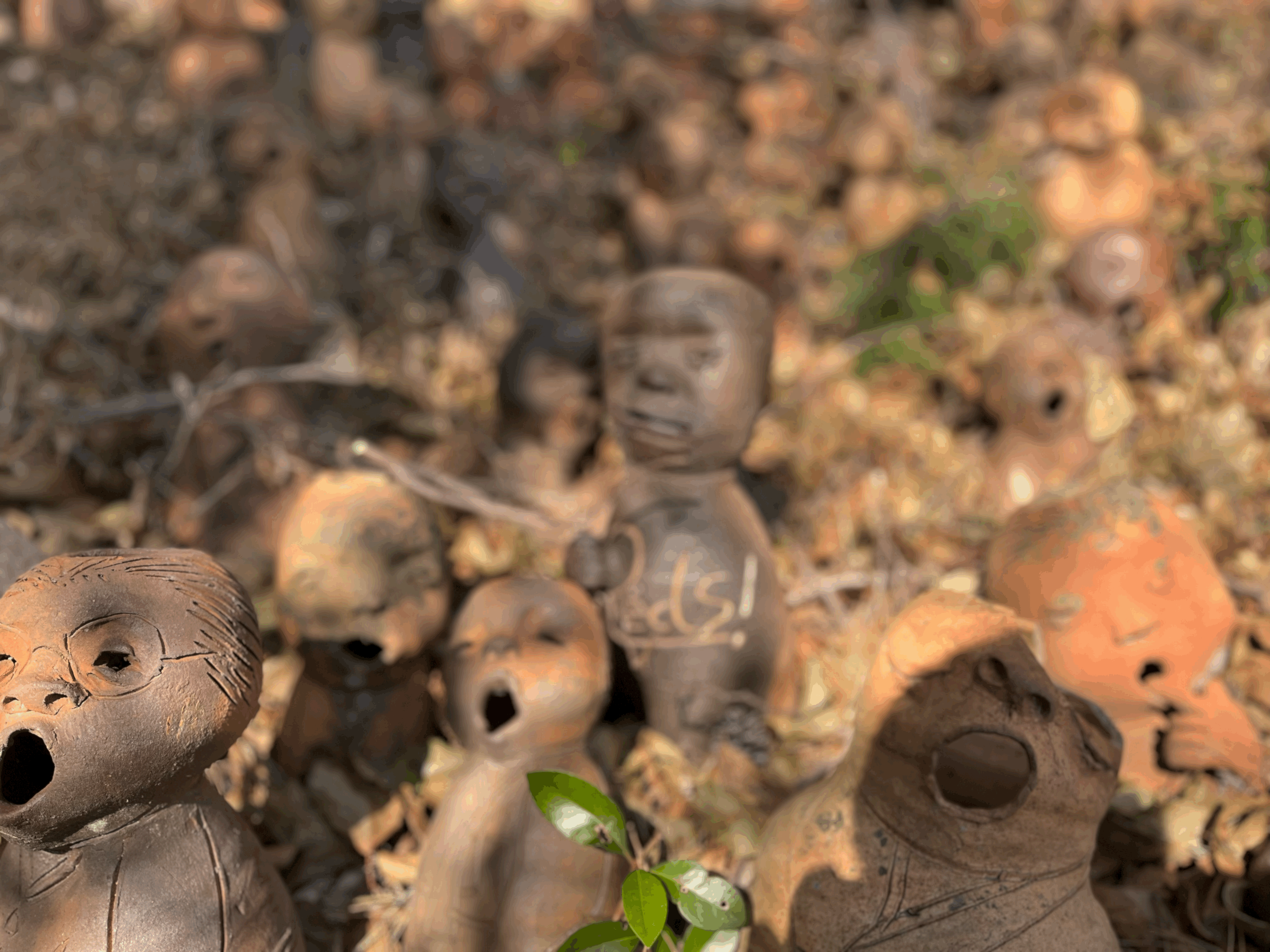 가마터를 입구로 산쪽으로 올라가면 새로운 세상이 펼쳐진다. 노래하는 듯한 입모양의 도자기들이 제멋대로 생긴 표정으로 노래를 하고 있다. 표정이 같은 게 하나도 없는 게 특징이고 심지어 크기도 다르고 몸통도 머리사이즈, 스타일도 모두 다르다. 수량도 엄청나서 하나 가져가도 모를 듯하다 ㅎㅎ 대나무로 둘러싼 작은 산길을 따라 아래에서부터 위까지 한 바퀴를 돌면서 토우들의 무리를 둘러 머리까지 보고 내려오는 산책길이다. 비 오는 날은 미끄러워 울 수도 있고, 나름 경사가 있으니, 주의하면서 둘러봐야 한다.