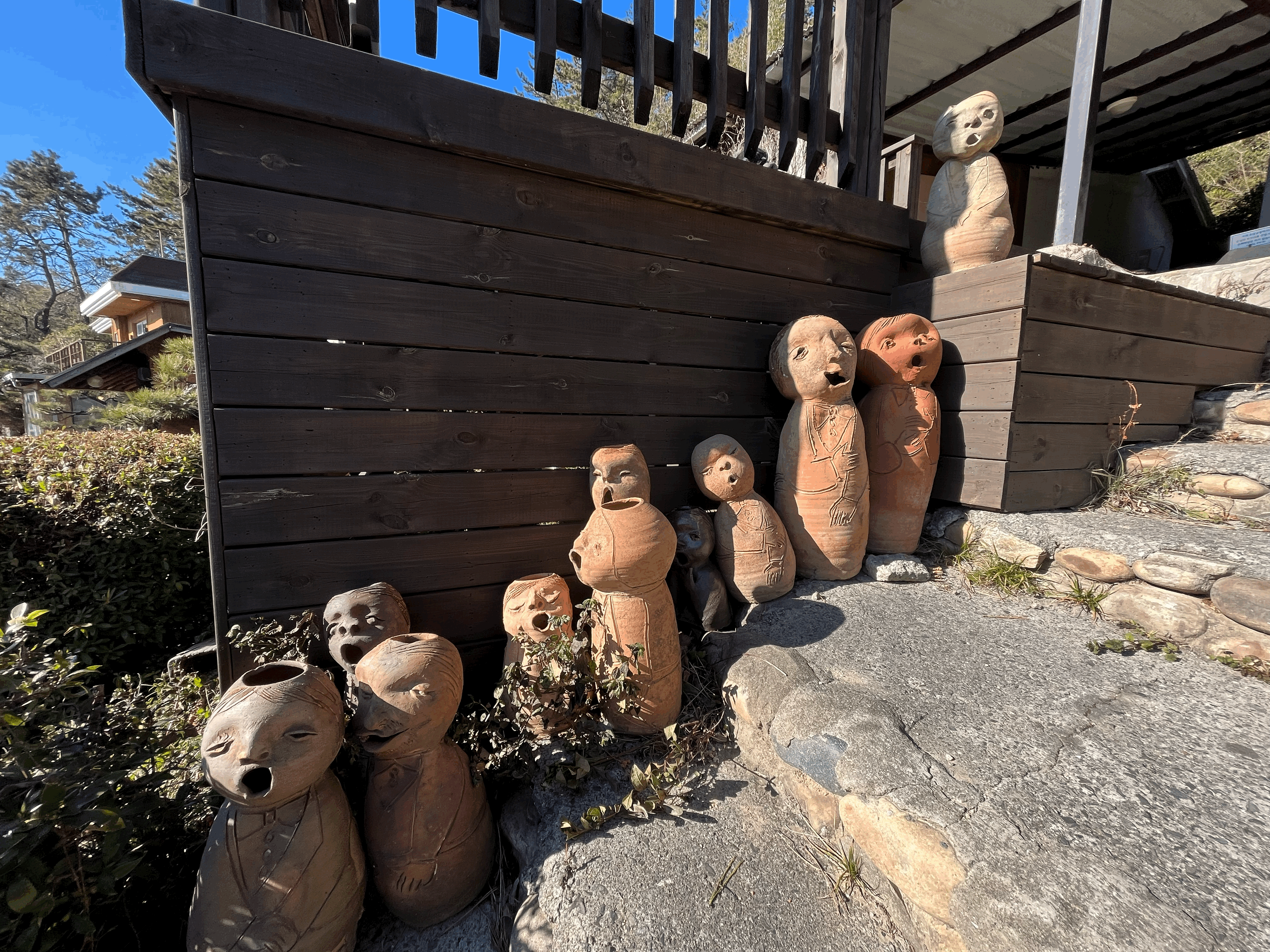 곳곳에 토우들. 같은게 하나도 없다. 카페입구와 옛 토기 가마터 - 지금은 사용하지 않는것 같다.